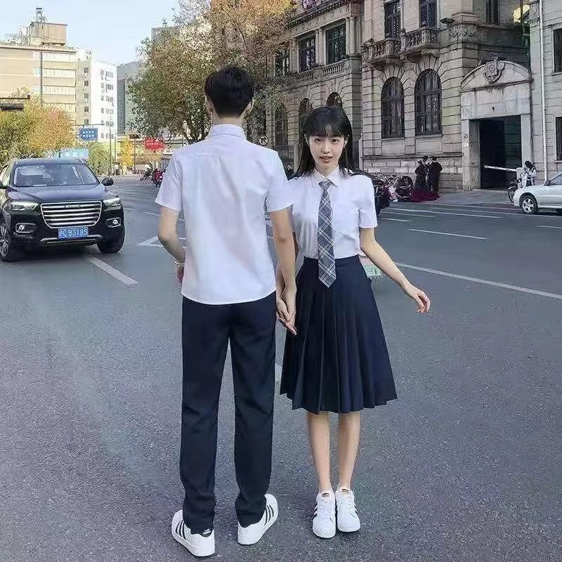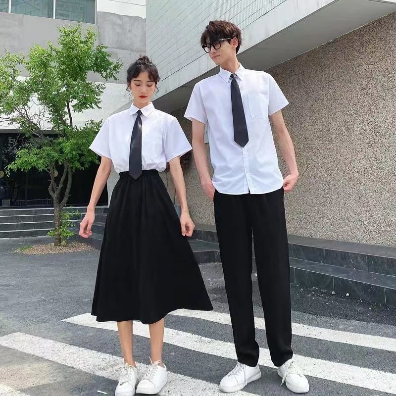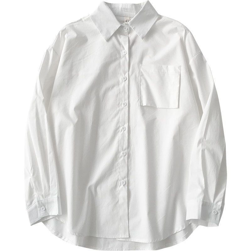 新款两穿领带衬衫学院设计宽松小众遮肉气质显瘦白色中长款衬衣女