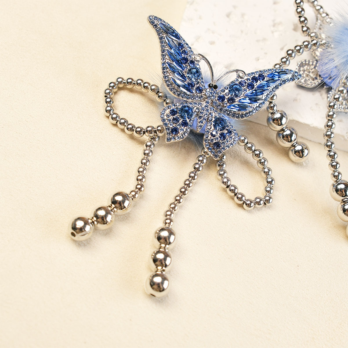 宝蓝浮夸锆石蝴蝶重工尼泊尔珠可穿笔散珠手工手机链包挂串珠配件