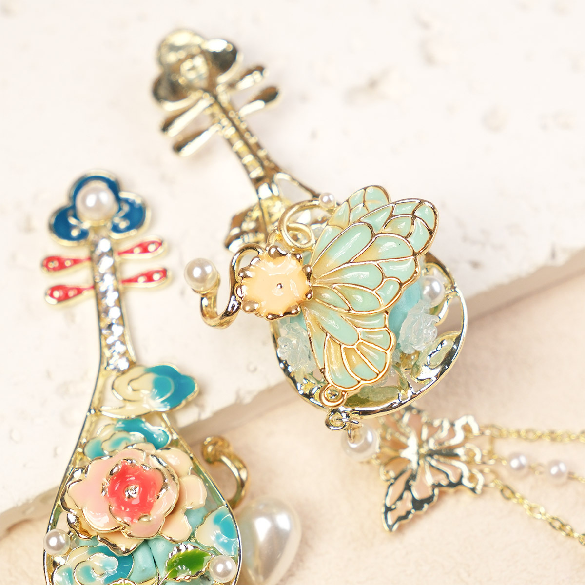 古风合金琵琶滴油重工尼泊尔珠可穿笔散珠手工手机链包挂串珠配件