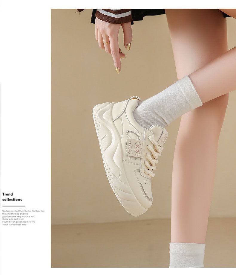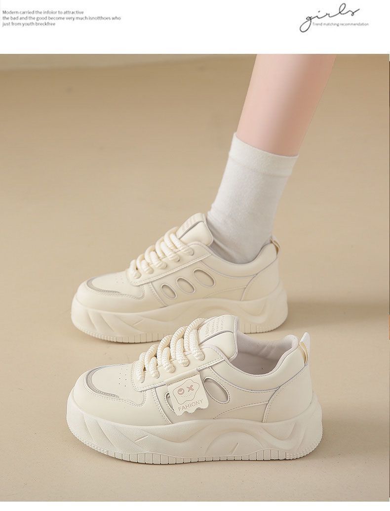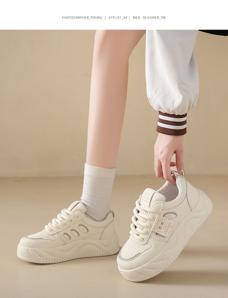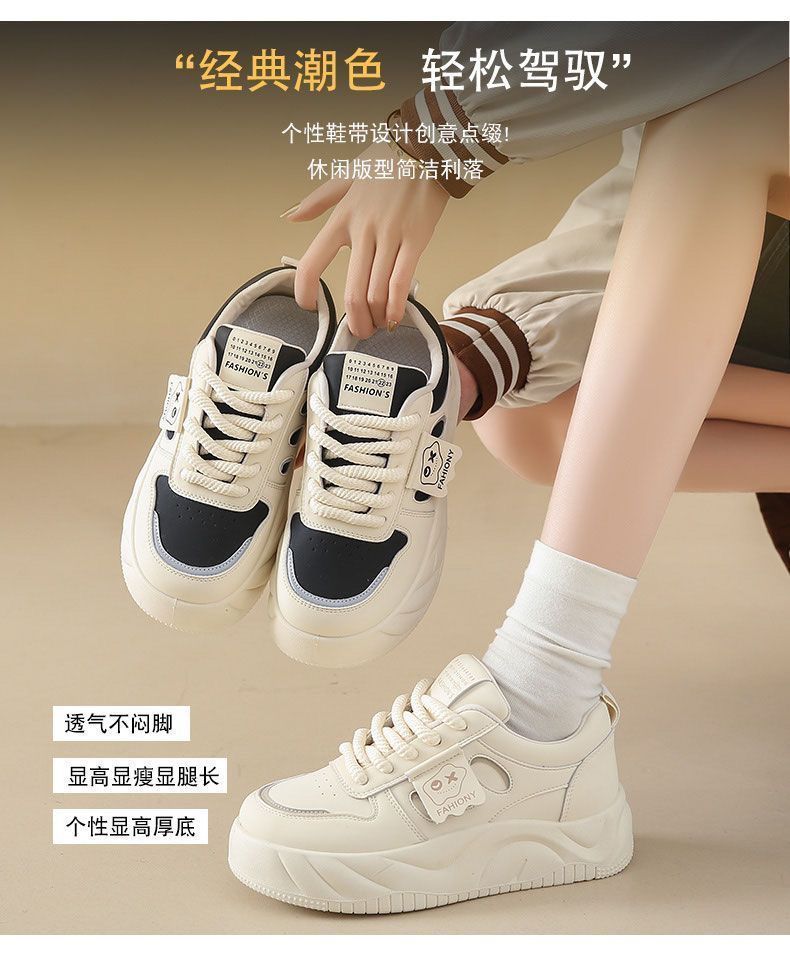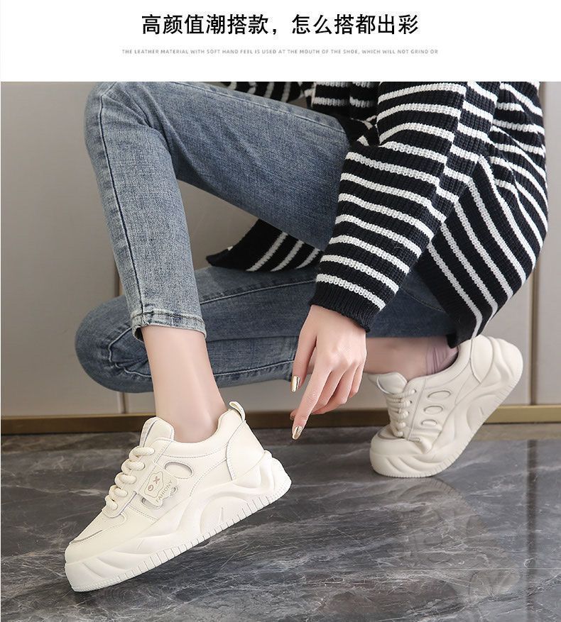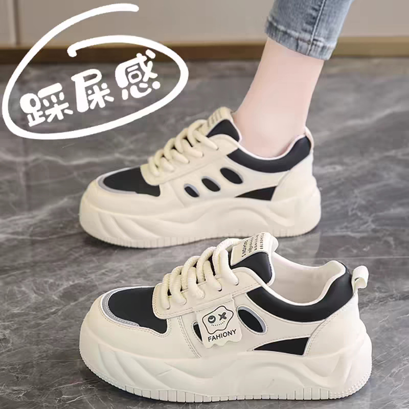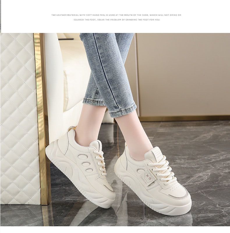 踩屎感厚底板鞋女2025新款秋季皮面透气小白鞋轻便运动学生休闲鞋