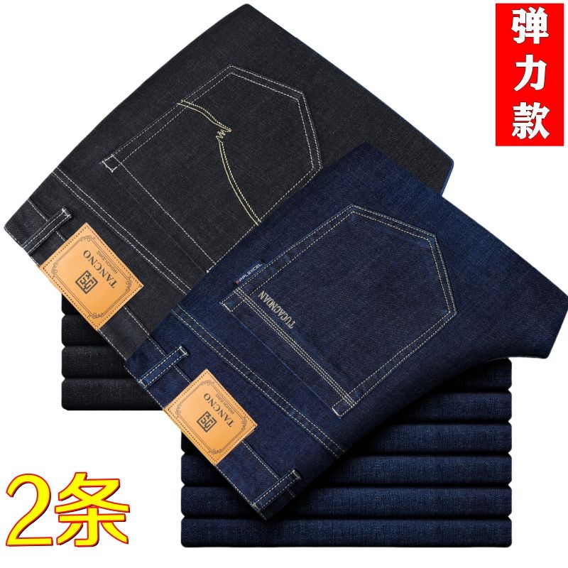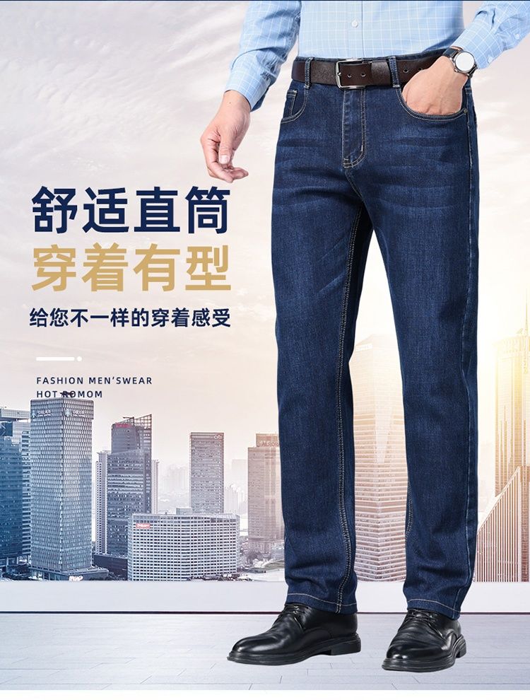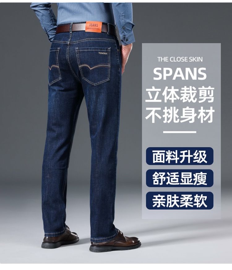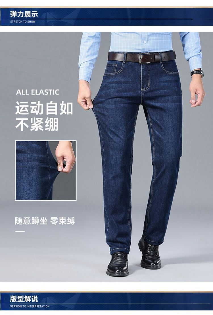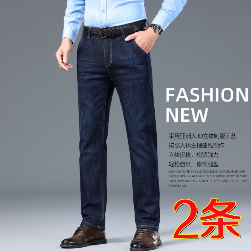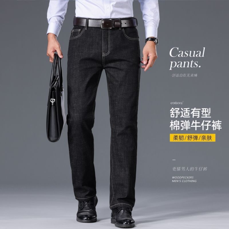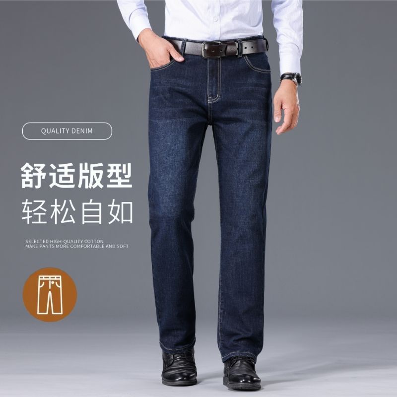 男士牛仔裤秋冬厚款宽松直筒高腰弹力休闲百搭中青年男裤长裤子