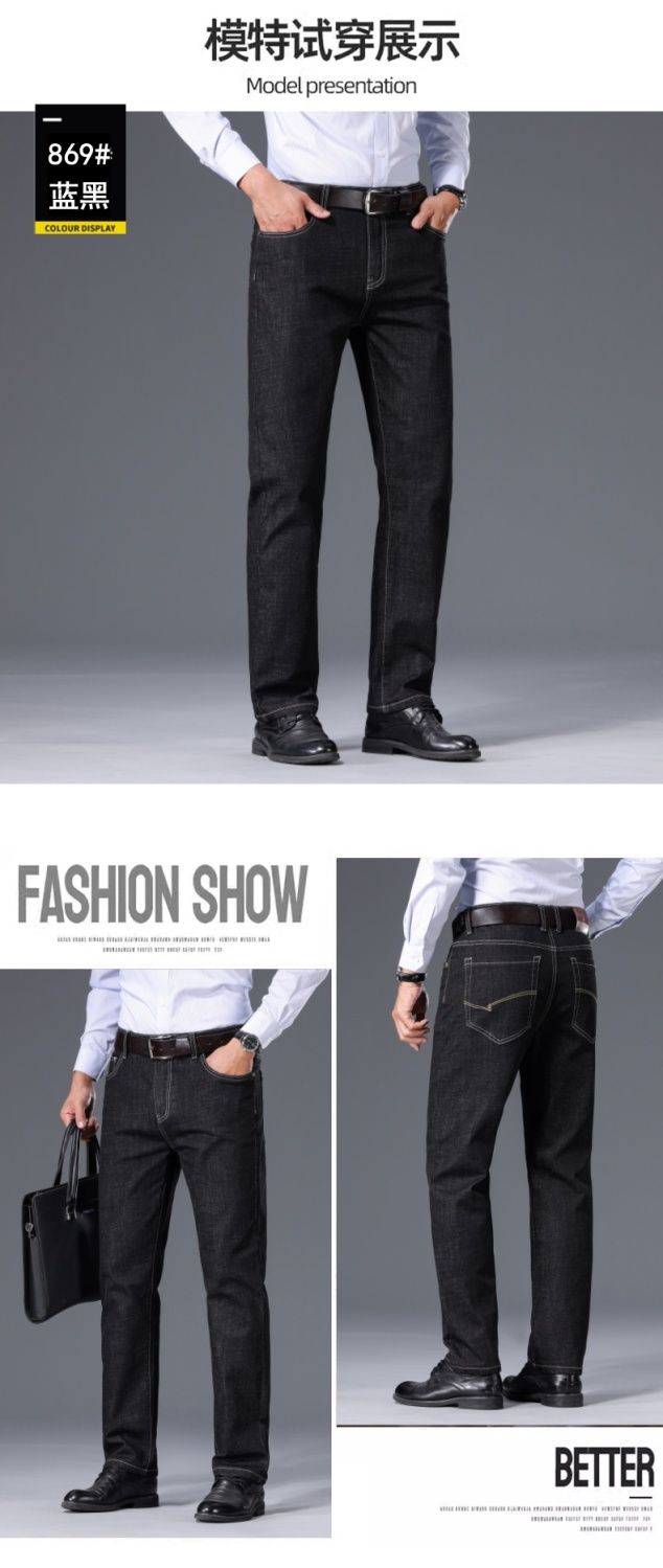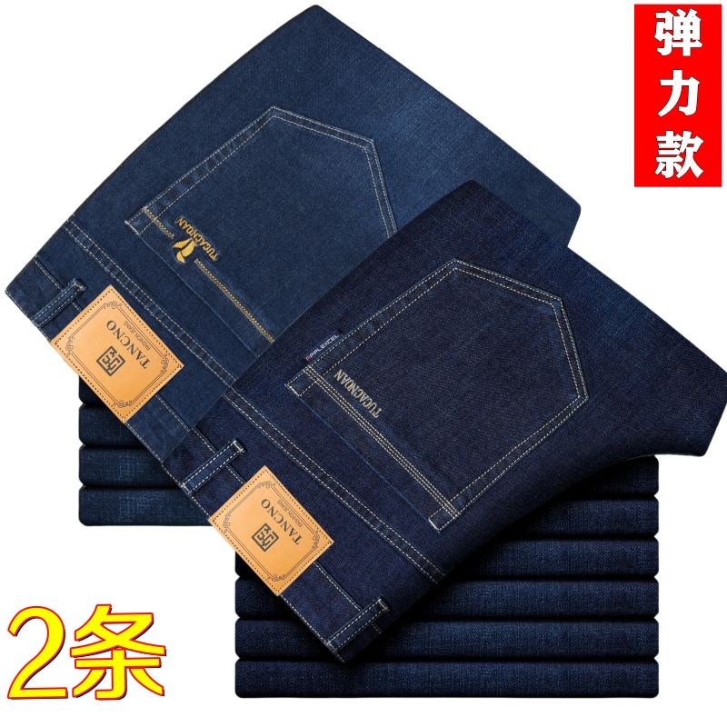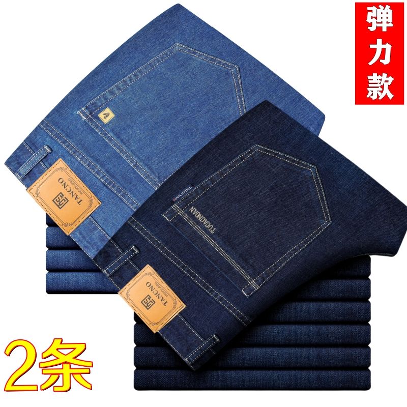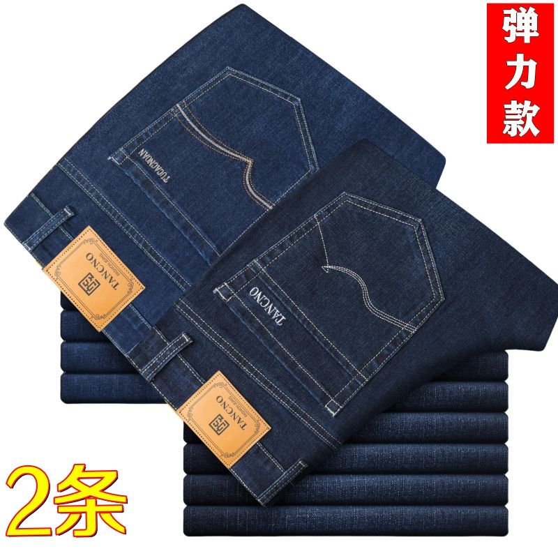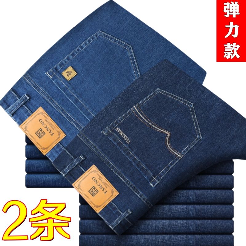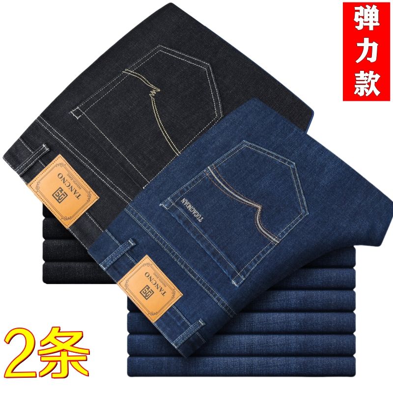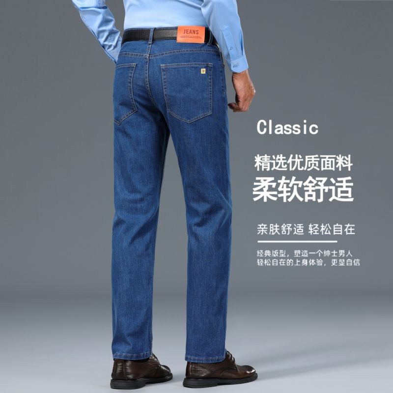 男士牛仔裤秋冬厚款宽松直筒高腰弹力休闲百搭中青年男裤长裤子