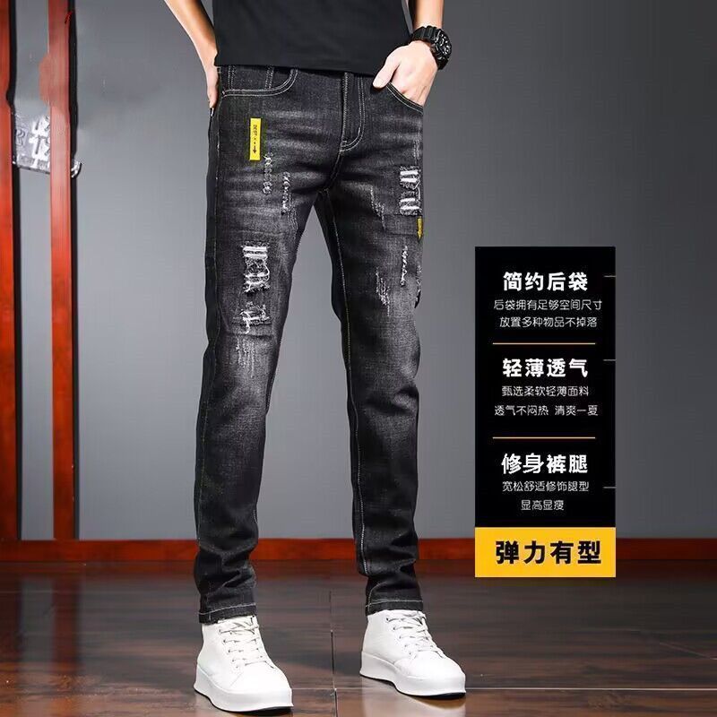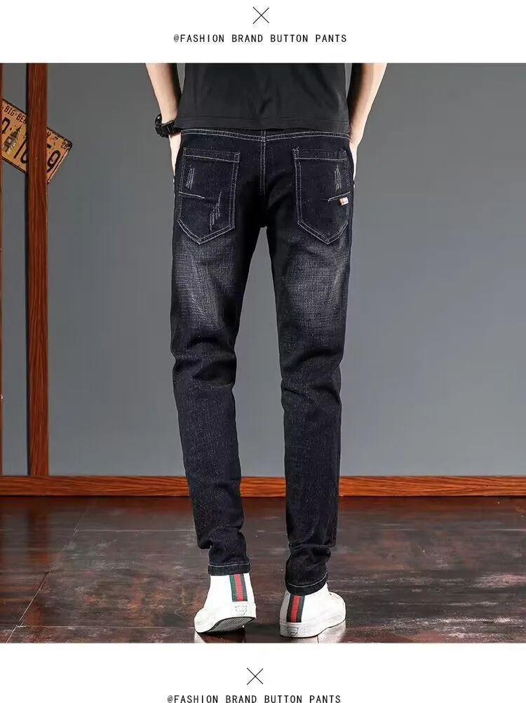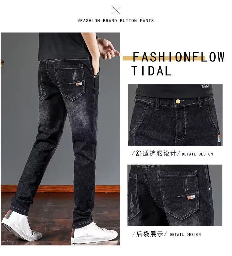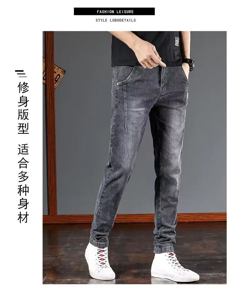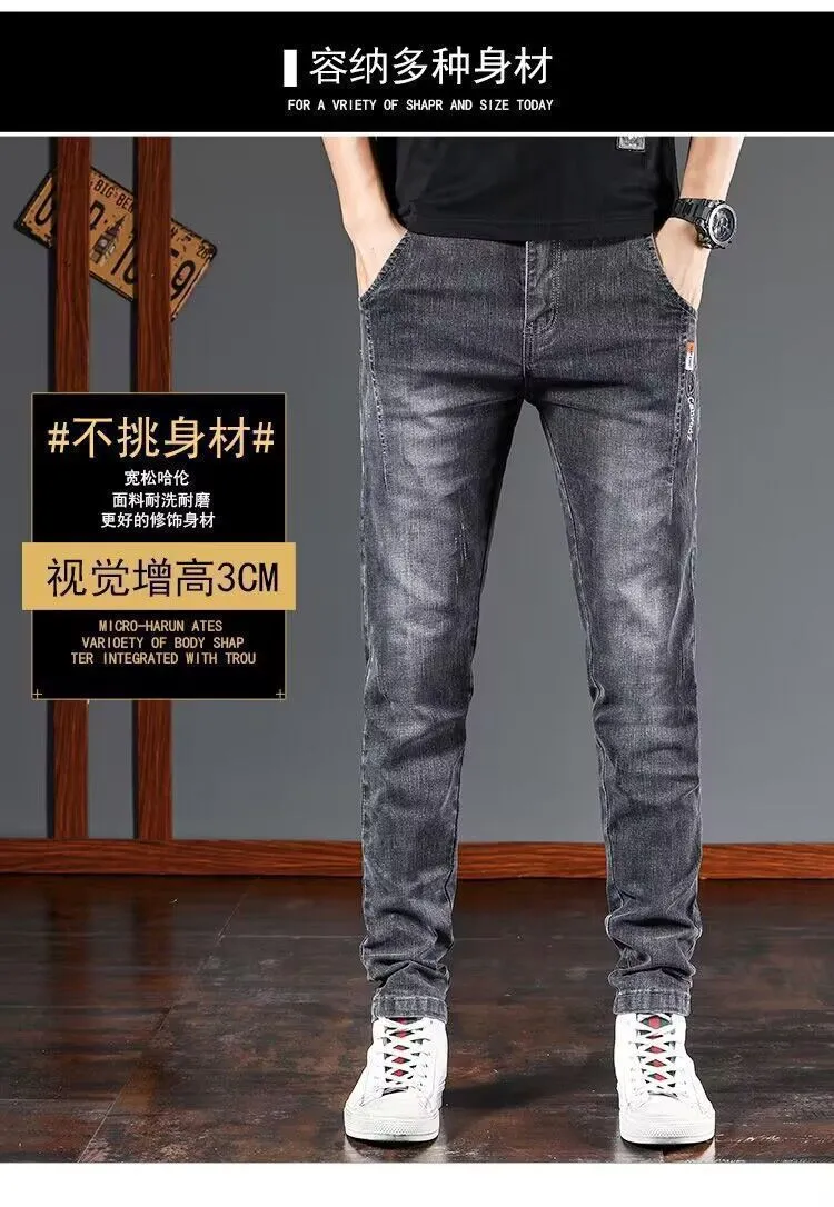 男士牛仔裤男潮流潮男春秋冬季弹力修身小脚裤2024新款休闲长裤子