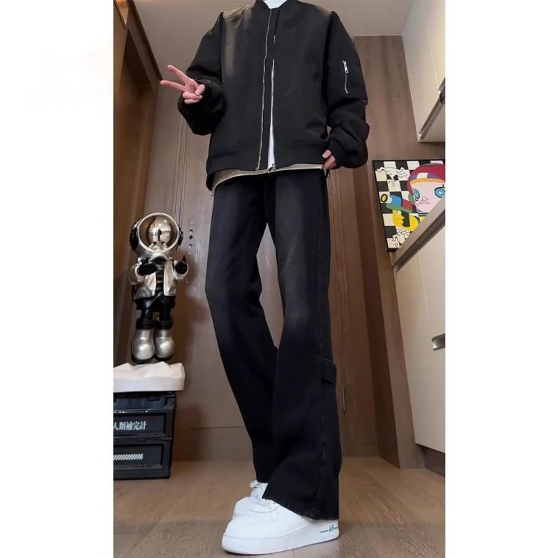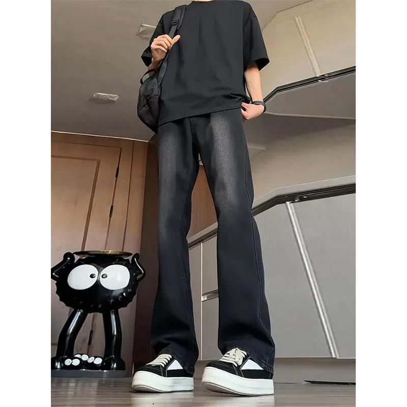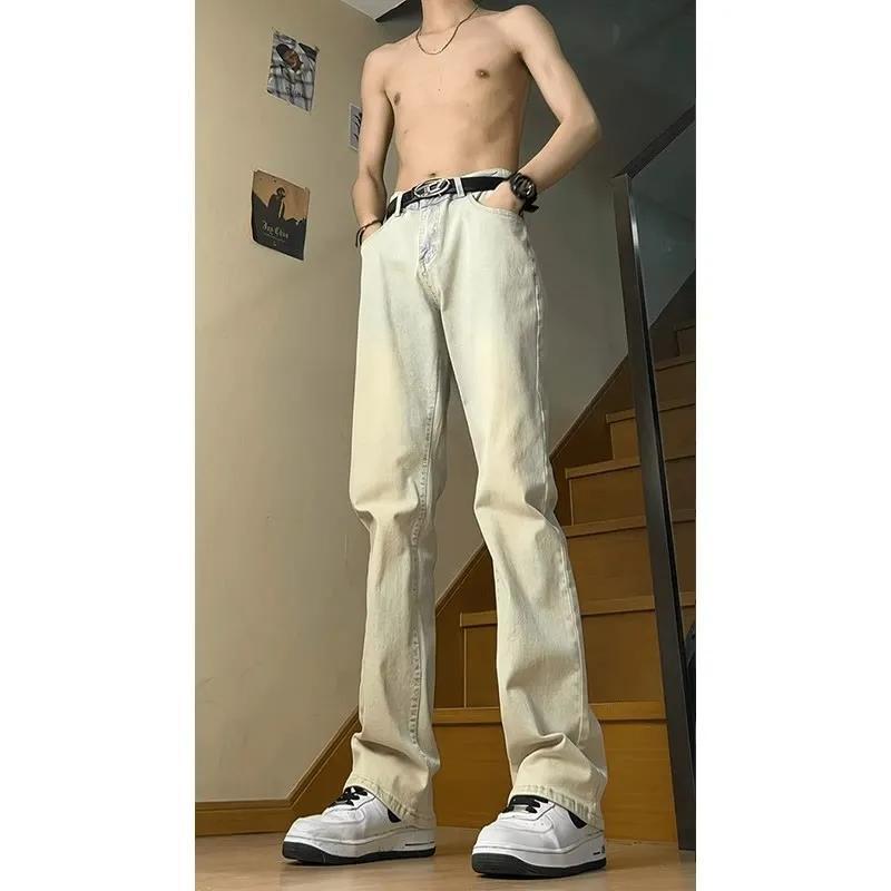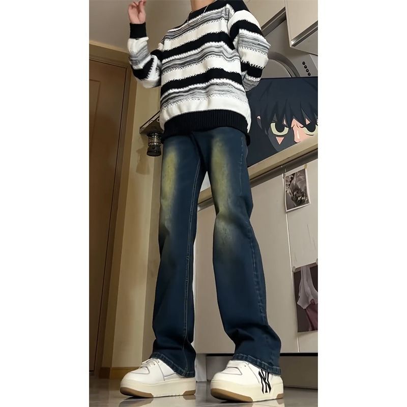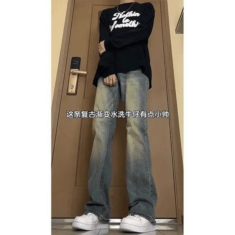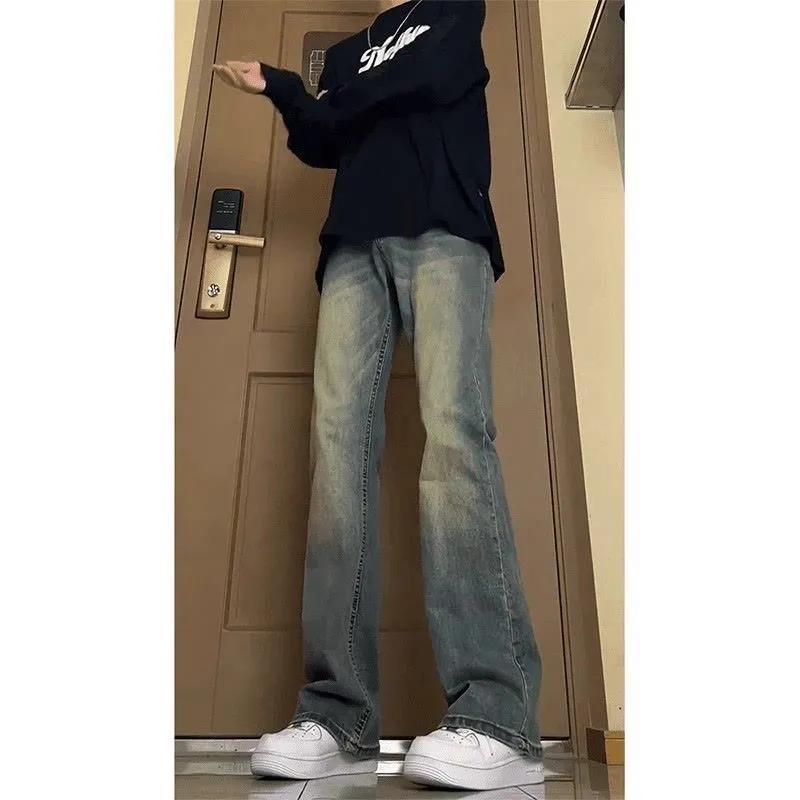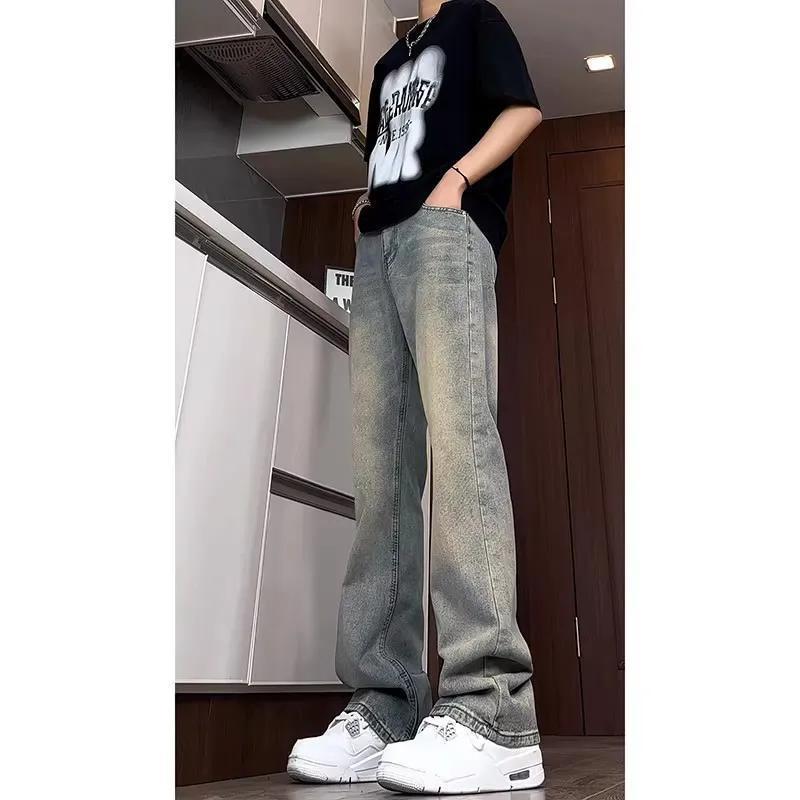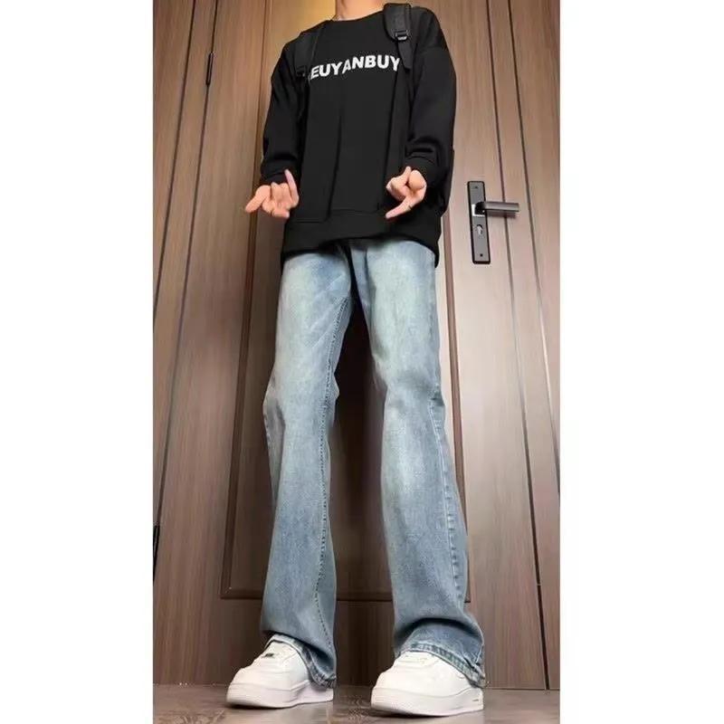 复古蓝修身牛仔裤男士美式高街水洗裤子宽松显瘦百搭直筒微喇长裤
