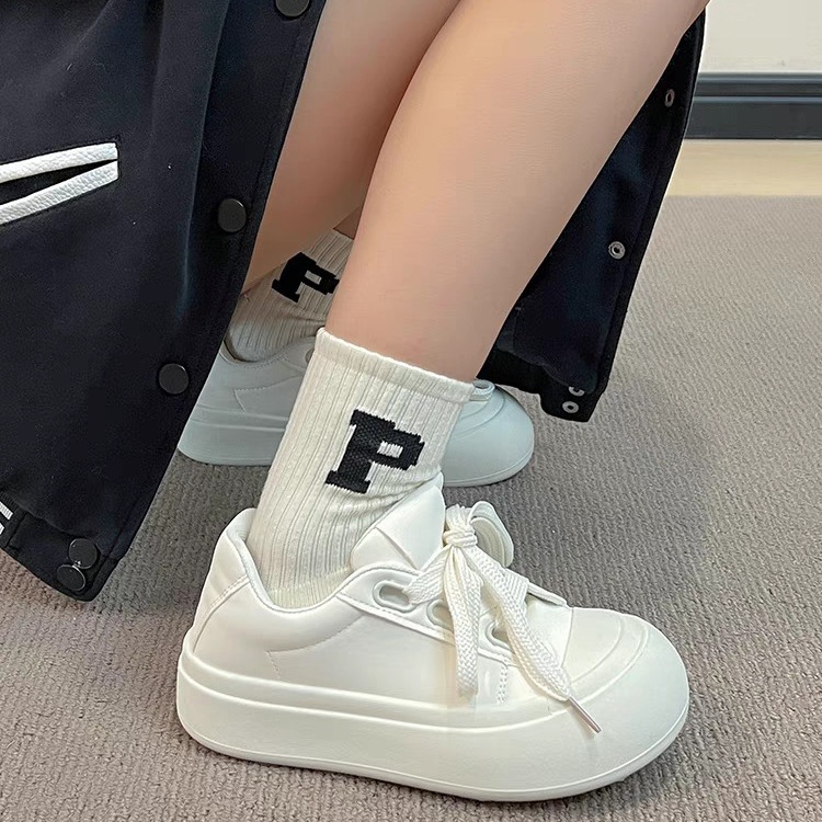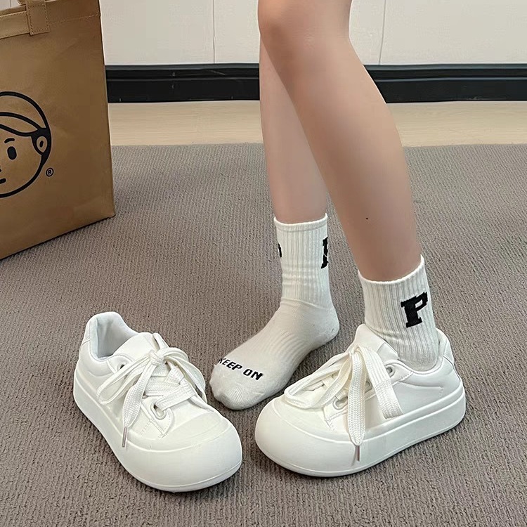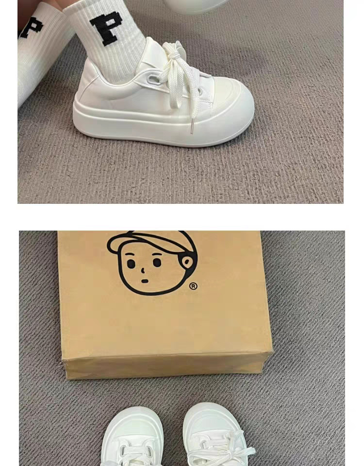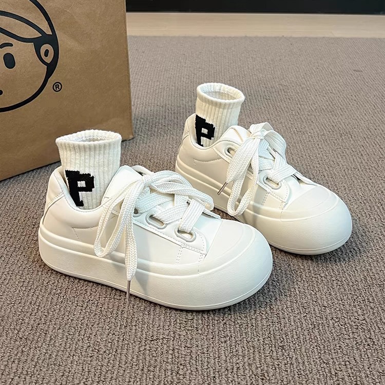 丑萌大头鞋女2025春秋新款ins百搭厚底小白鞋配裙子休闲面包鞋