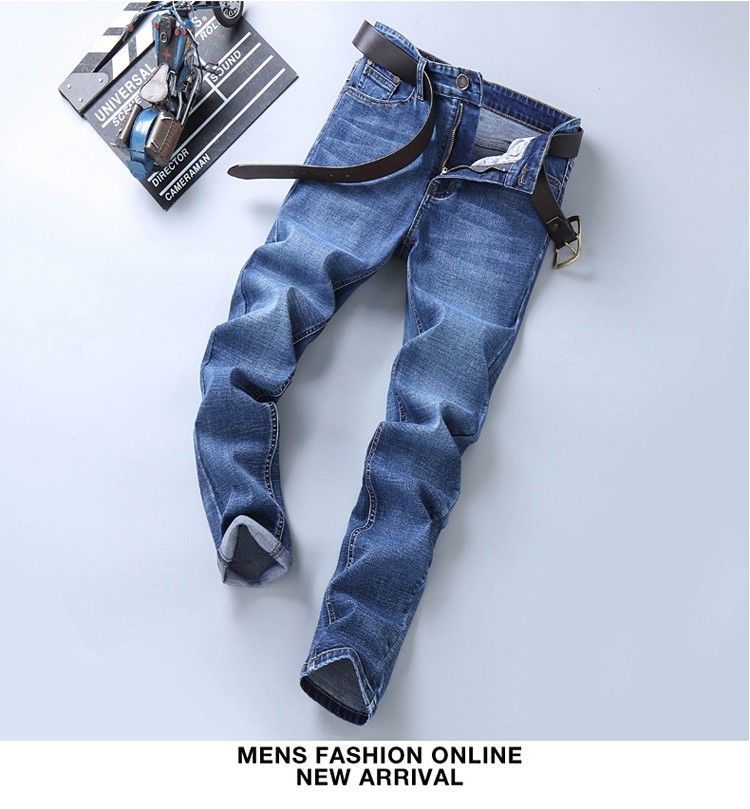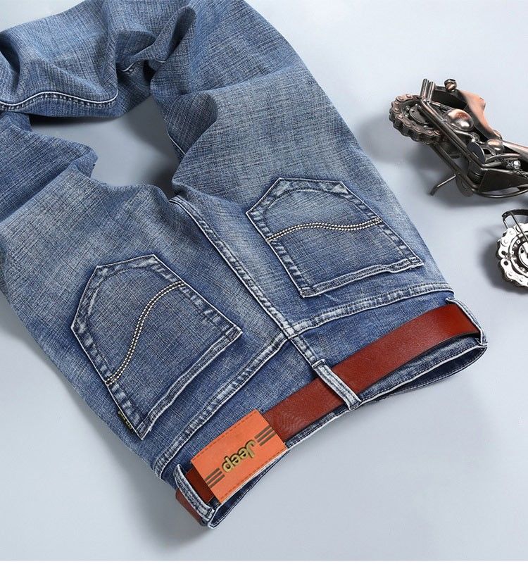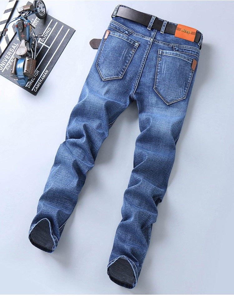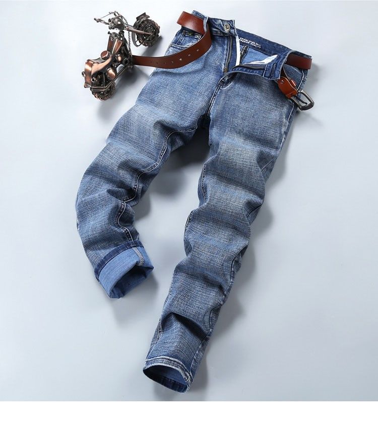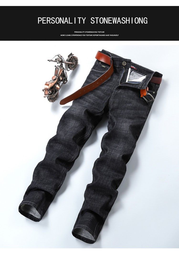 秋季厚款牛仔裤男士直筒宽松商务休闲弹力秋冬上班工作耐磨长裤子