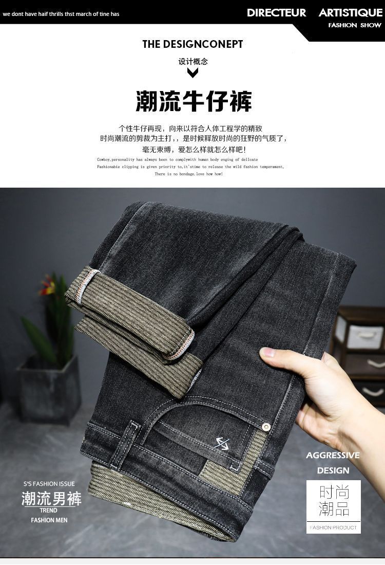 潮牌男装高端新款男士牛仔裤男时尚百搭修身小脚裤韩版潮流长裤子