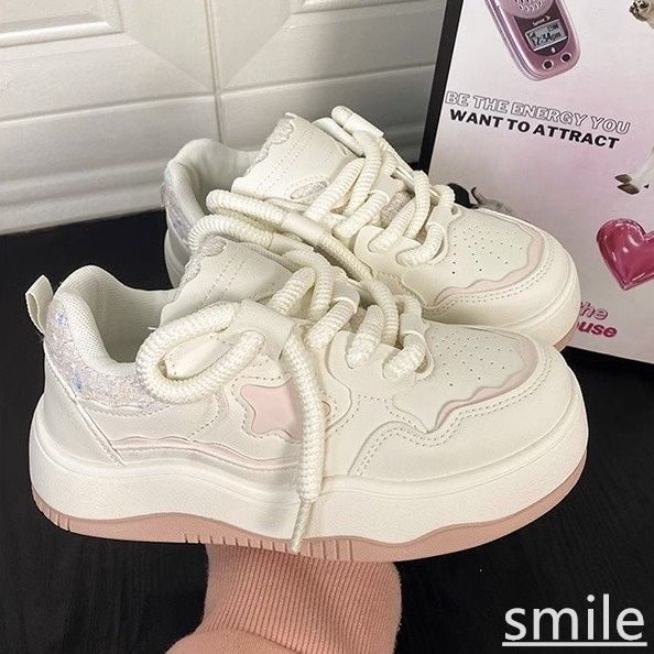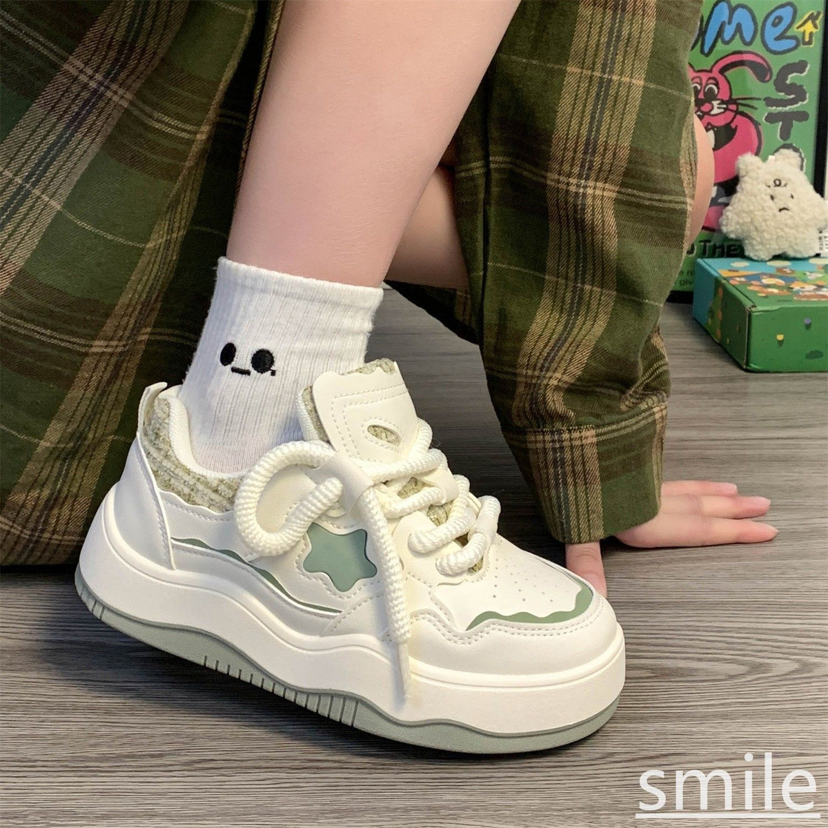 星星薄荷绿小白鞋显高2025年新款显小脚透气舒适休闲运动板鞋