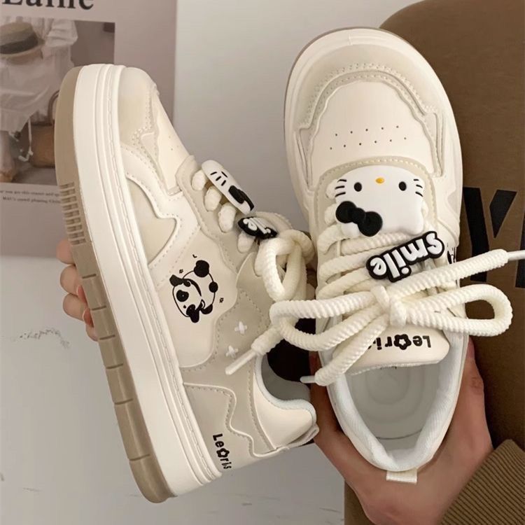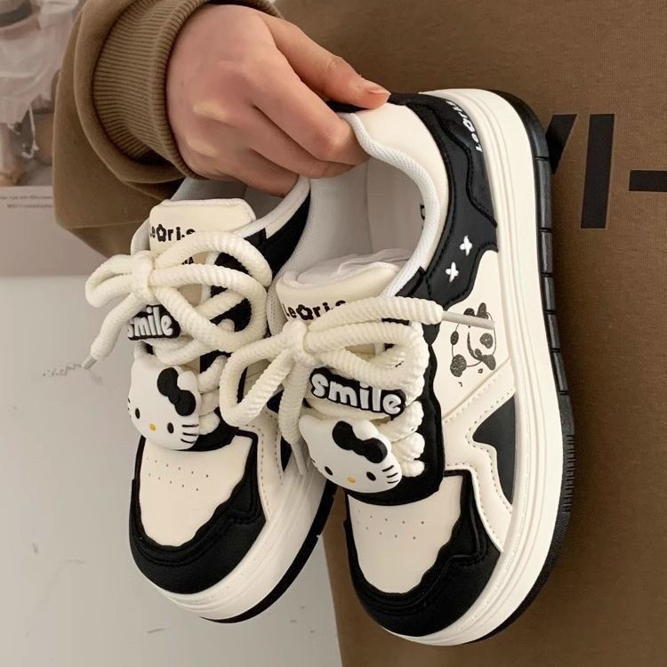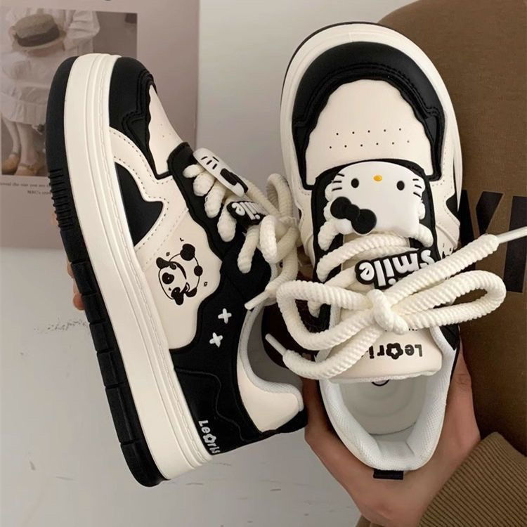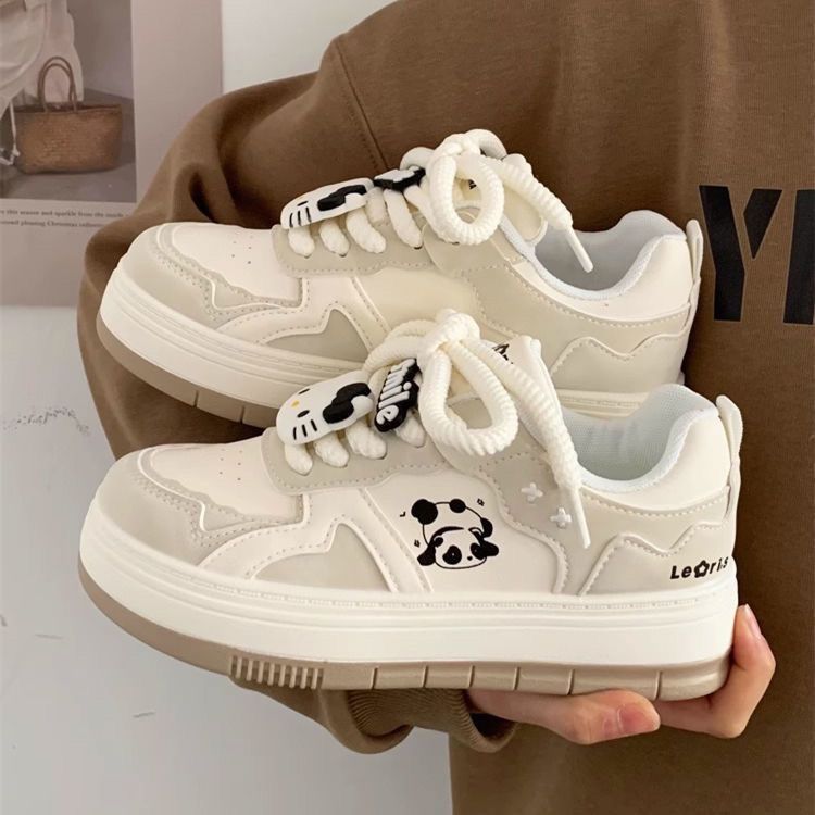 2025春季小众熊猫黑白丑萌小白鞋子女厚底百搭休闲学生跑步板鞋潮