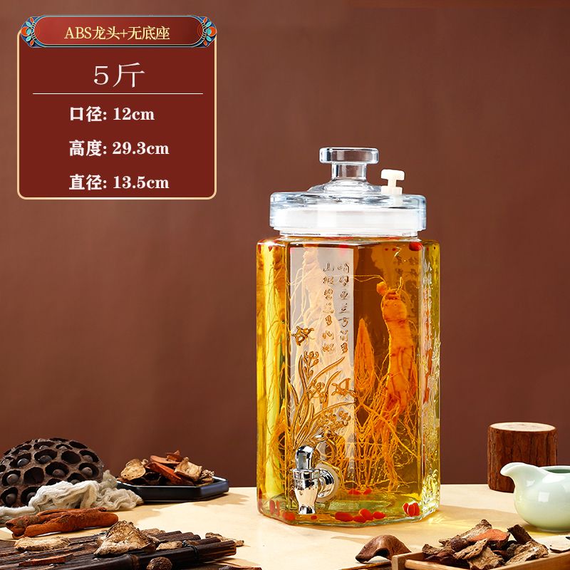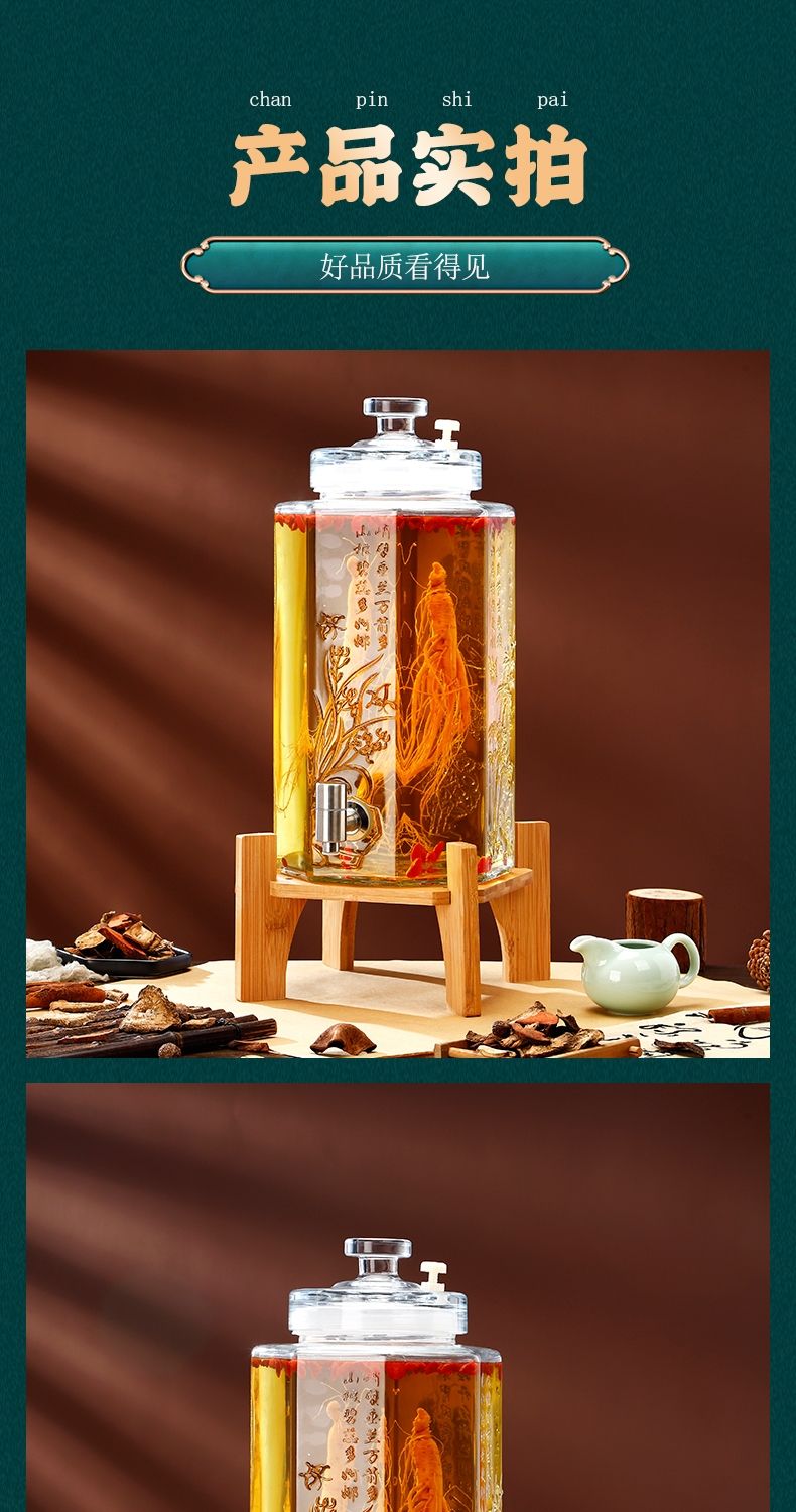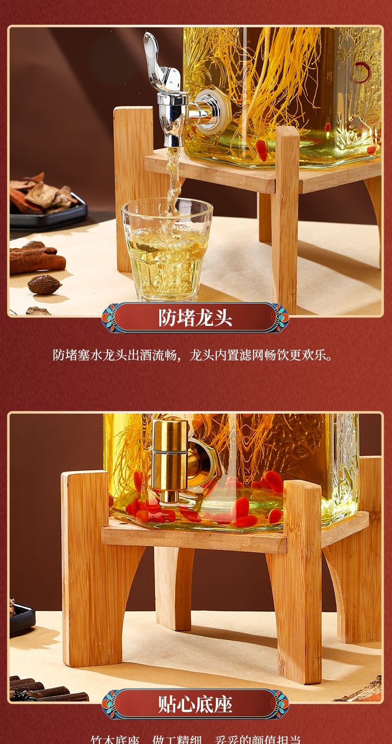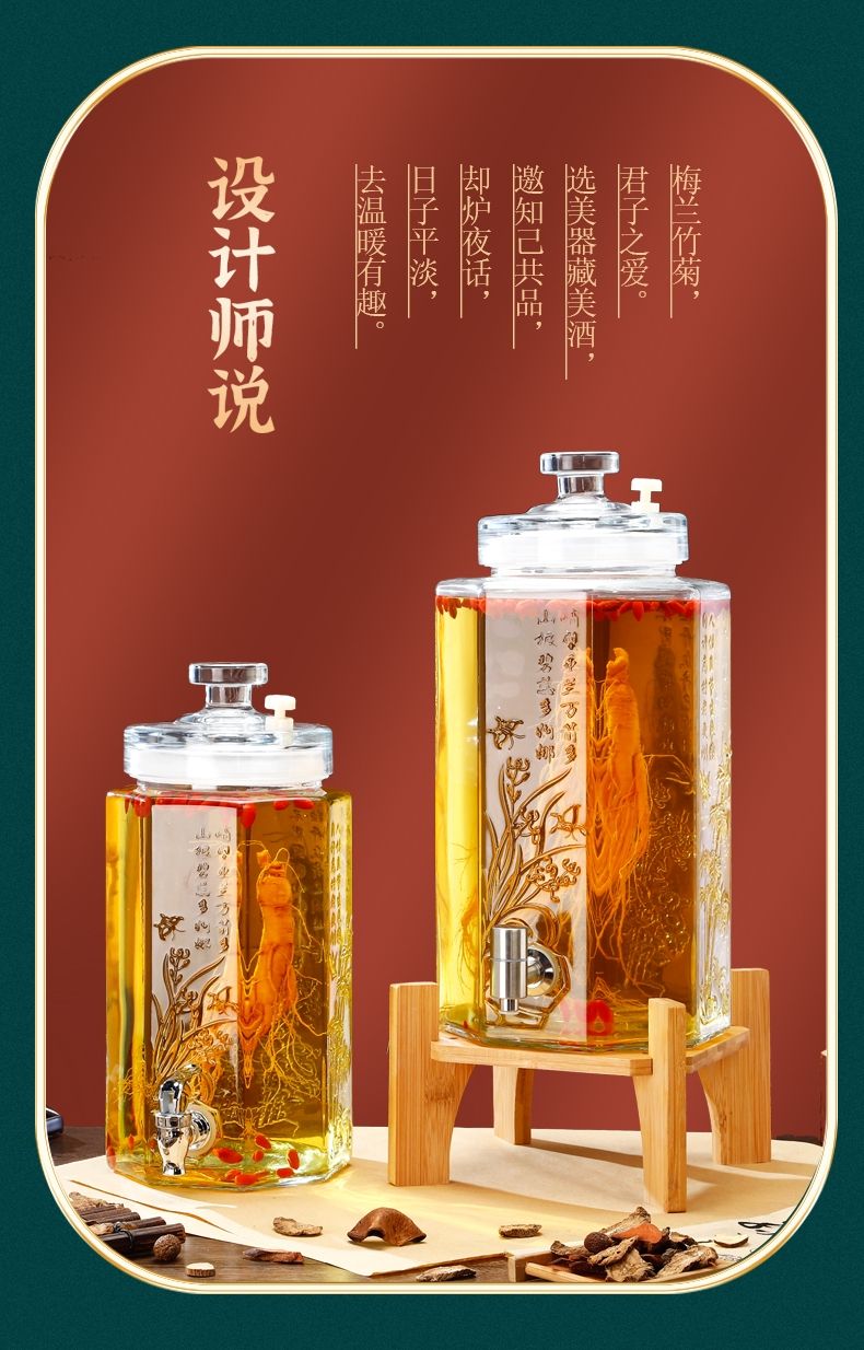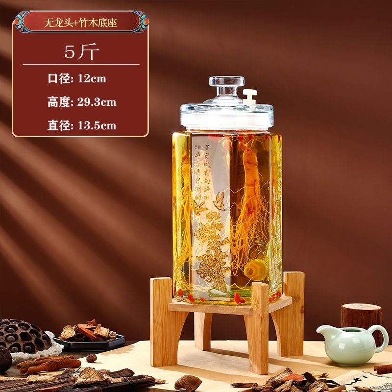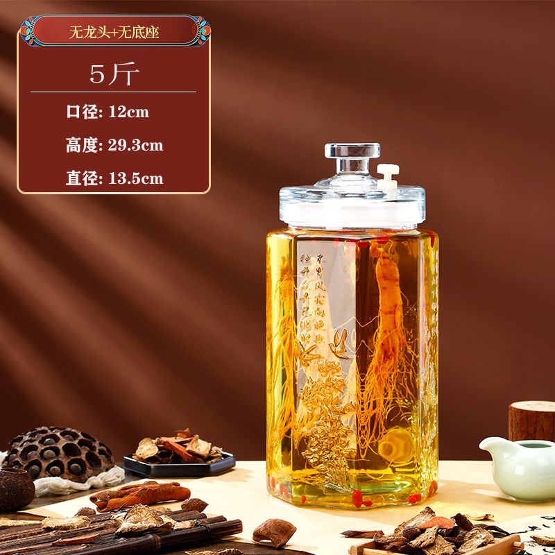 玻璃泡酒瓶家用人参白酒罐带龙头底座专用密封盖加厚酒坛酒瓶