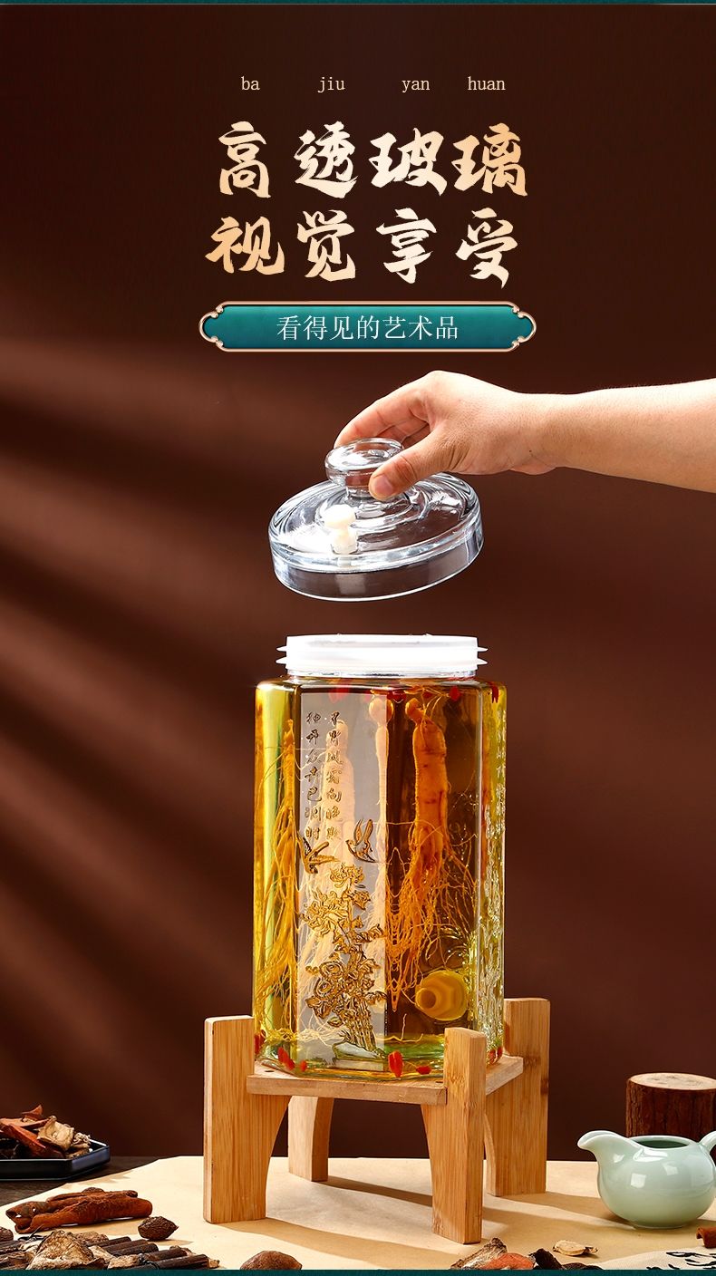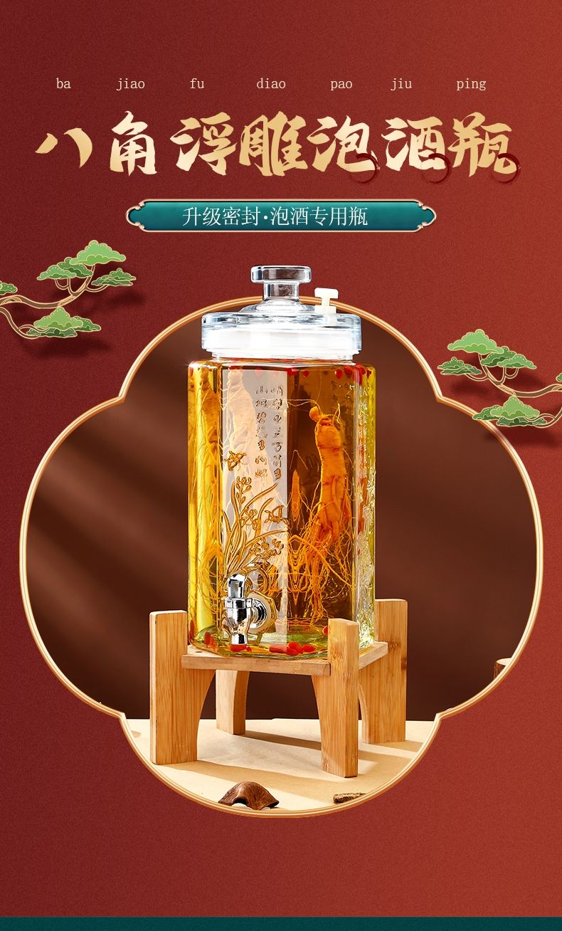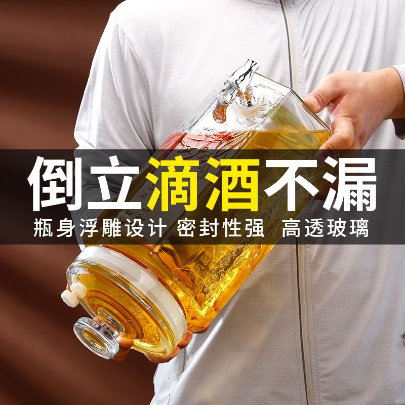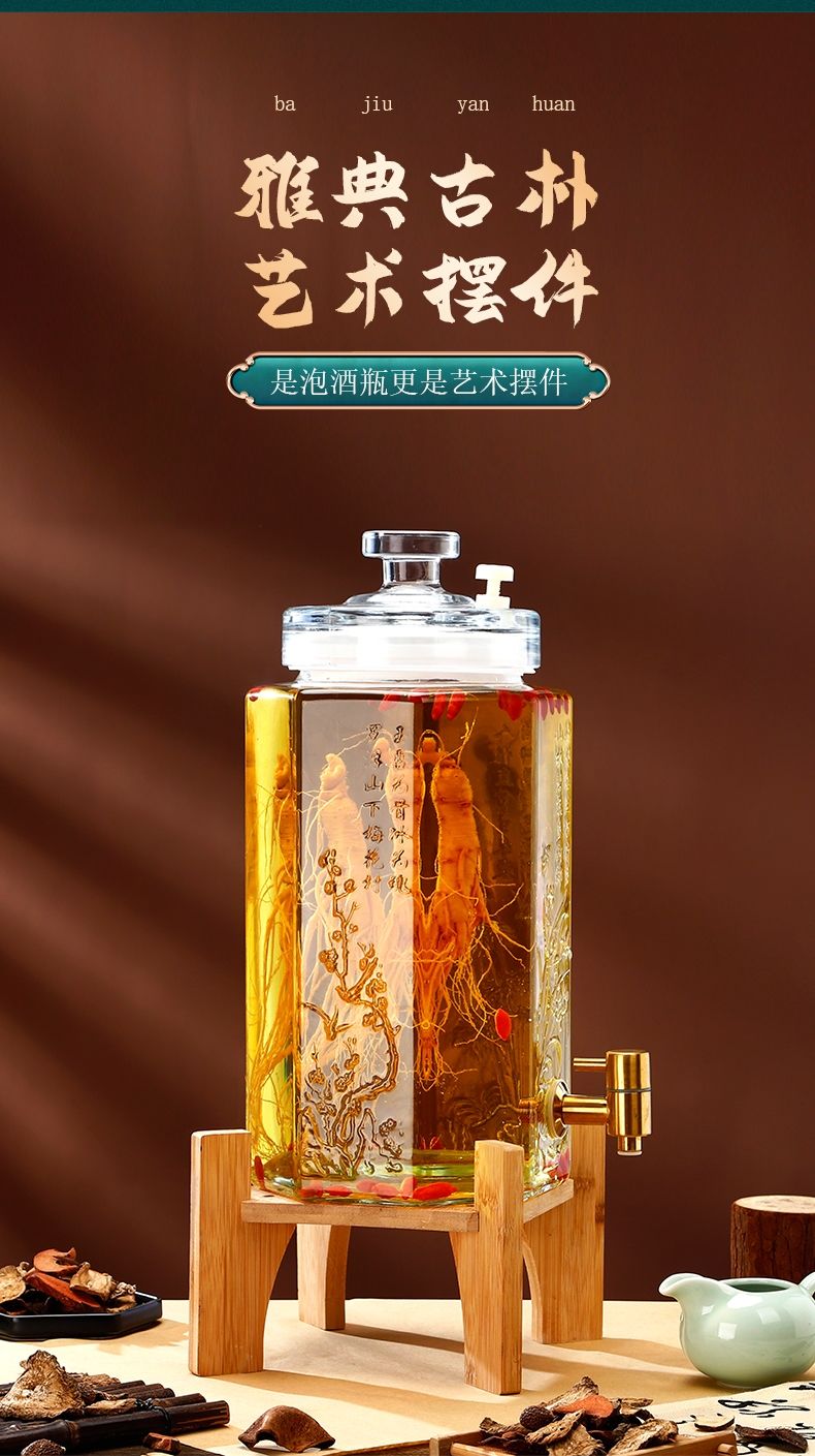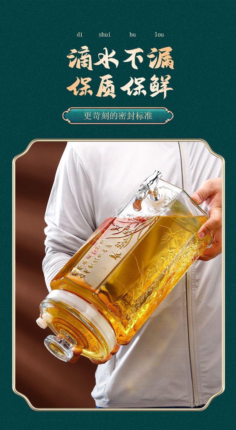 玻璃泡酒瓶家用人参白酒罐带龙头底座专用密封盖加厚酒坛酒瓶