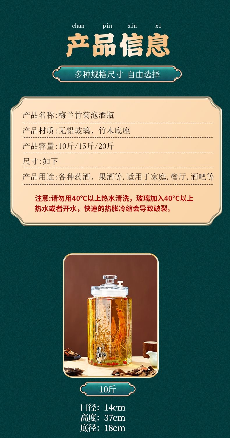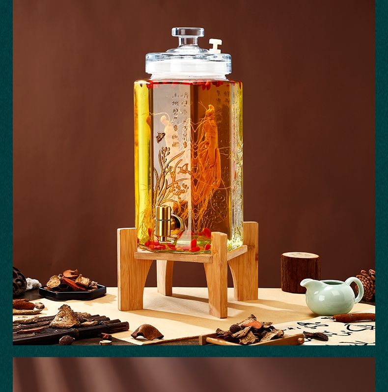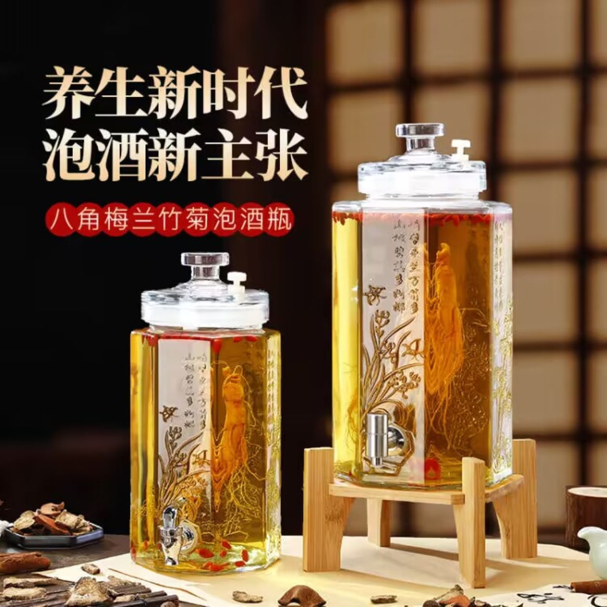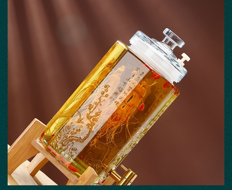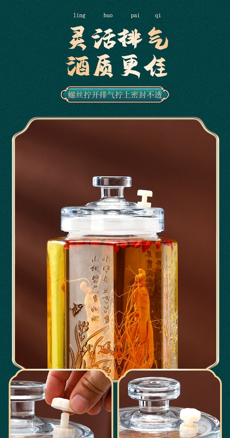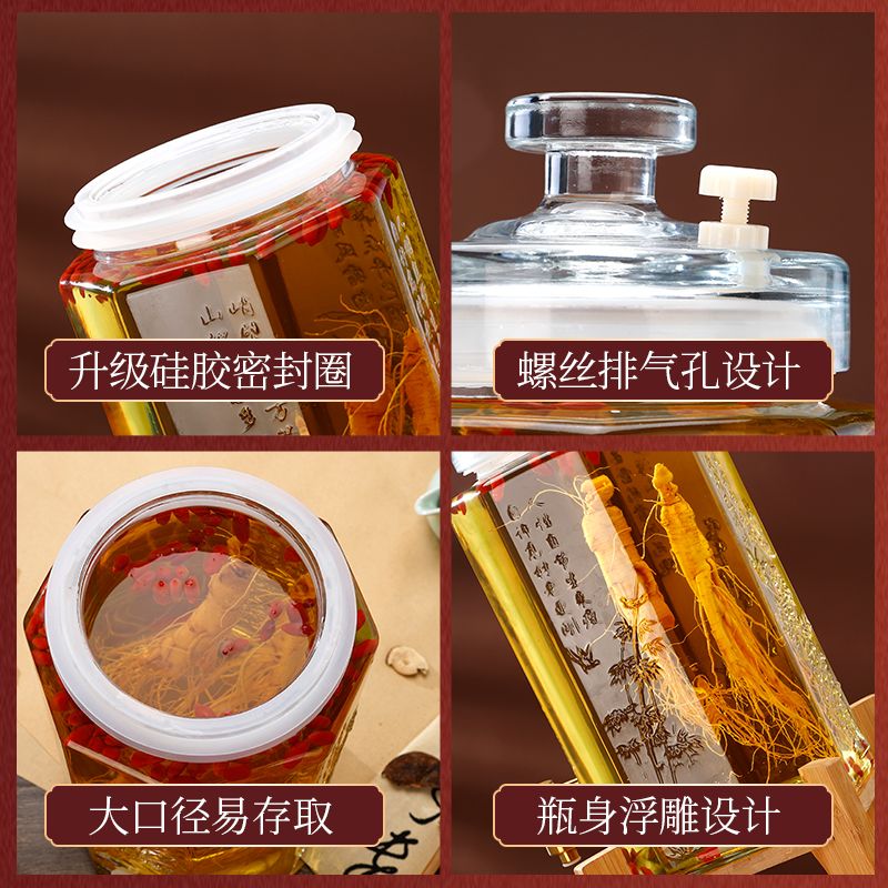 玻璃泡酒瓶家用人参白酒罐带龙头底座专用密封盖加厚酒坛酒瓶