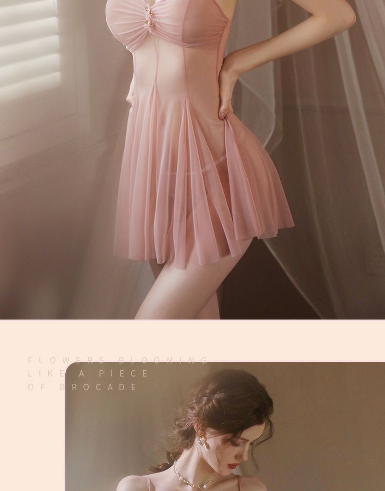 | pink pure nightdress (including t-shaped panties)(粉色纯欲睡裙(含T裤)) | USD $4.57 | 999999 piece available |