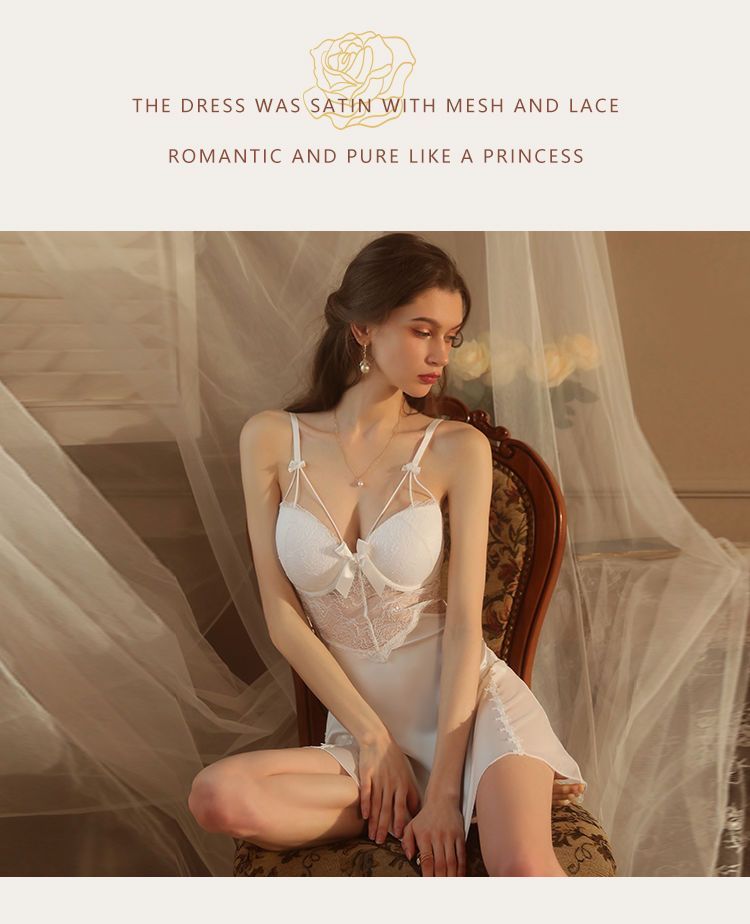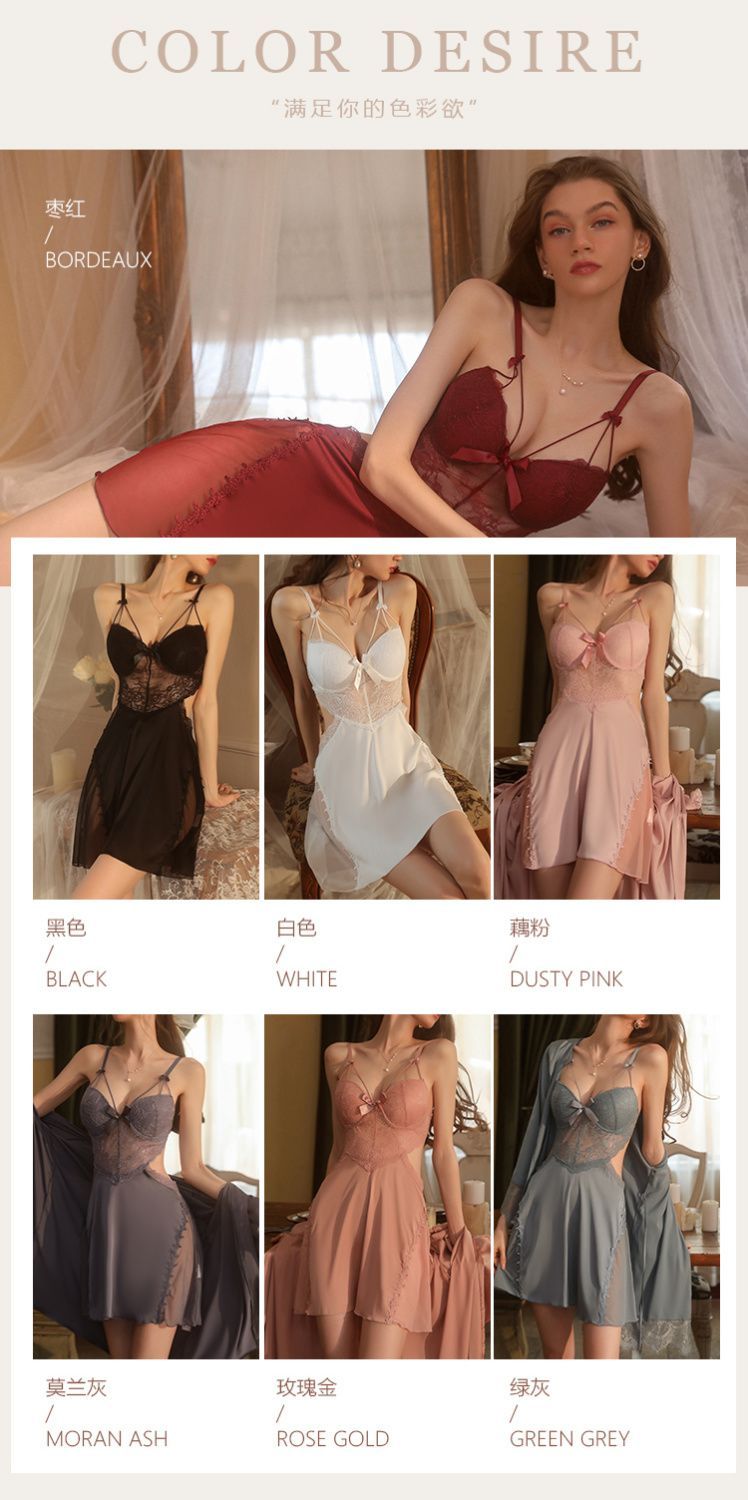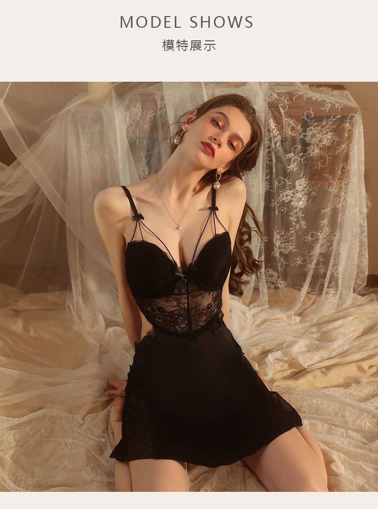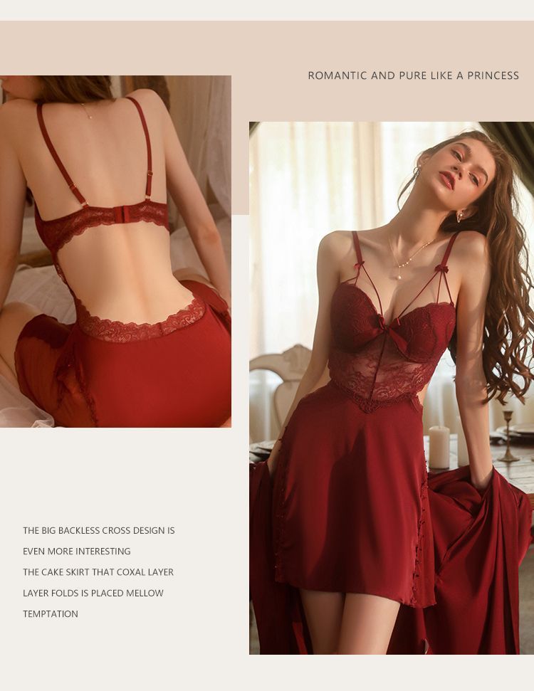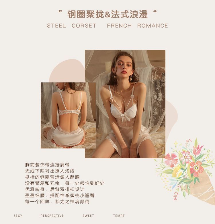 钢托聚拢带胸垫女性感迷人辣妹睡裙蕾丝镂空美背睡衣外袍两件套装
