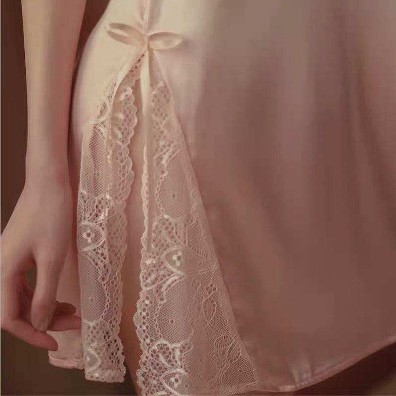 性感睡衣女春秋季涤纶布料蕾丝诱惑黑色内衣夏季粉色开叉吊带睡裙
