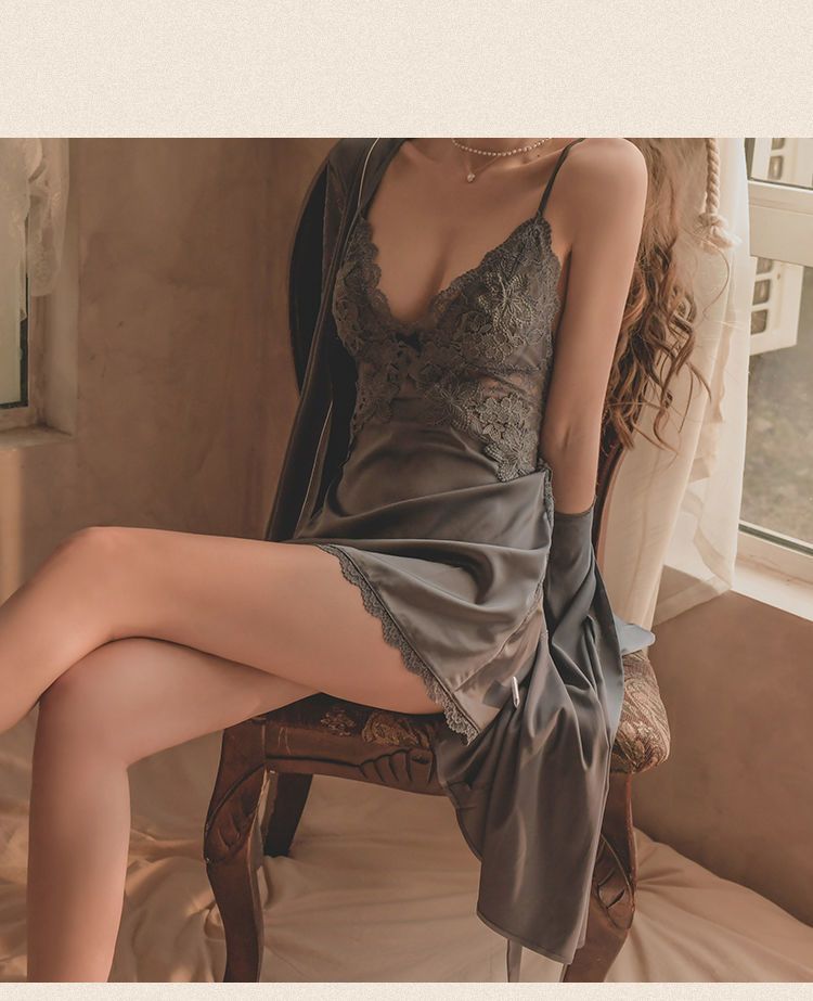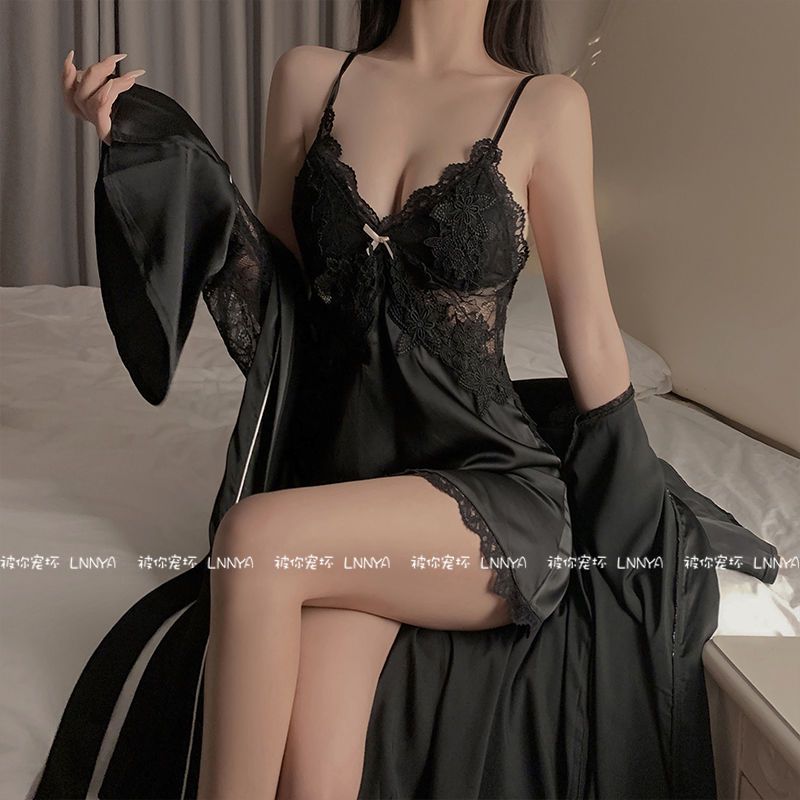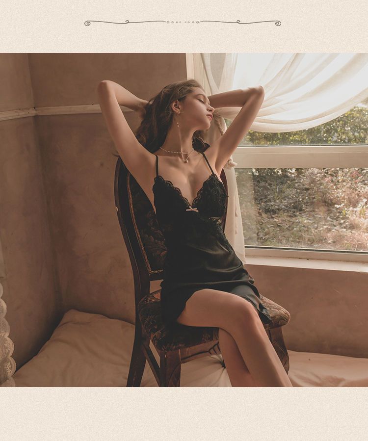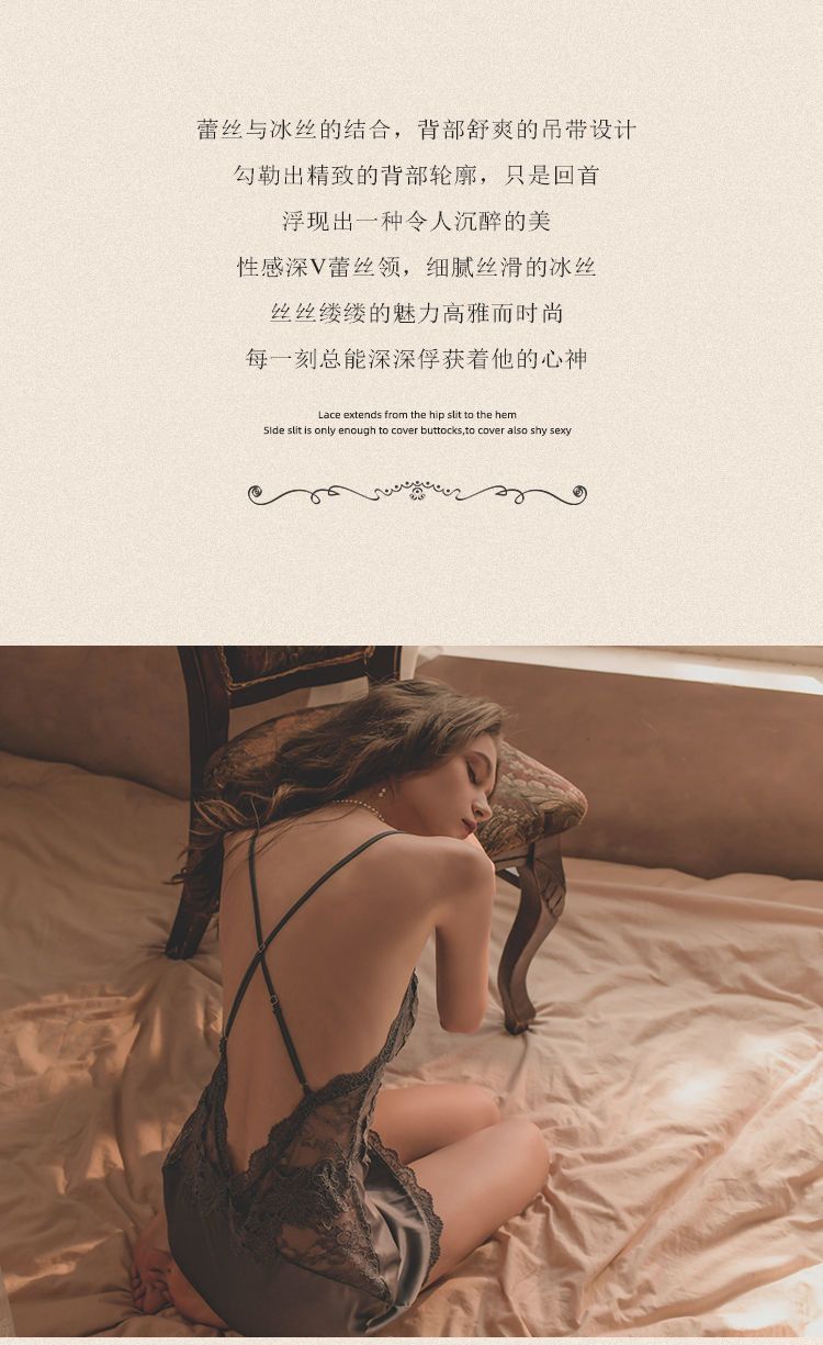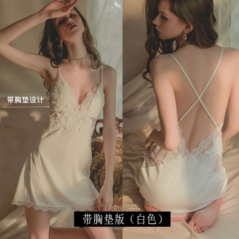 性感睡裙女夏季冰丝薄款带胸垫聚拢蕾丝诱惑露背私房秋冬吊带睡衣