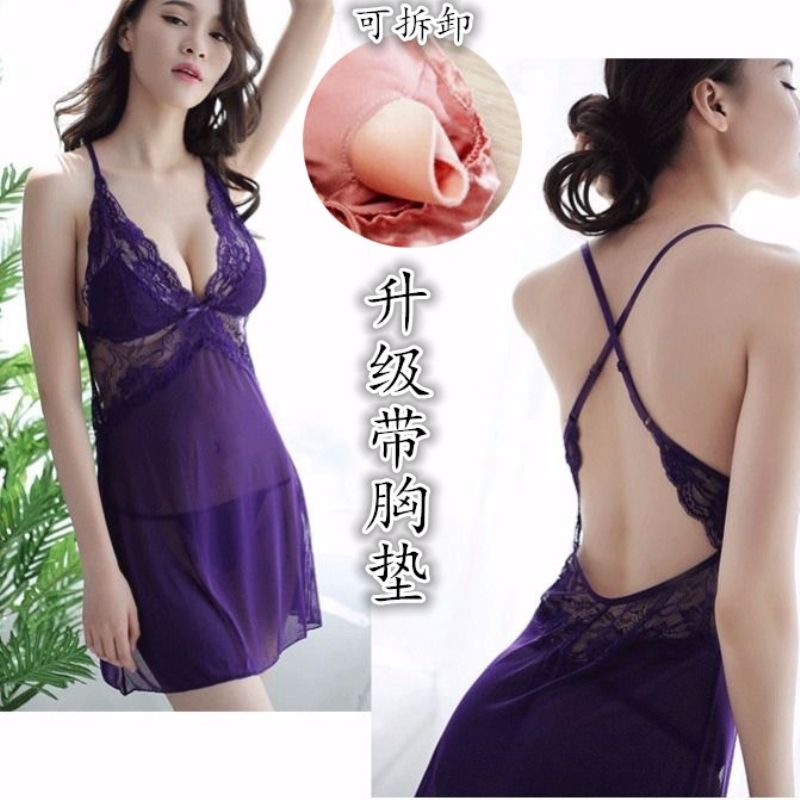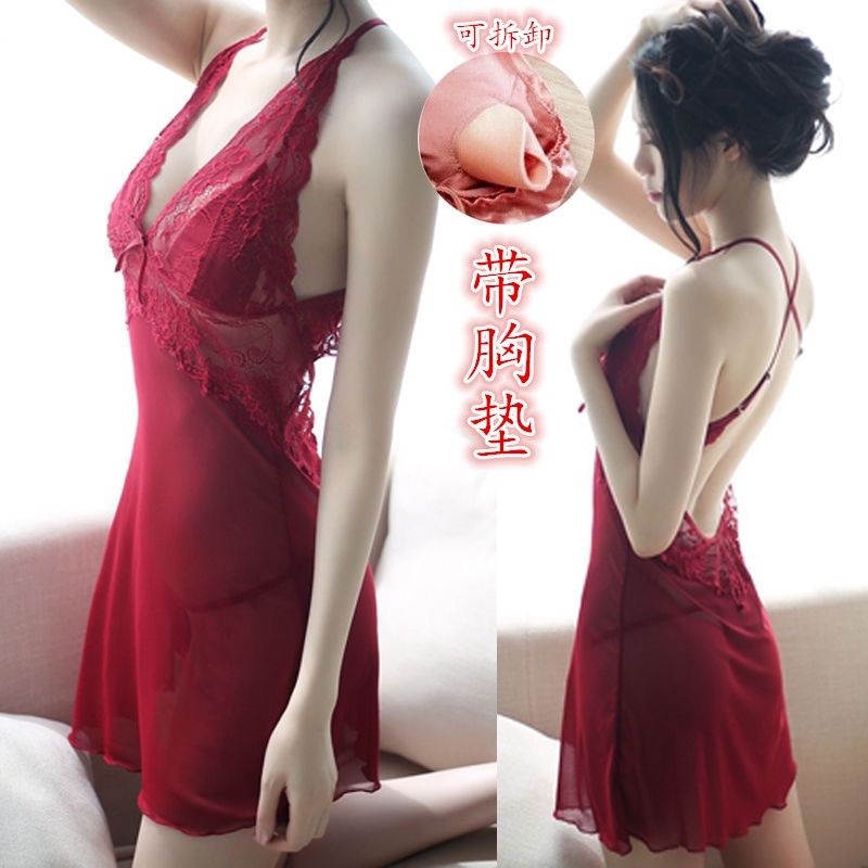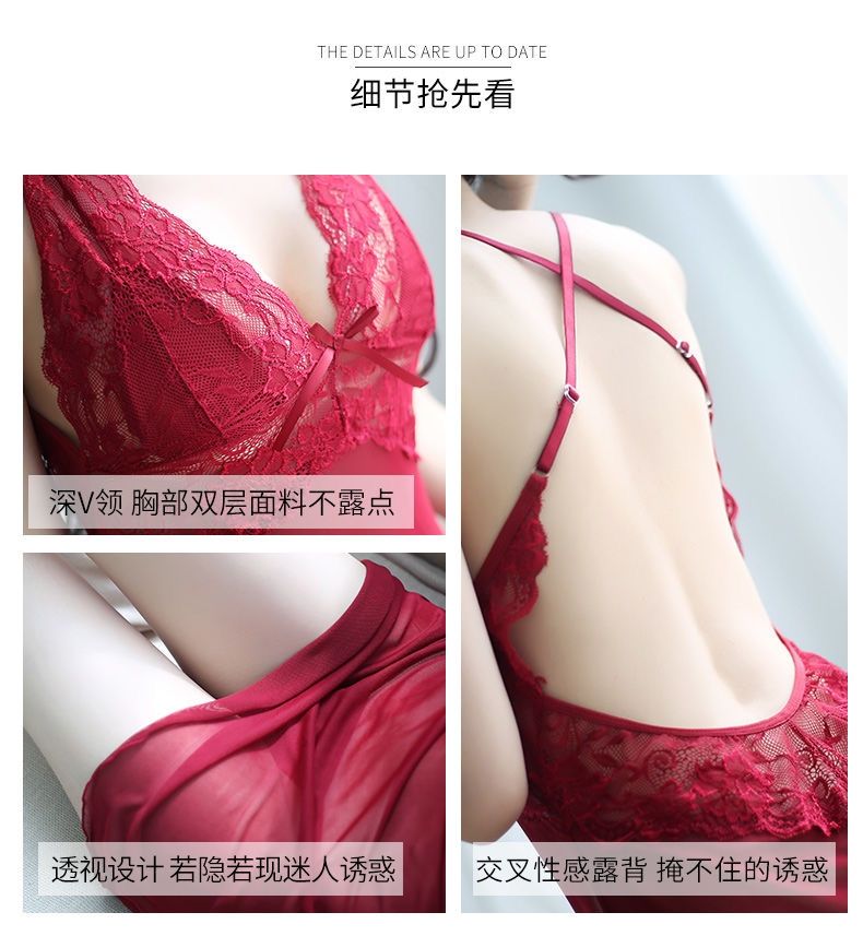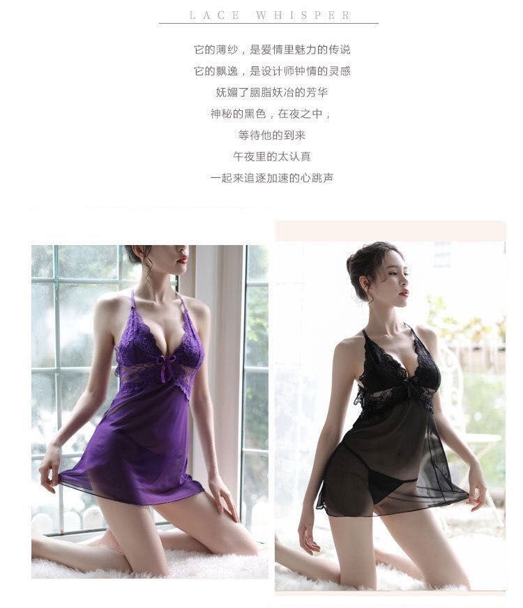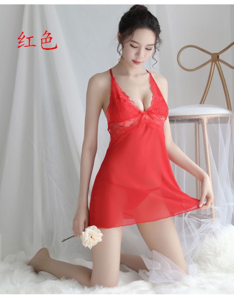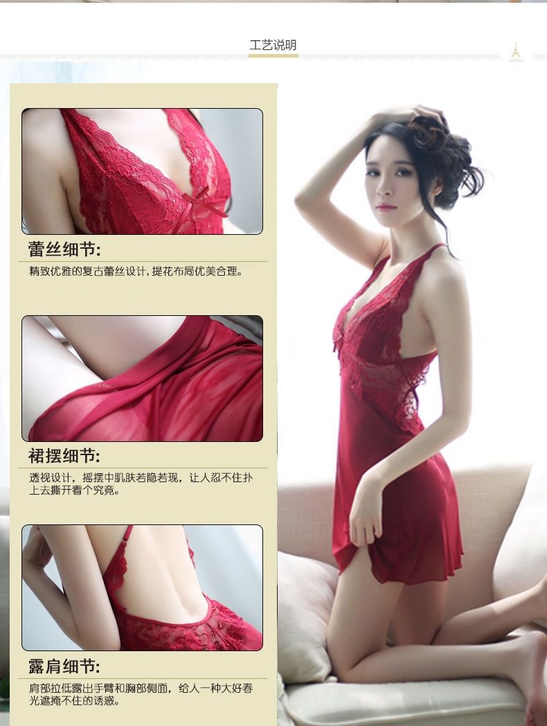 性感加肥大码蕾丝冰丝网纱吊带睡衣睡裙V领情趣内裤家居服两件套