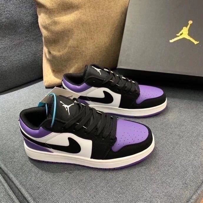 冬季AJ1爆款黑紫低帮脚趾男女ins潮流情侣百搭休闲校园运动滑板鞋