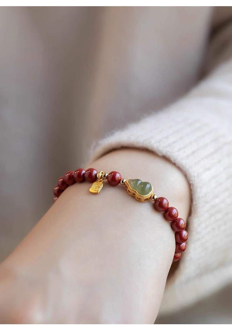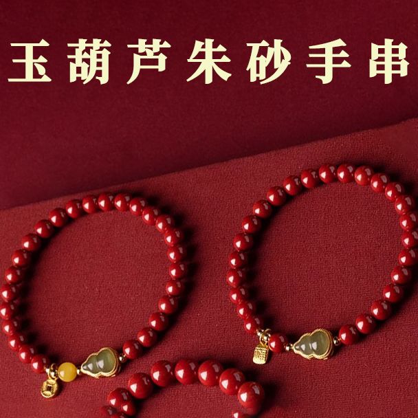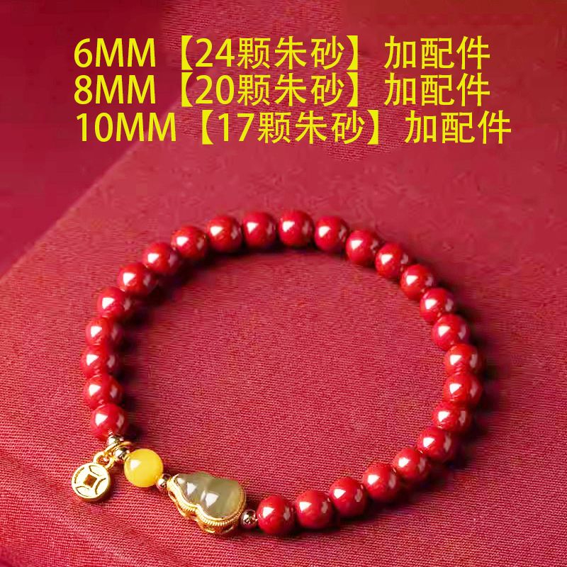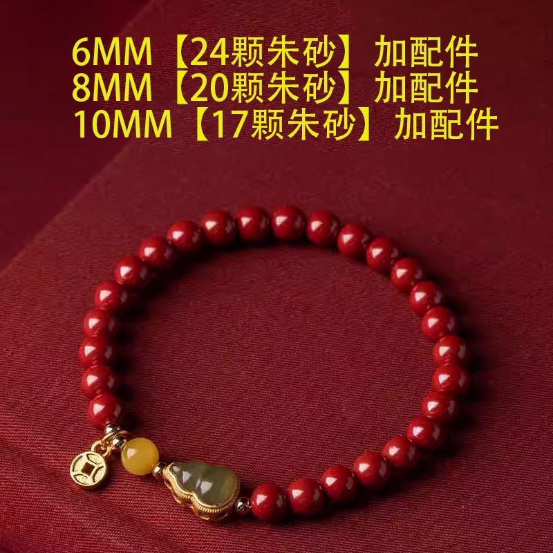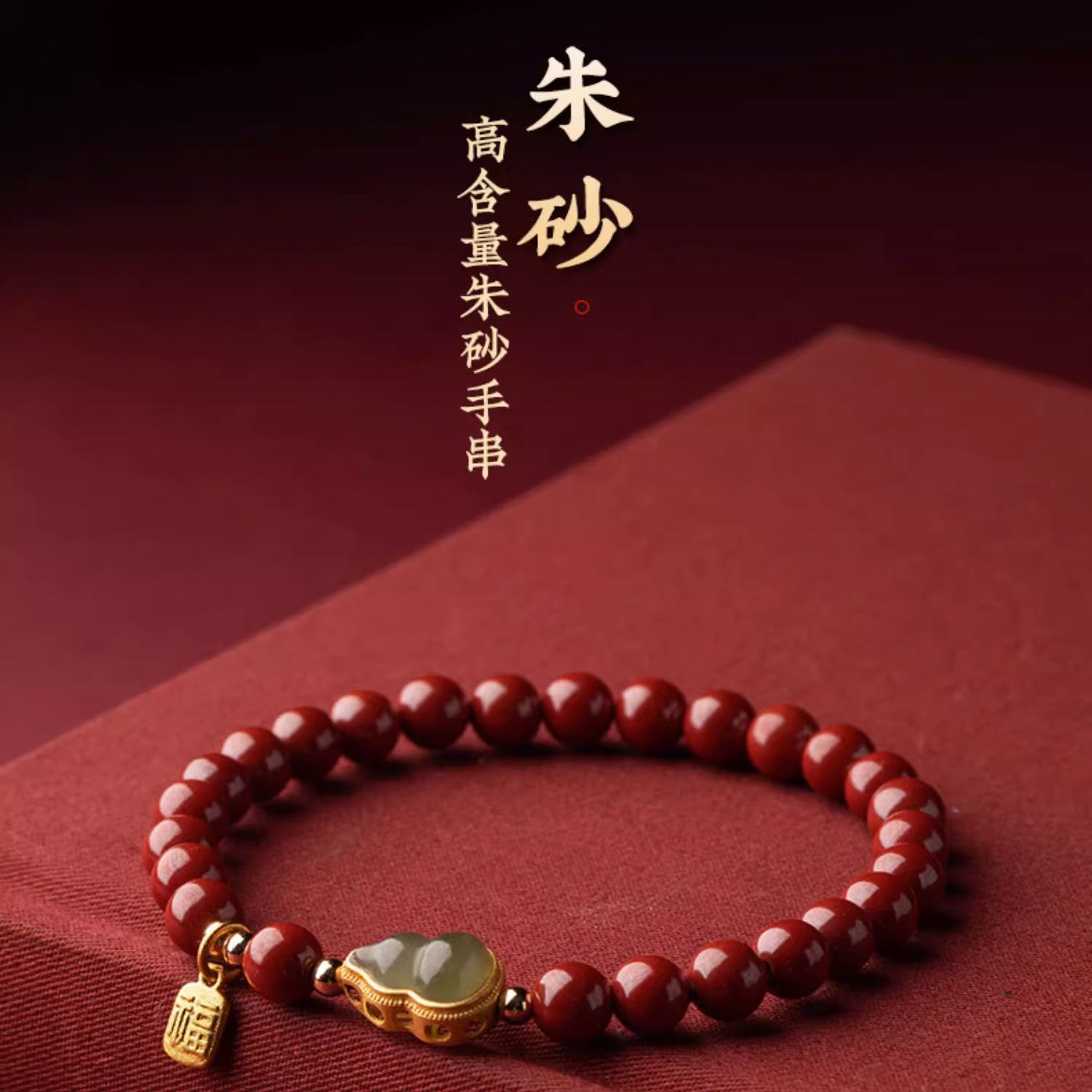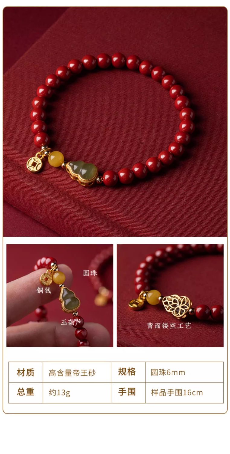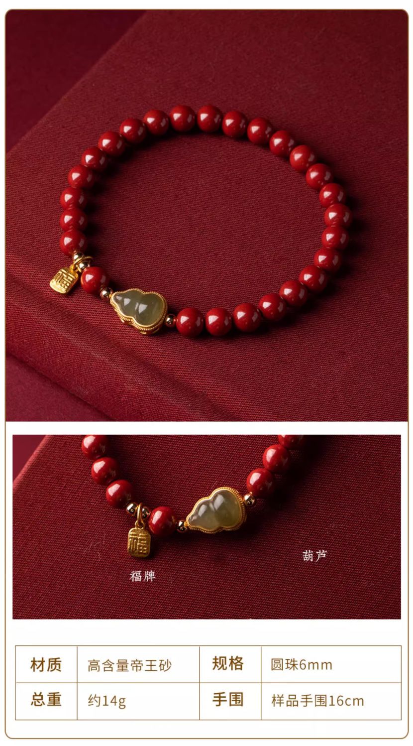 保真朱砂手串高含量紫金砂男女款和玉福禄葫芦本命年古风手链礼物