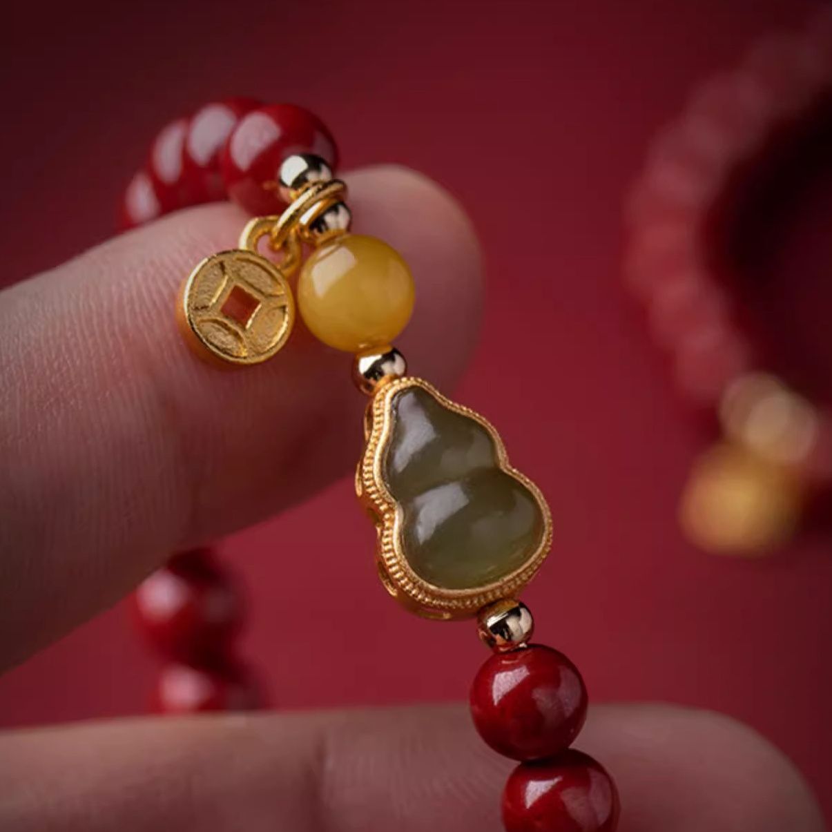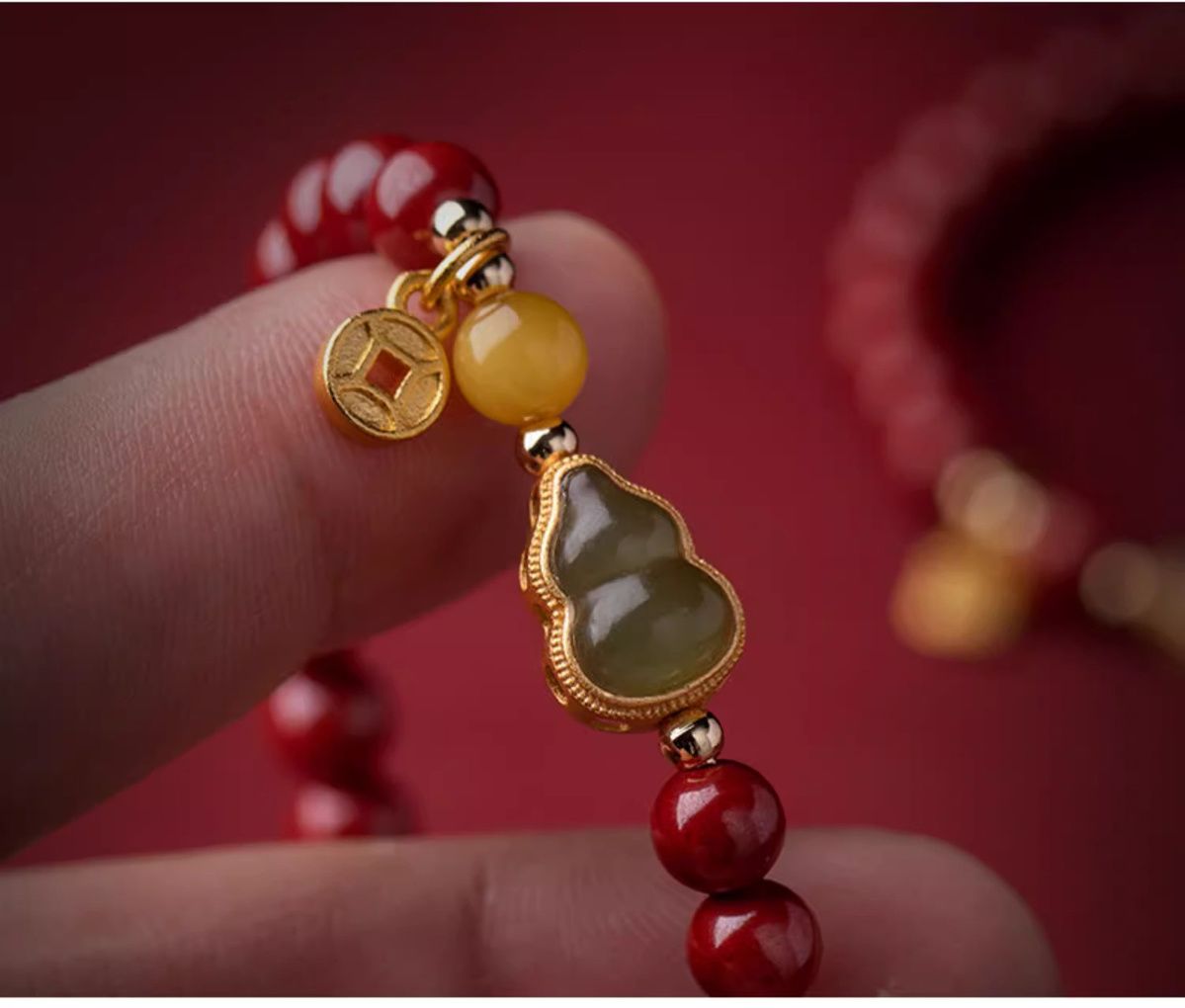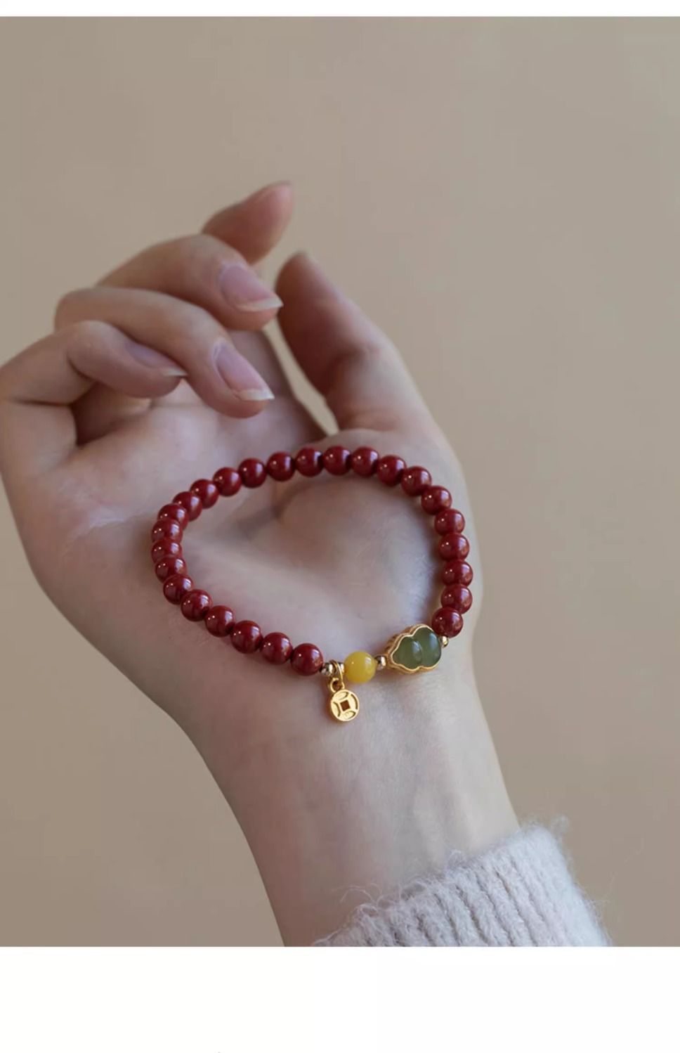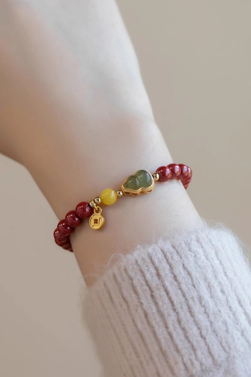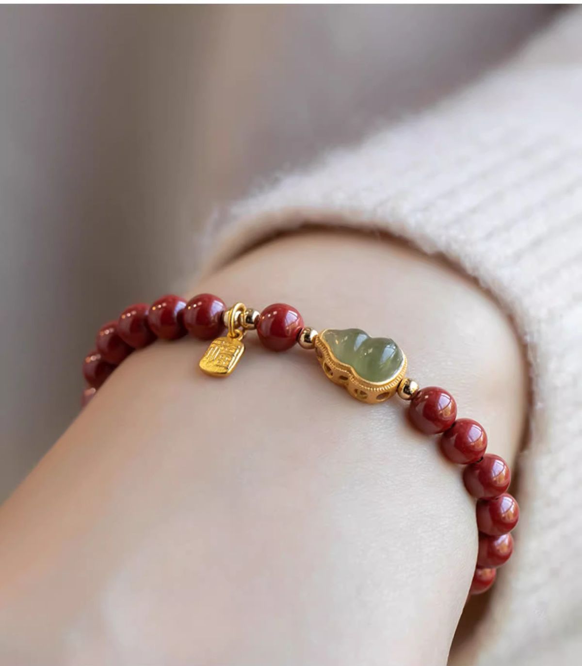 保真朱砂手串高含量紫金砂男女款和玉福禄葫芦本命年古风手链礼物