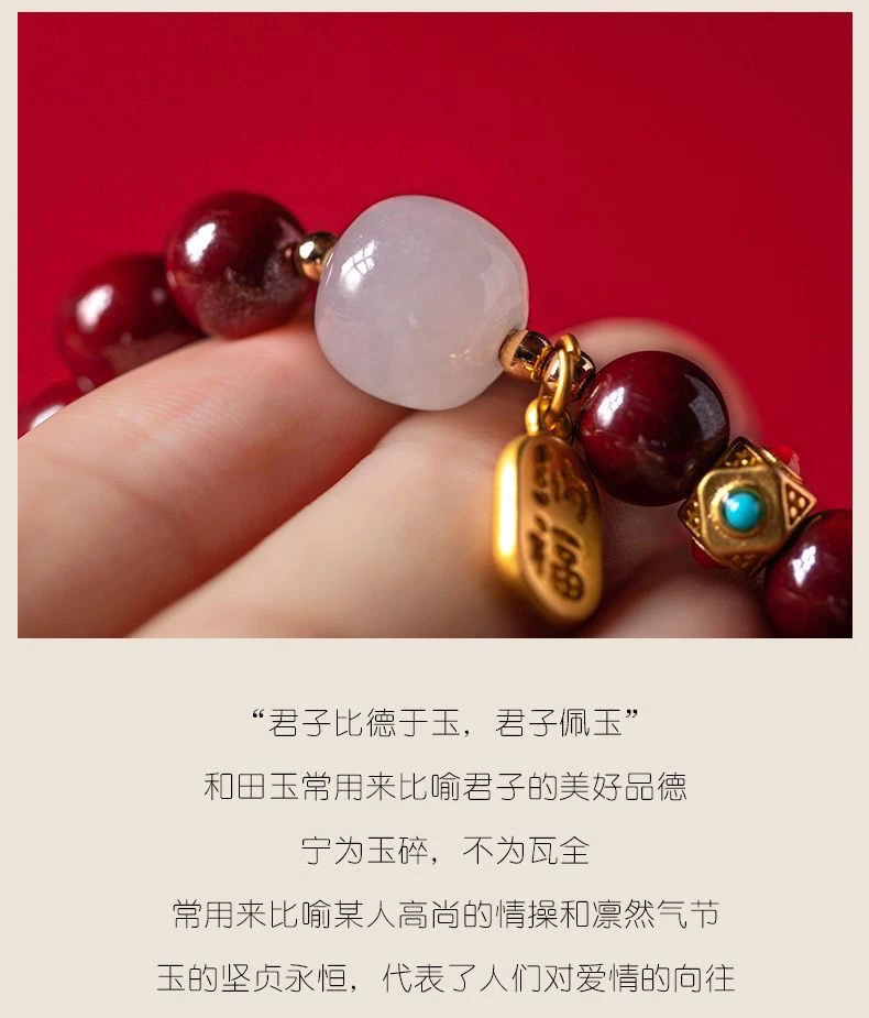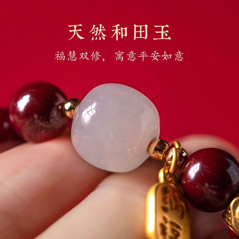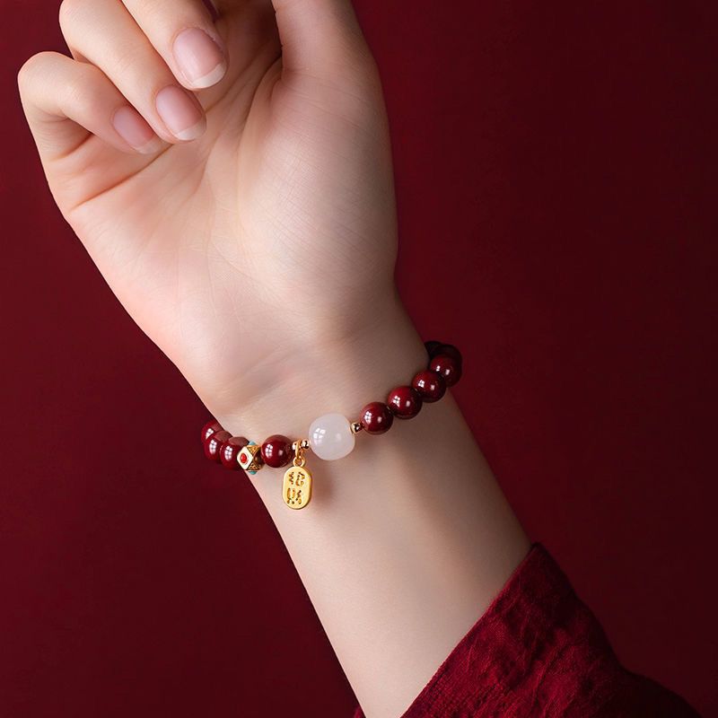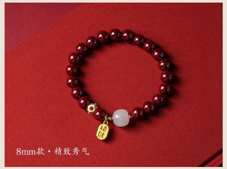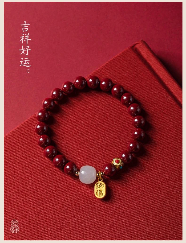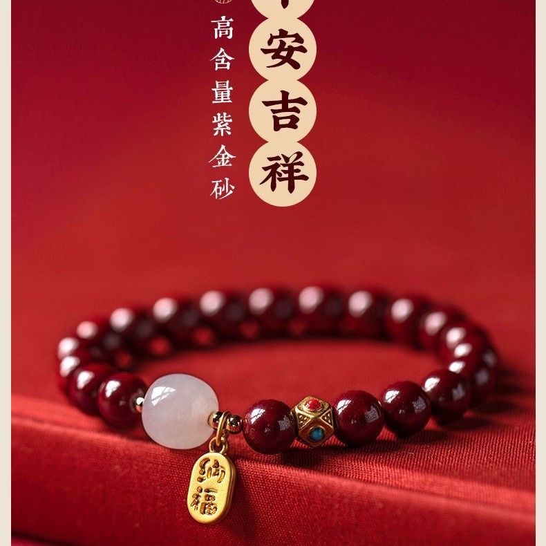 保真朱砂纳福好运珠手串女款本命年礼物饰品手链古风财源