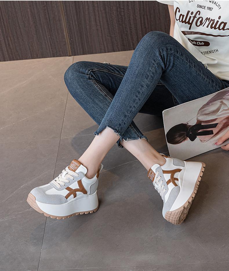 女鞋8cm2025秋冬新款厚底松糕跟显高休闲阿甘鞋运动鞋老爹鞋
