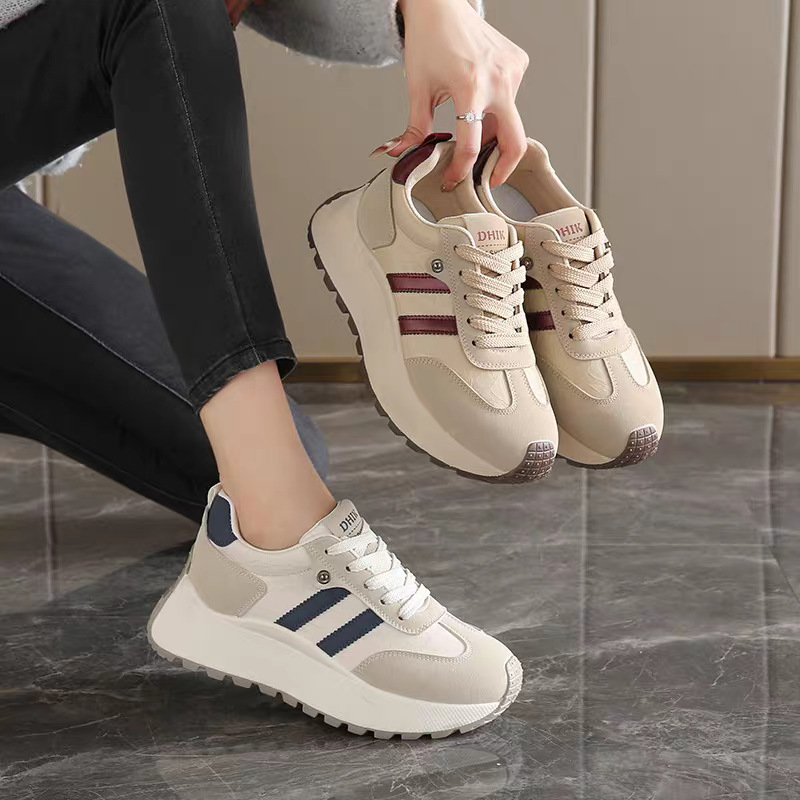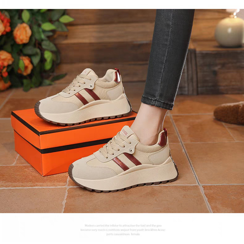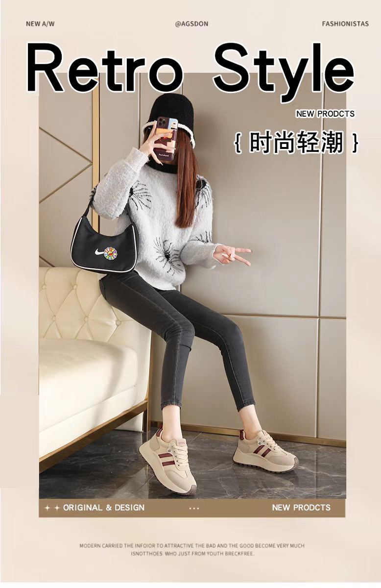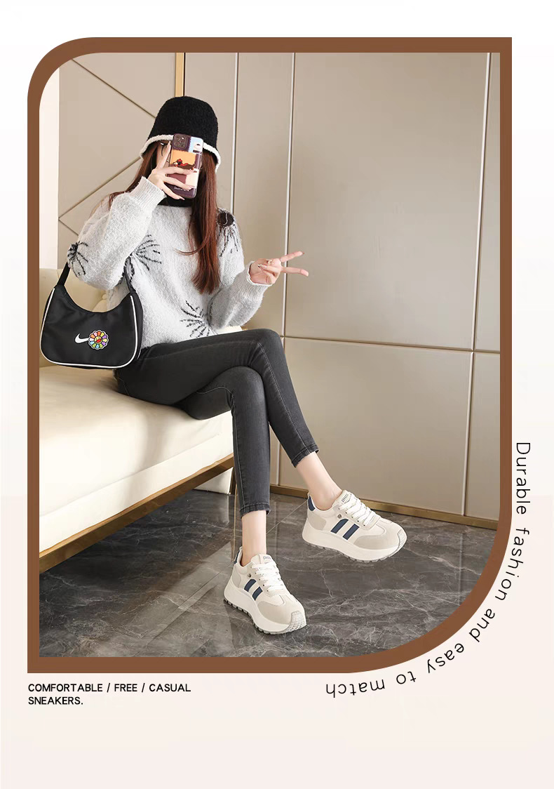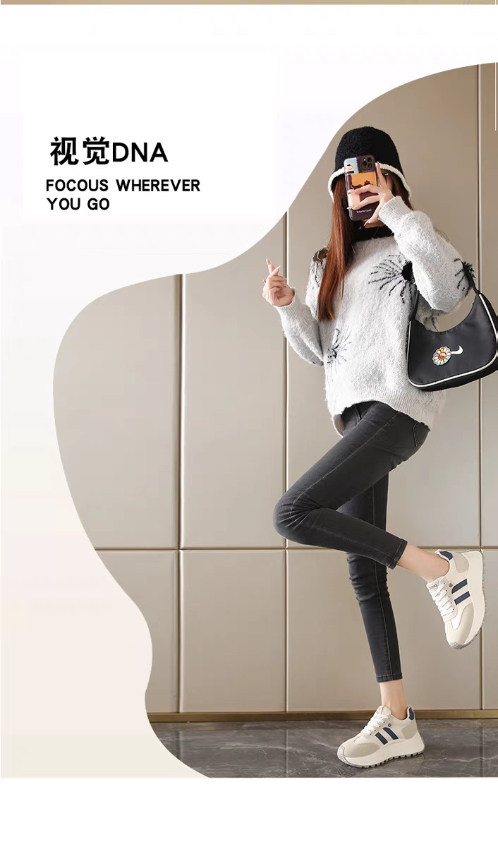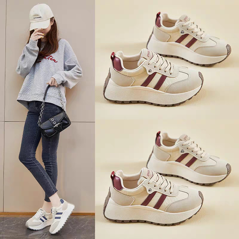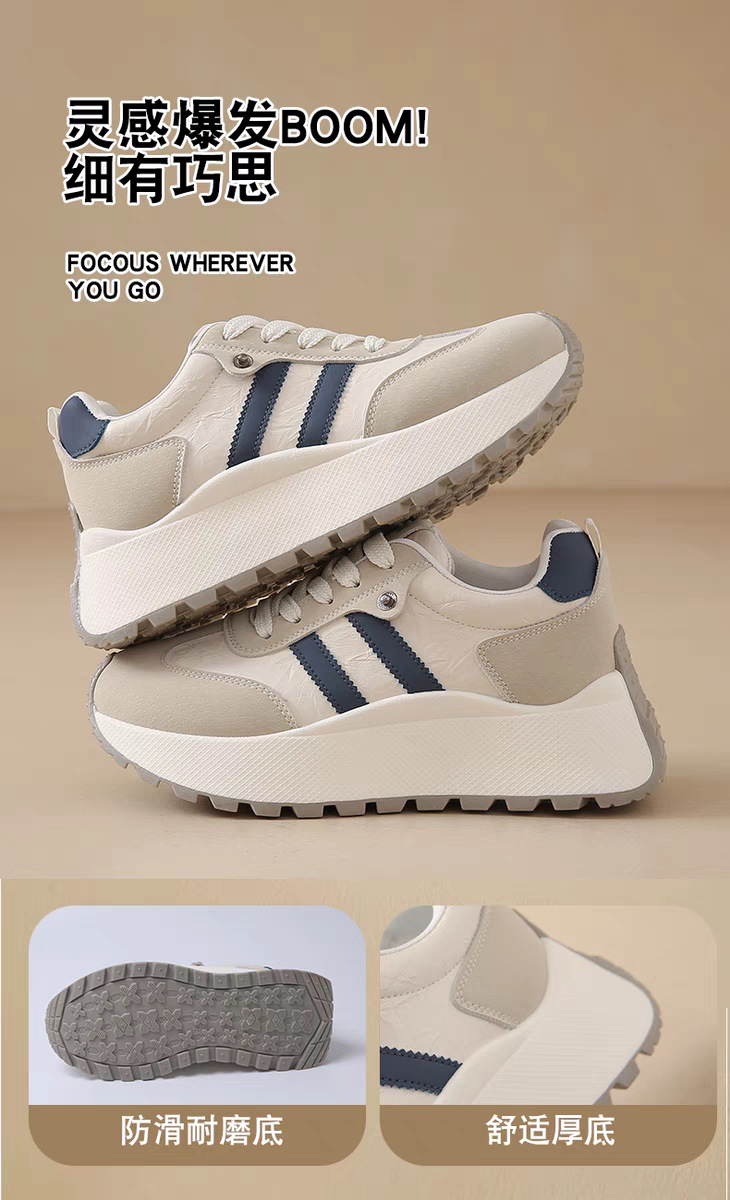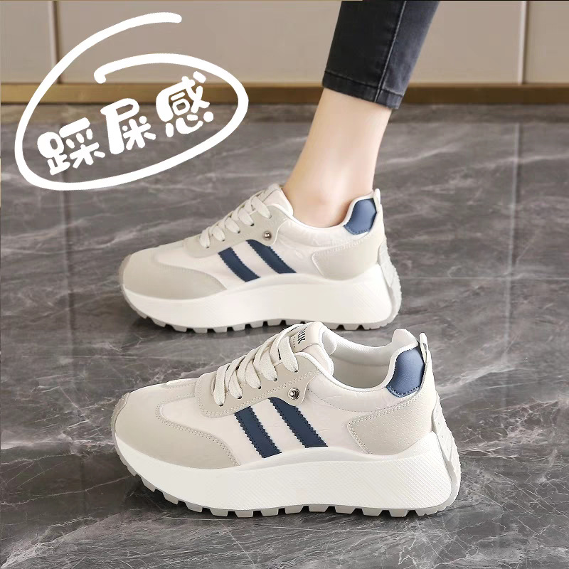 踩屎感运动鞋女款四季显脚小华夫阿甘鞋女轻便防滑跑步厚底老爹鞋