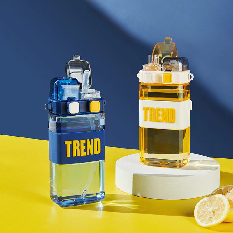 儿童学生运动弹盖吸管水杯背带便携创意方形双饮杯户外水壶