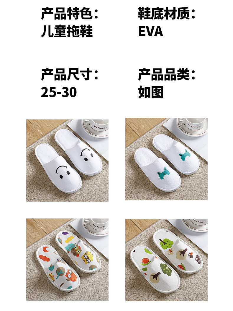 酒店民宿亲子房儿童一次性拖鞋小孩珊瑚绒旅行待客卡通图案拖鞋