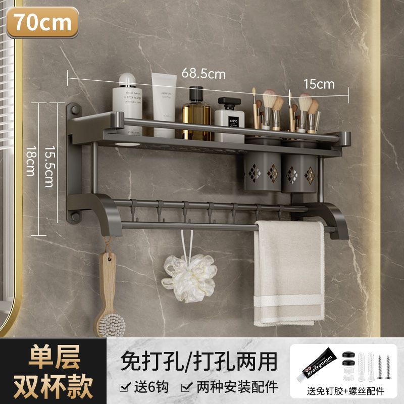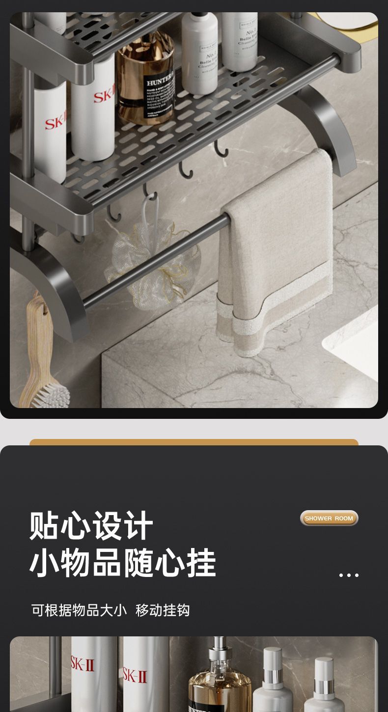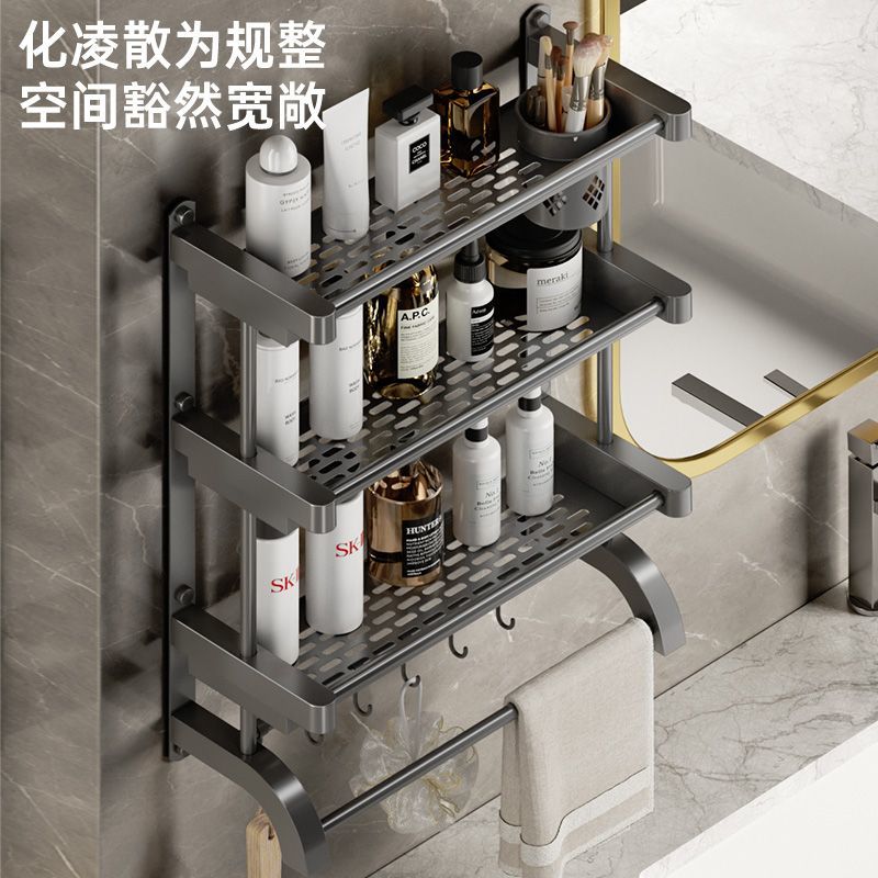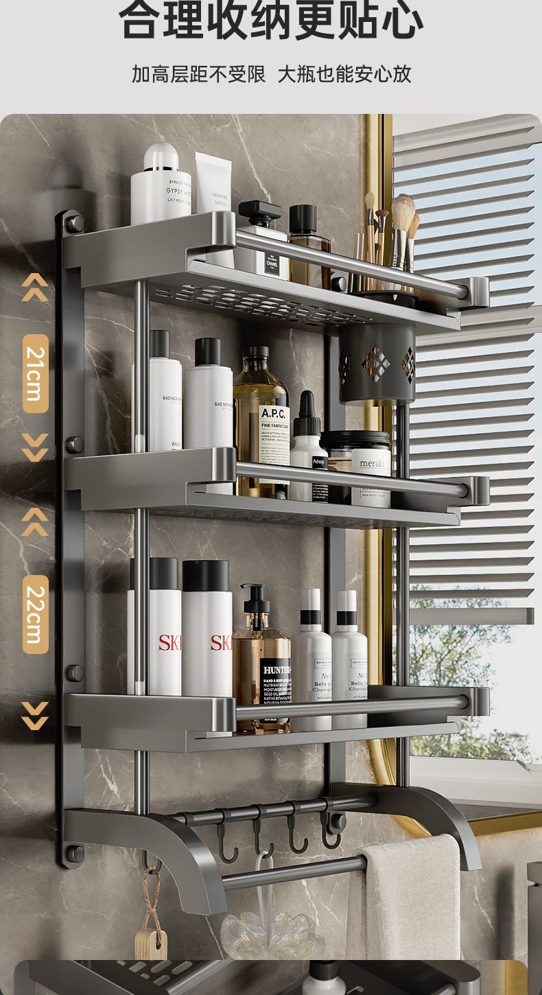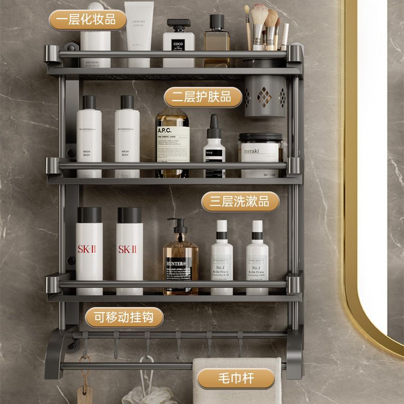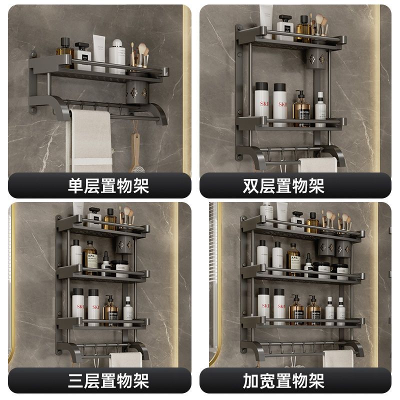 卫生间置物架厕所置物多功能免打孔壁挂式挂墙上洗漱用品毛巾架子