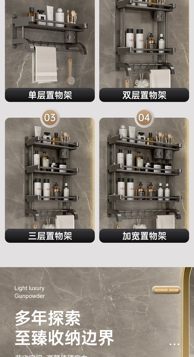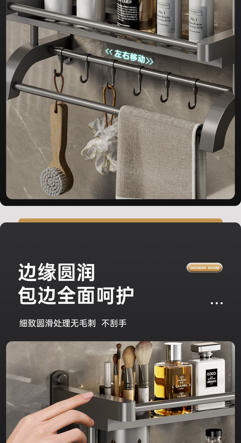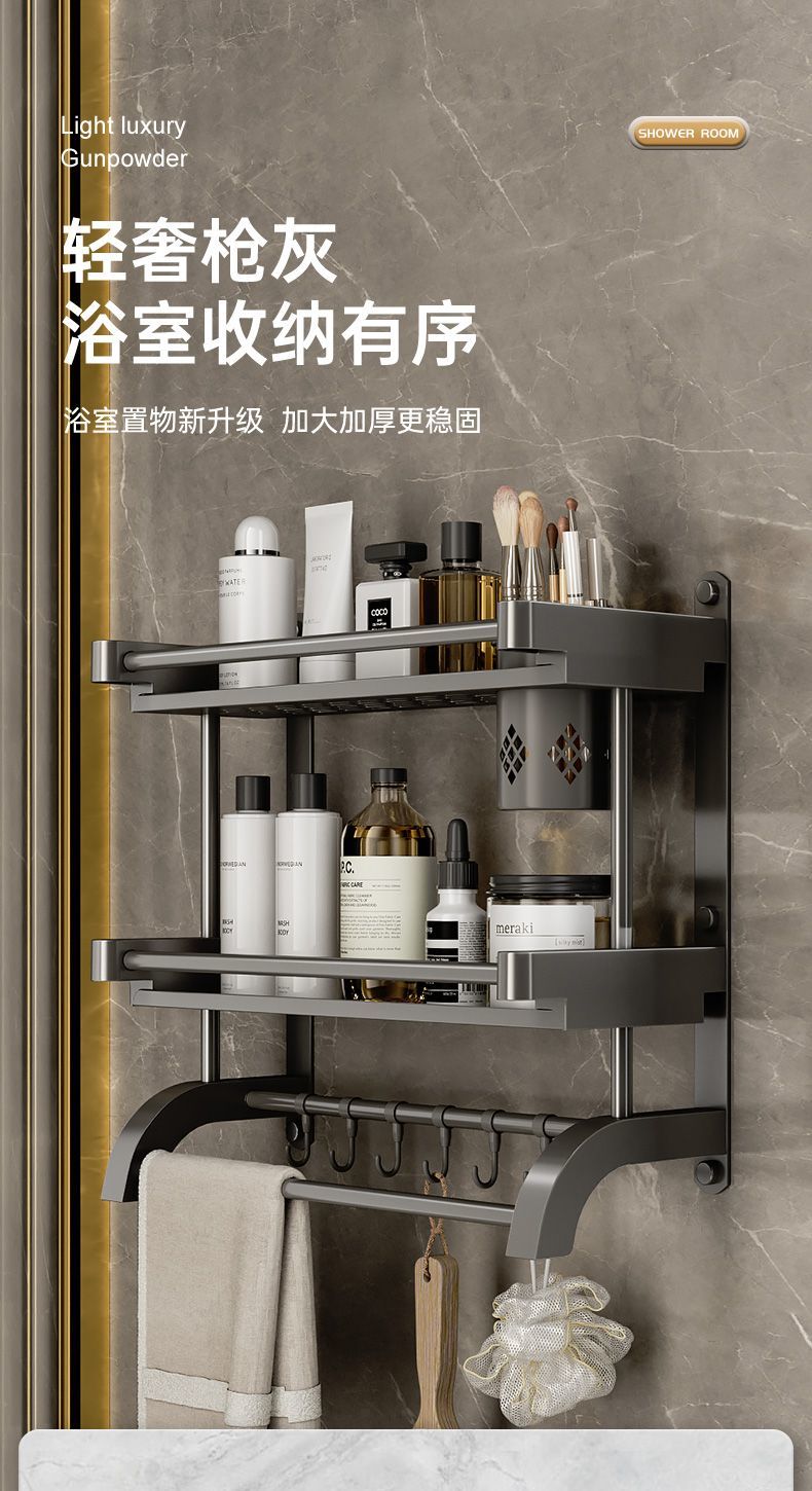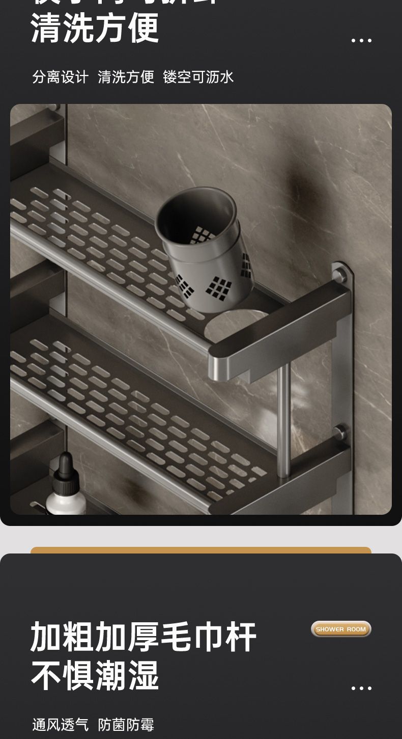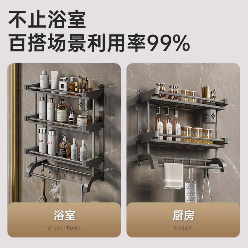 卫生间置物架厕所置物多功能免打孔壁挂式挂墙上洗漱用品毛巾架子