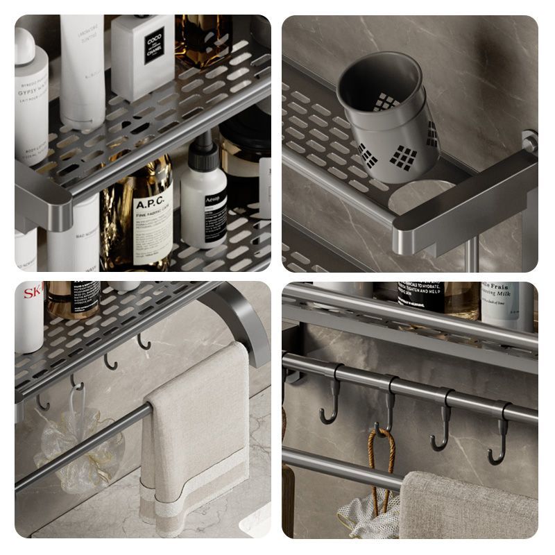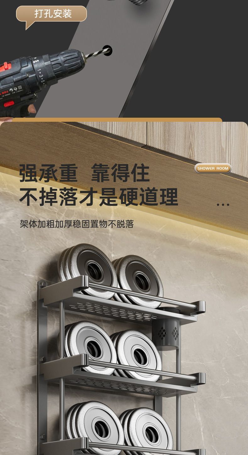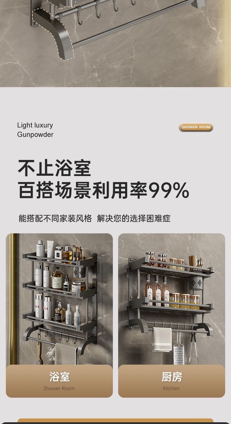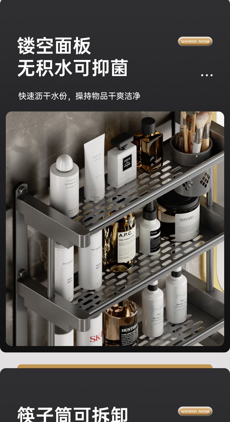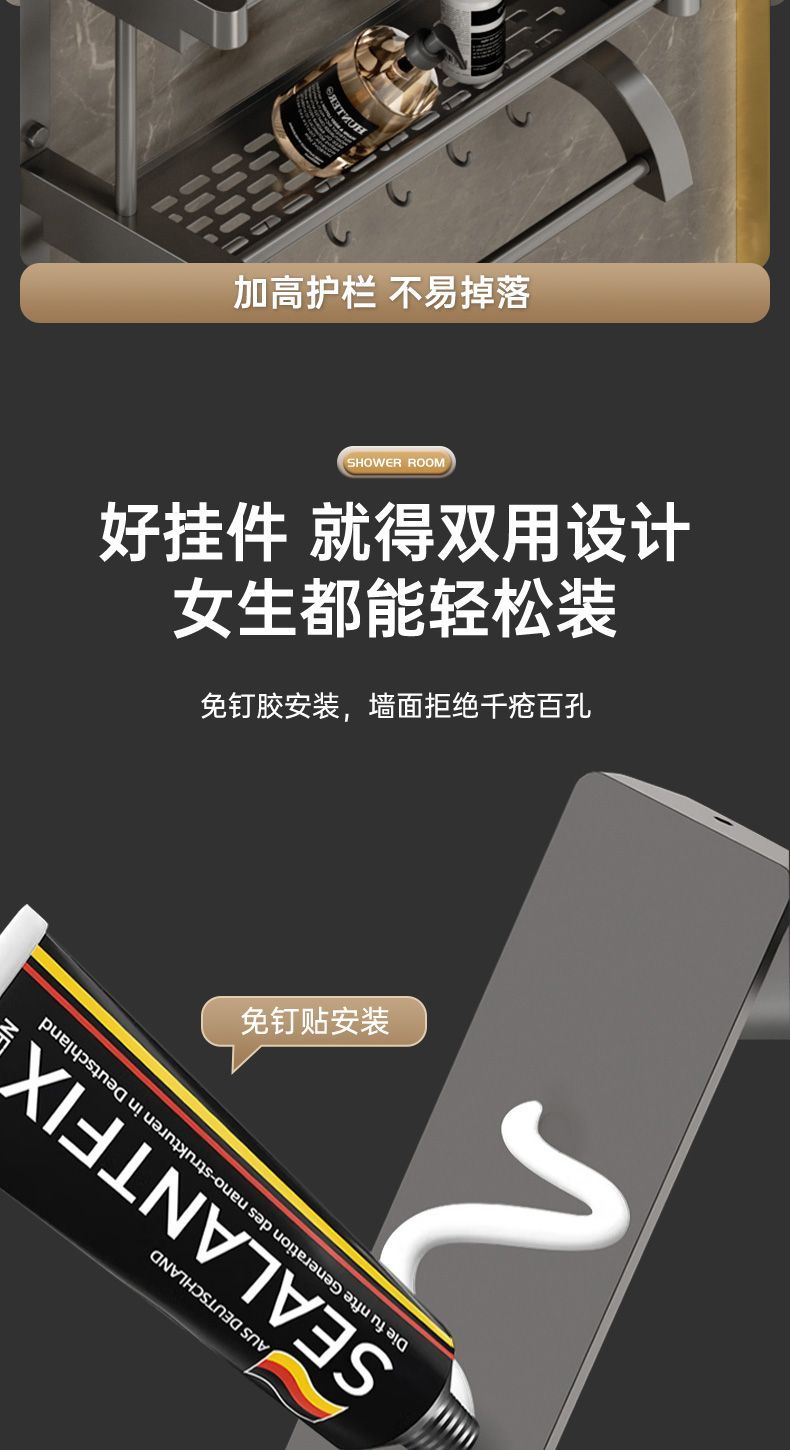卫生间置物架厕所置物多功能免打孔壁挂式挂墙上洗漱用品毛巾架子