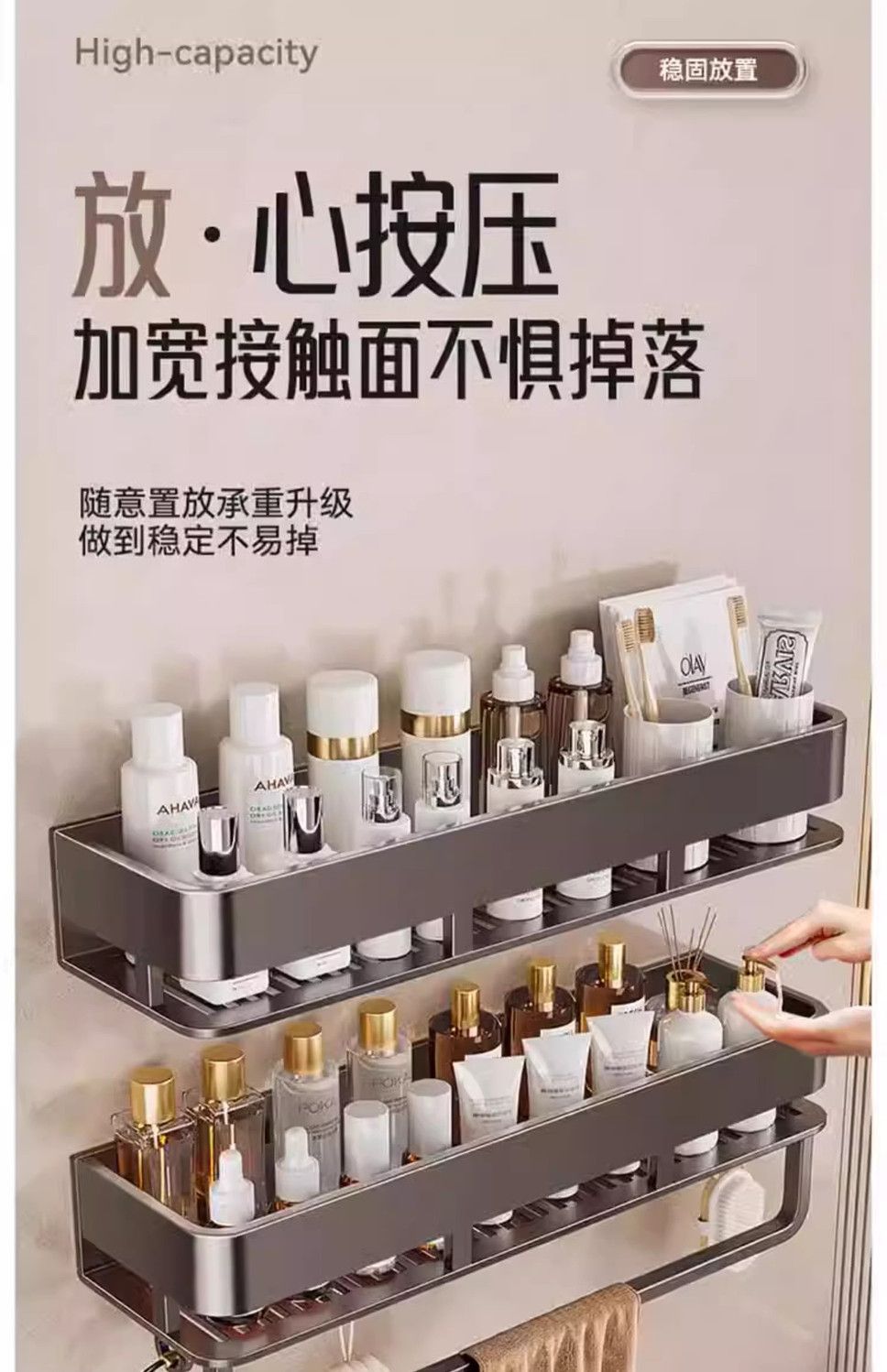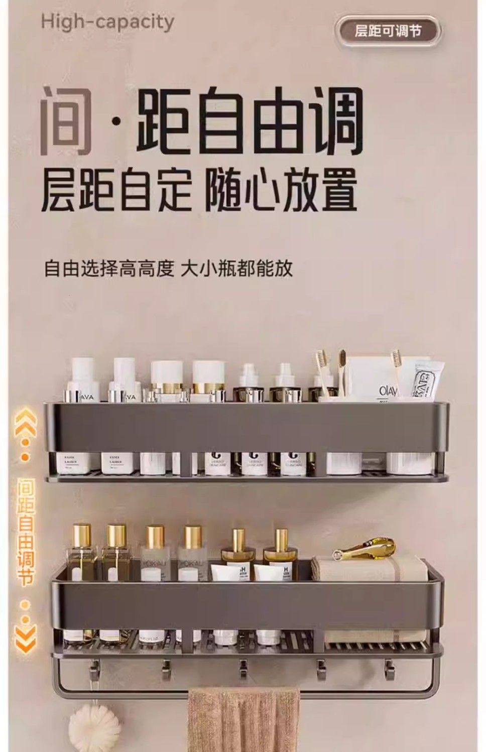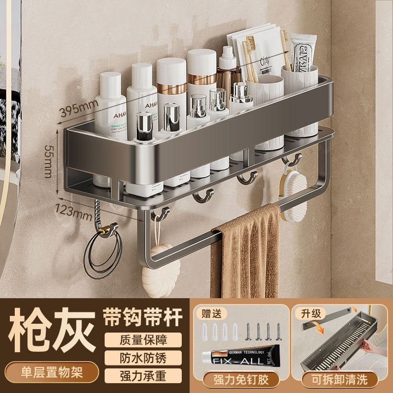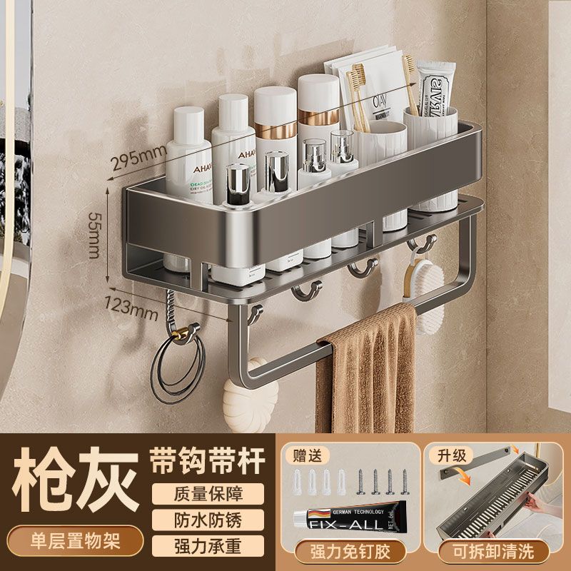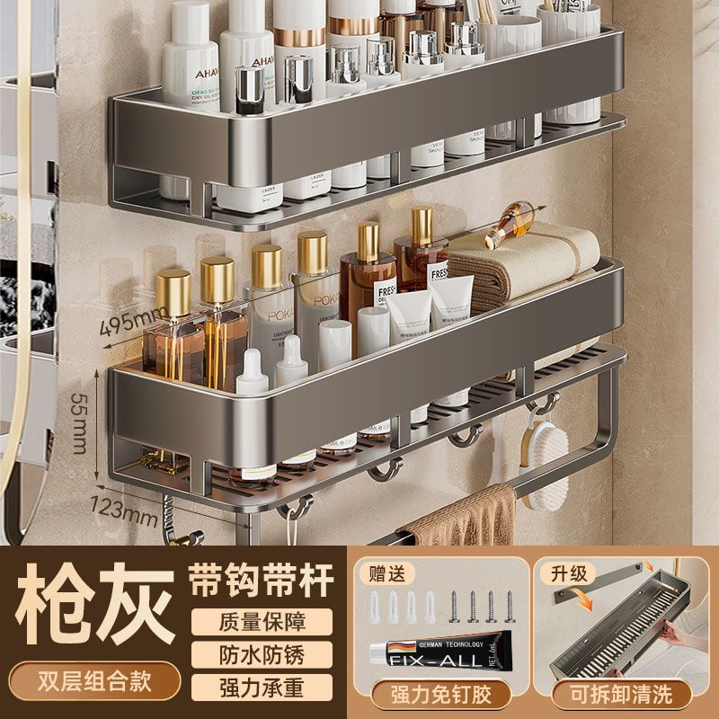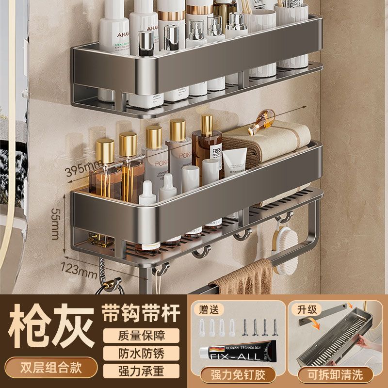 枪灰可拆卸免打孔置物架卫生间置物架洗手间洗漱台墙上浴室收纳架