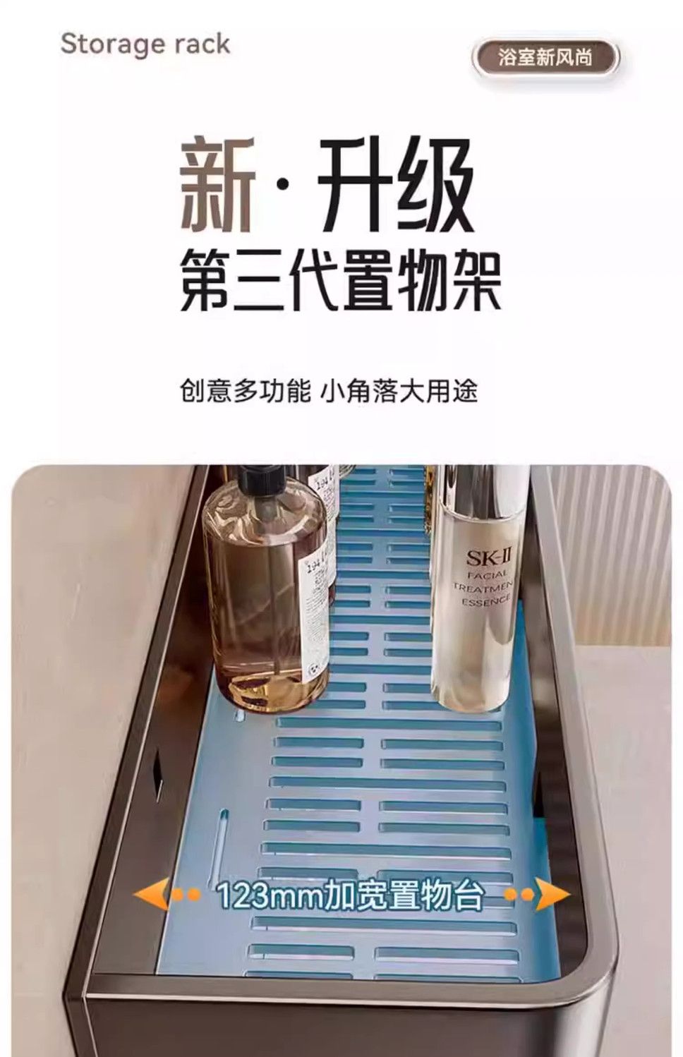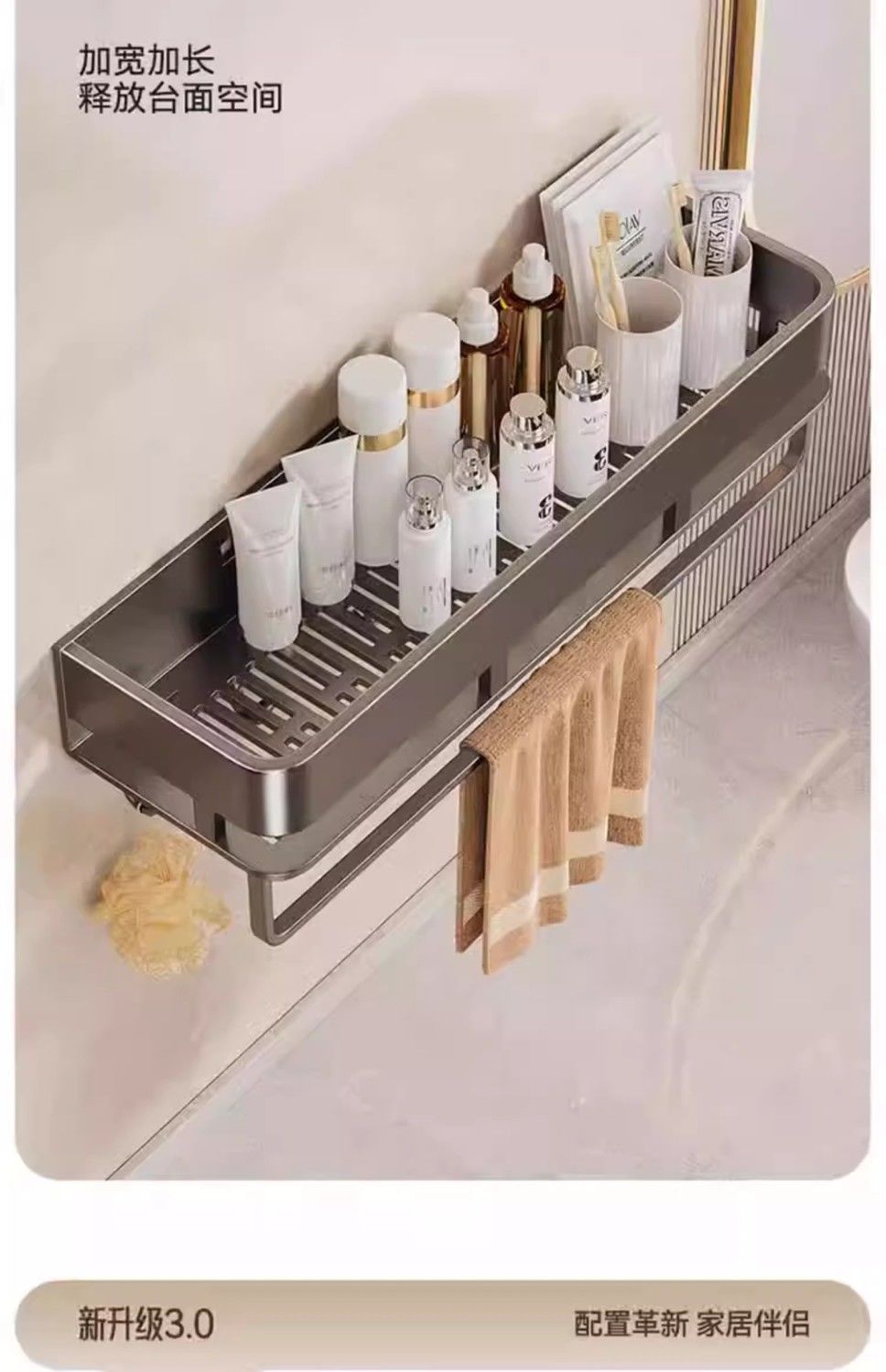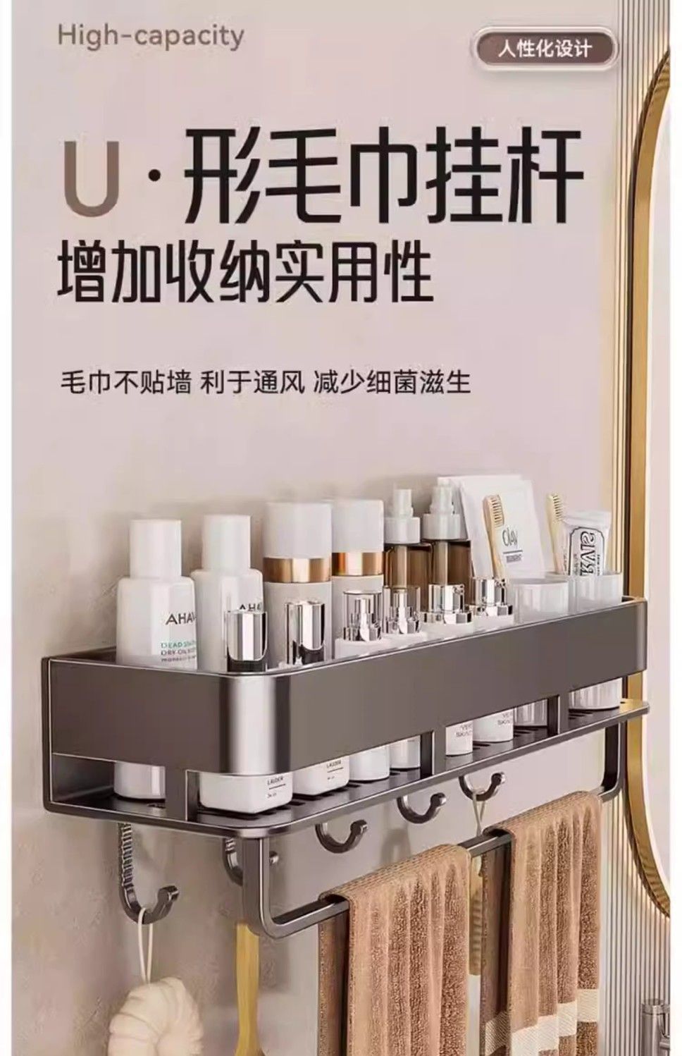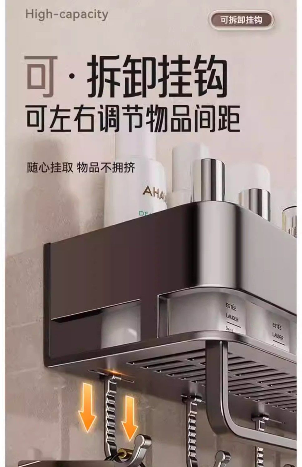 枪灰可拆卸免打孔置物架卫生间置物架洗手间洗漱台墙上浴室收纳架