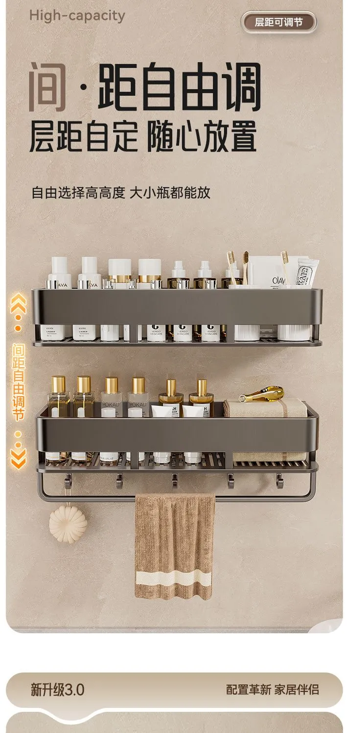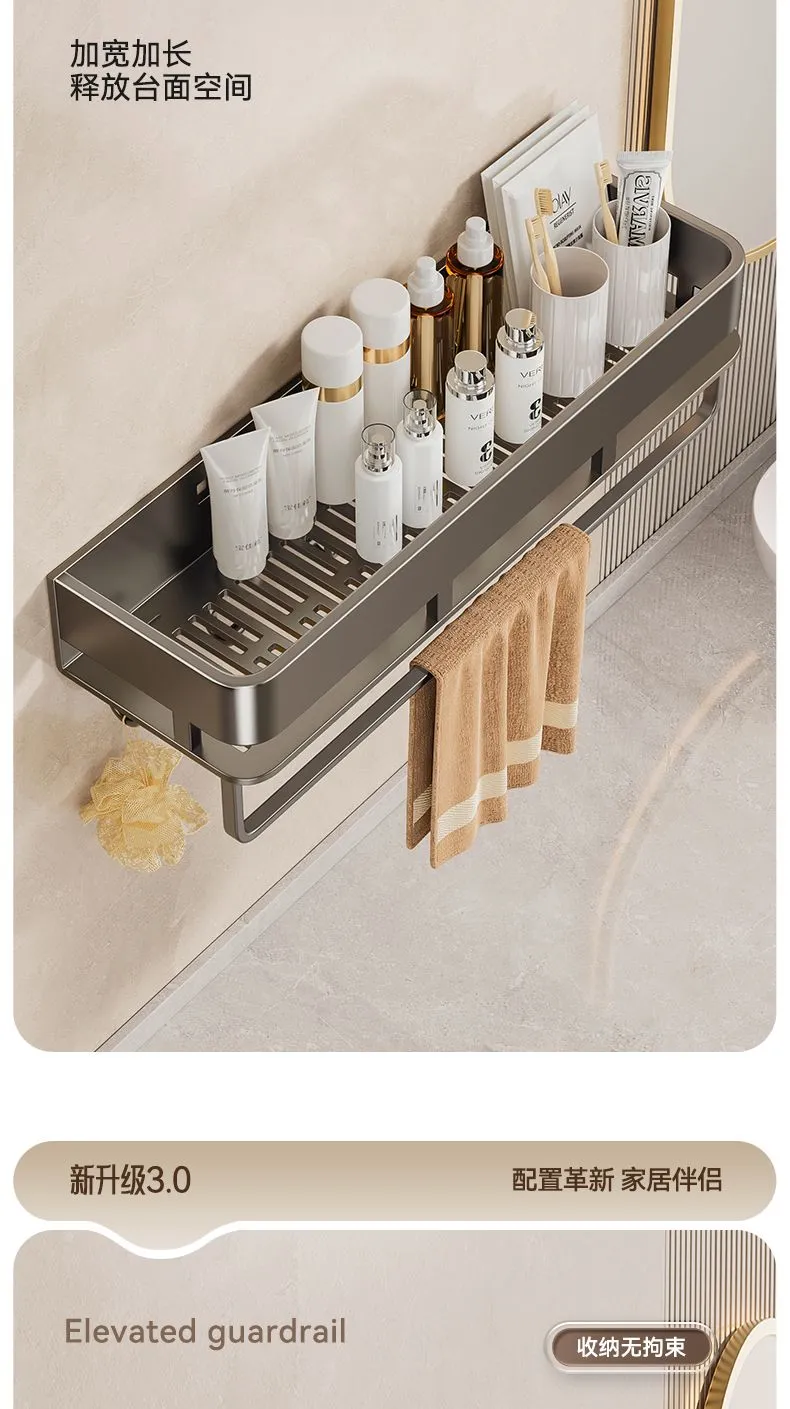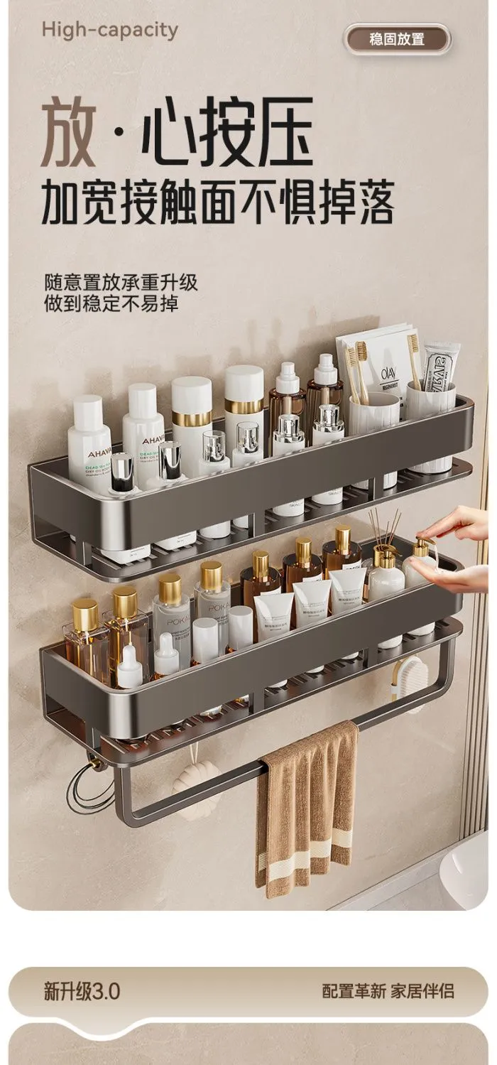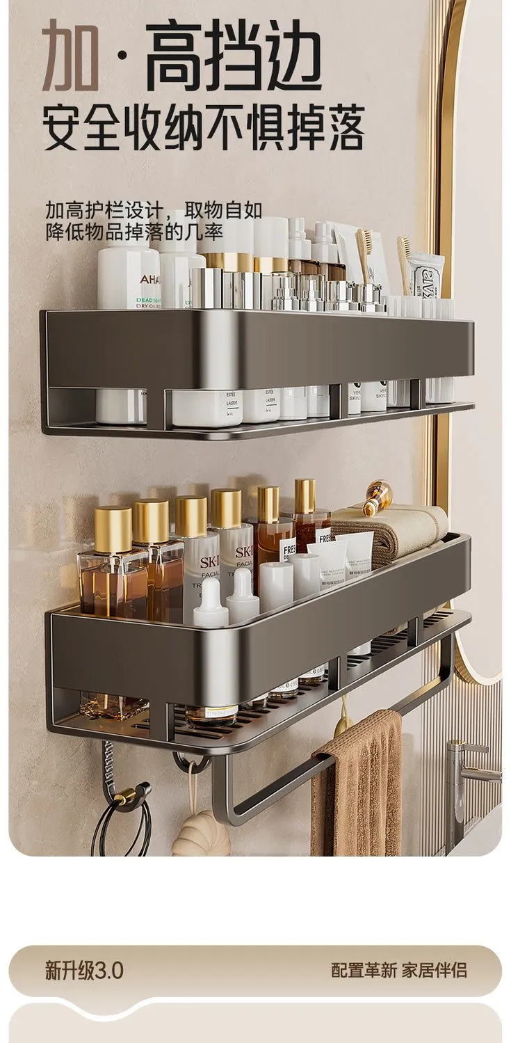 枪灰色浴室置物架卫生间免打孔墙上壁挂洗漱台厕所卫浴收纳架子