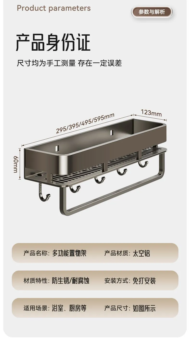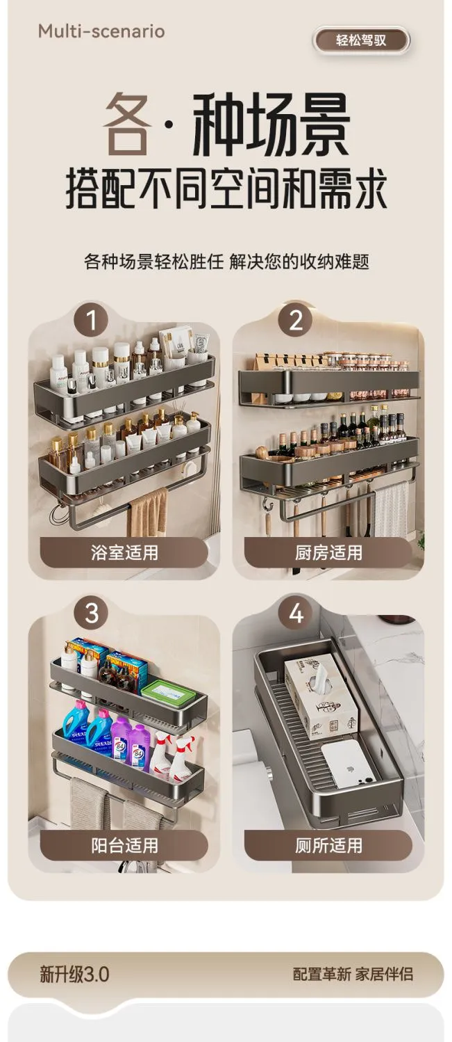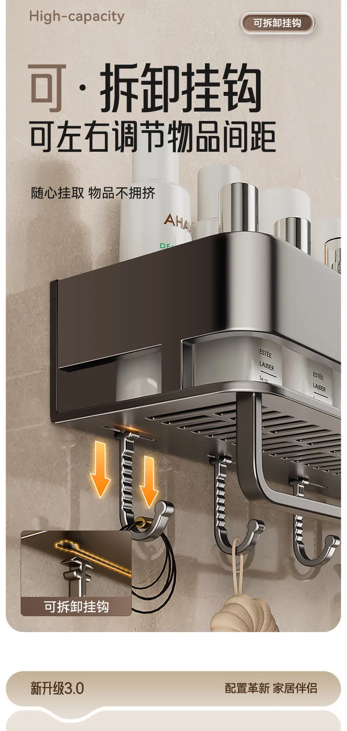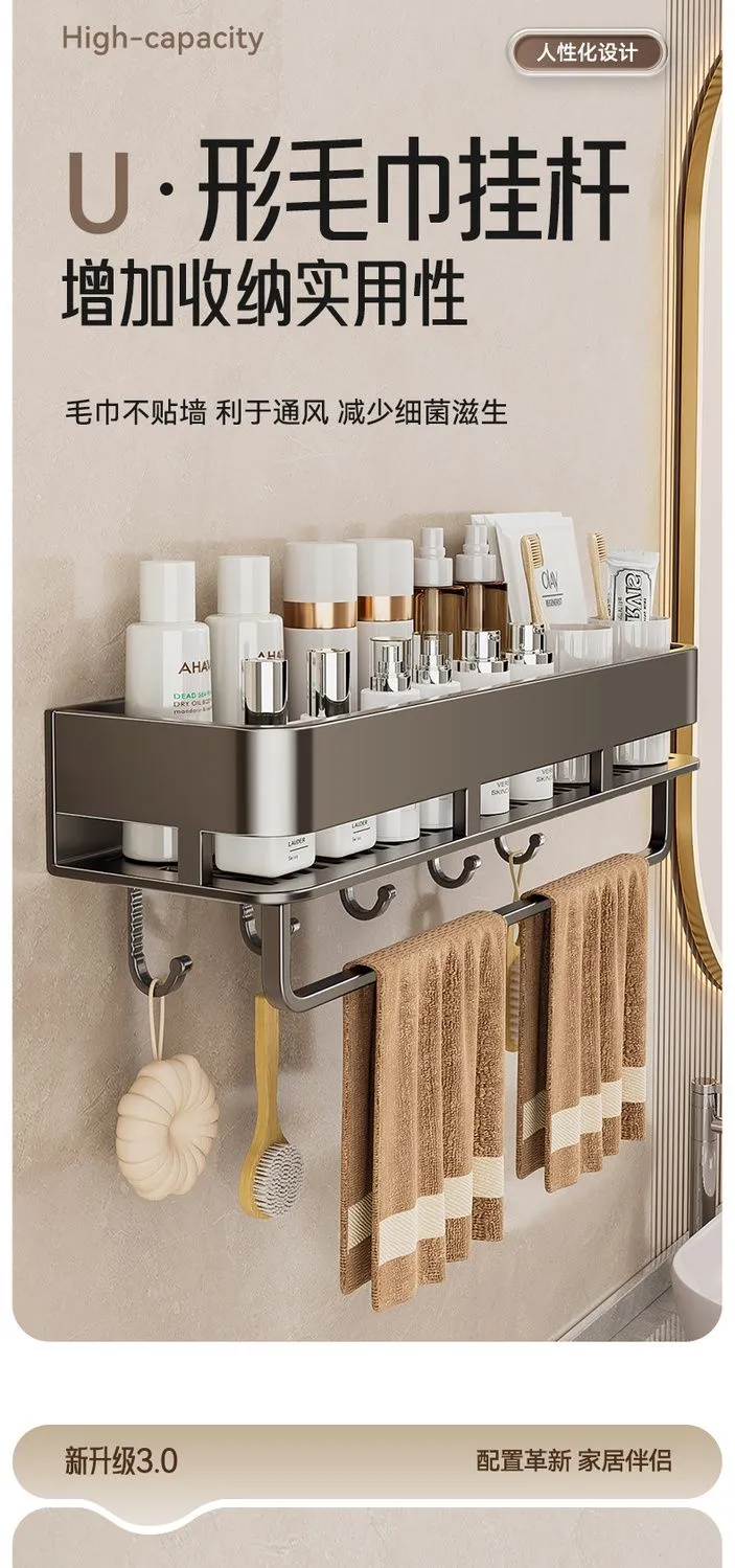 枪灰色浴室置物架卫生间免打孔墙上壁挂洗漱台厕所卫浴收纳架子