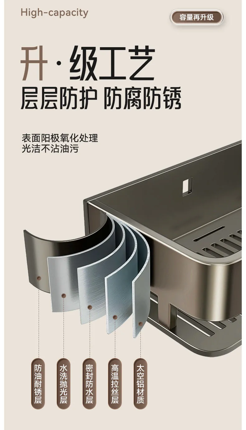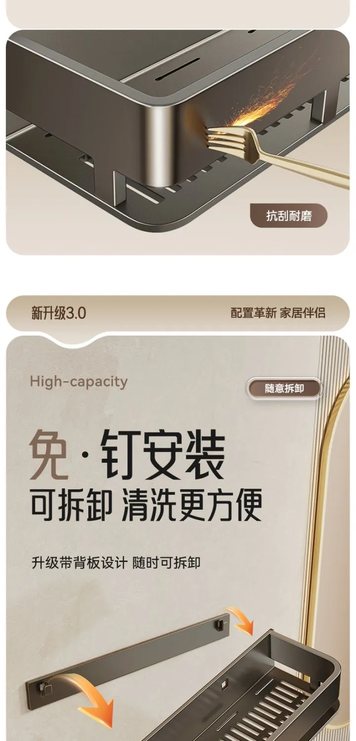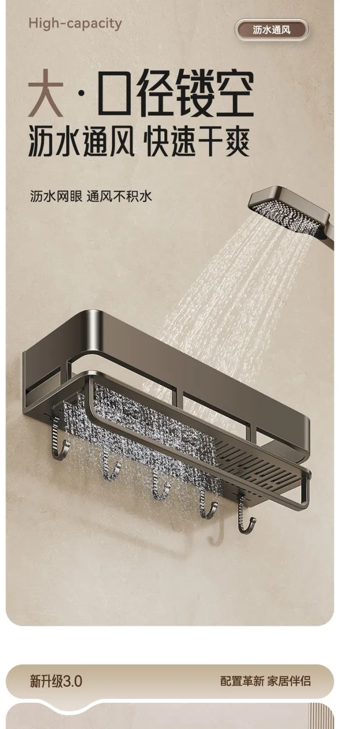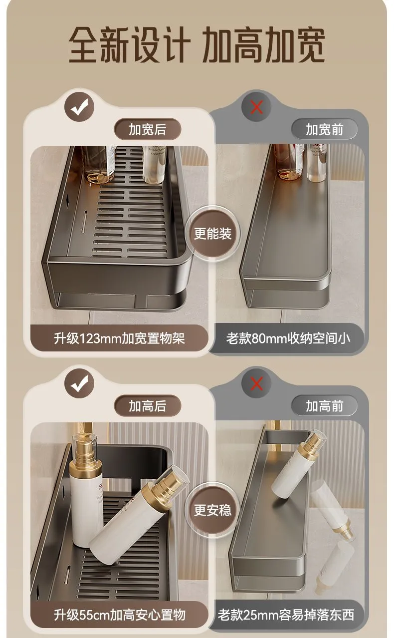 枪灰色浴室置物架卫生间免打孔墙上壁挂洗漱台厕所卫浴收纳架子