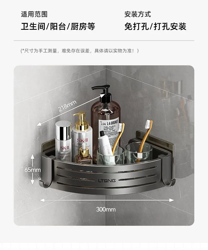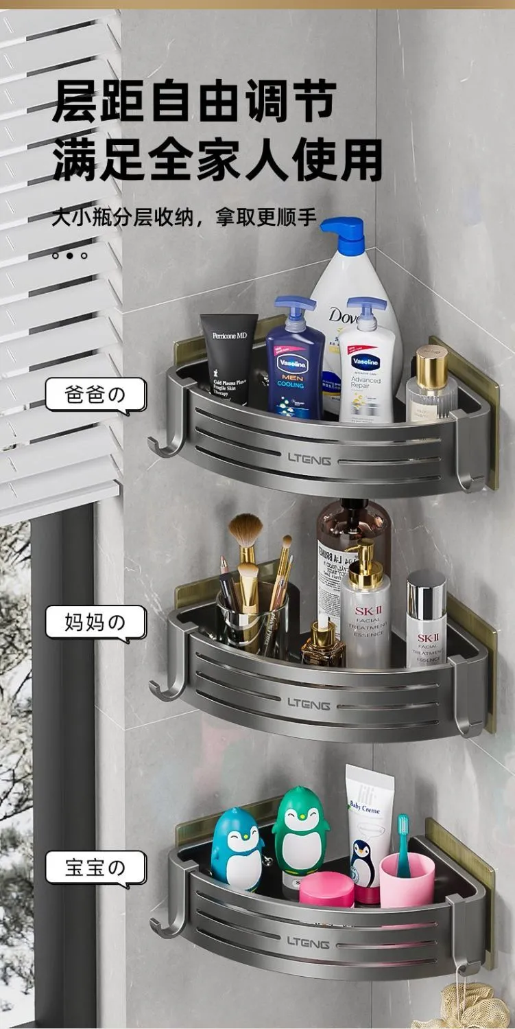 豫之曙卫生间置物架浴室壁挂厕所洗手间太空铝三角收纳架淋浴房架