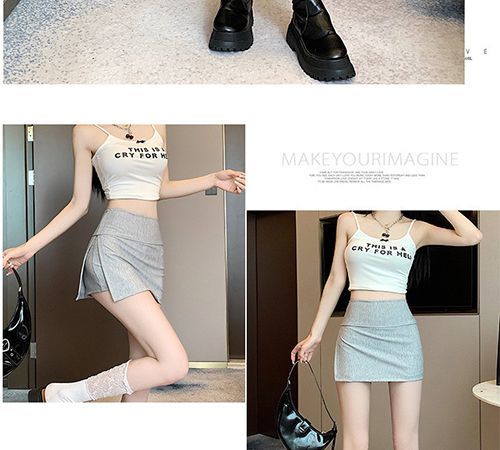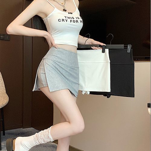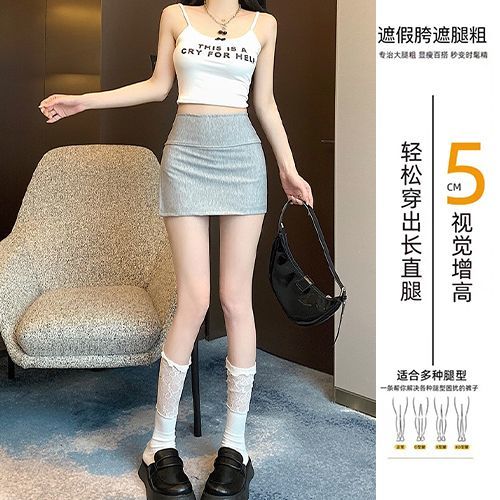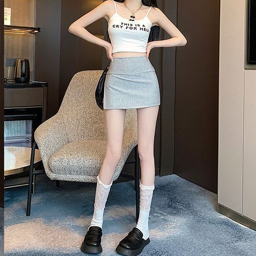 灰色半身裙女2025春夏季辣妹风裙裤高腰显瘦包臀裙开叉运动超短裙