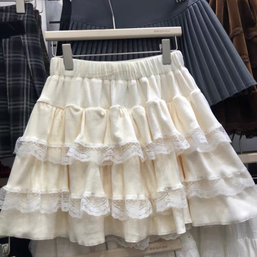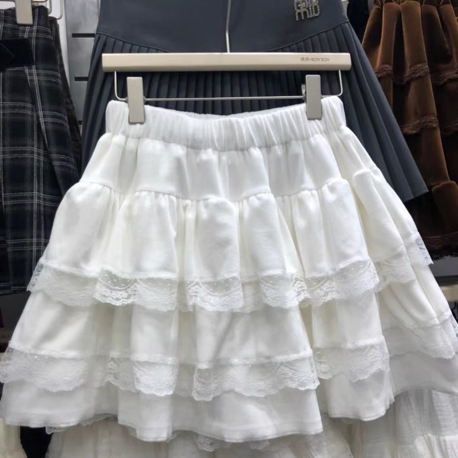 秋冬甜美减龄白色芭蕾风半身裙女高腰蓬蓬裙蕾丝蛋糕裙短裙防走光