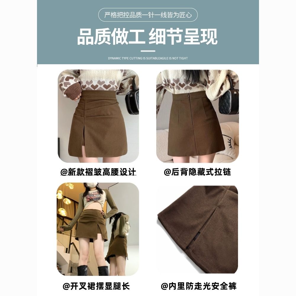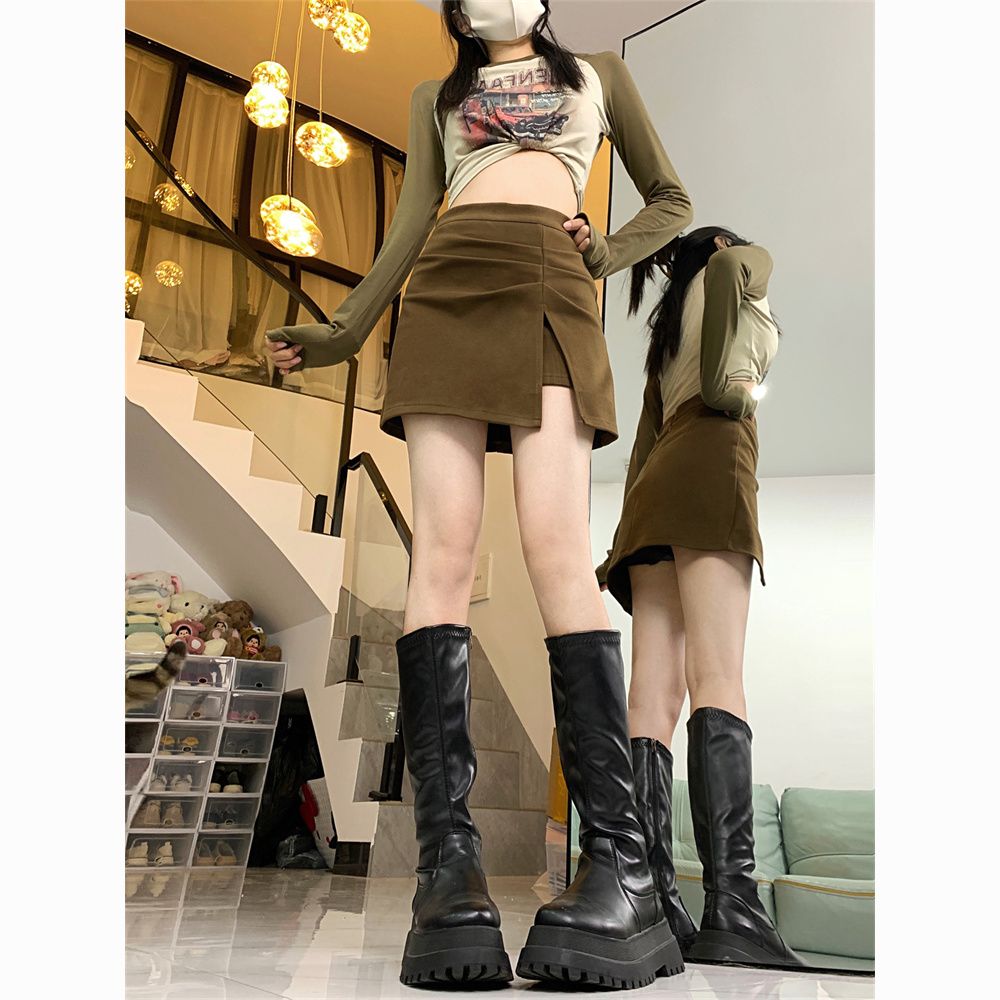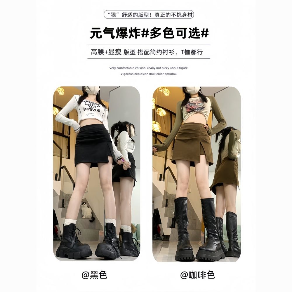 SAULBASS设计感褶皱开叉半身裙女2025新款高腰显瘦外穿短裙女ins