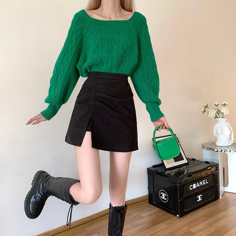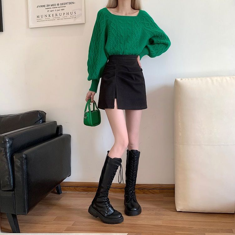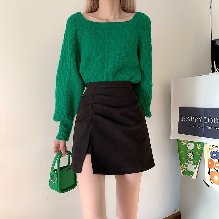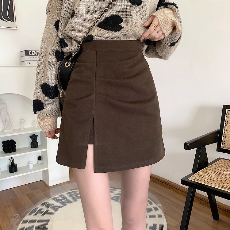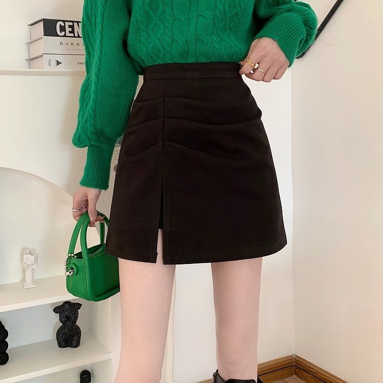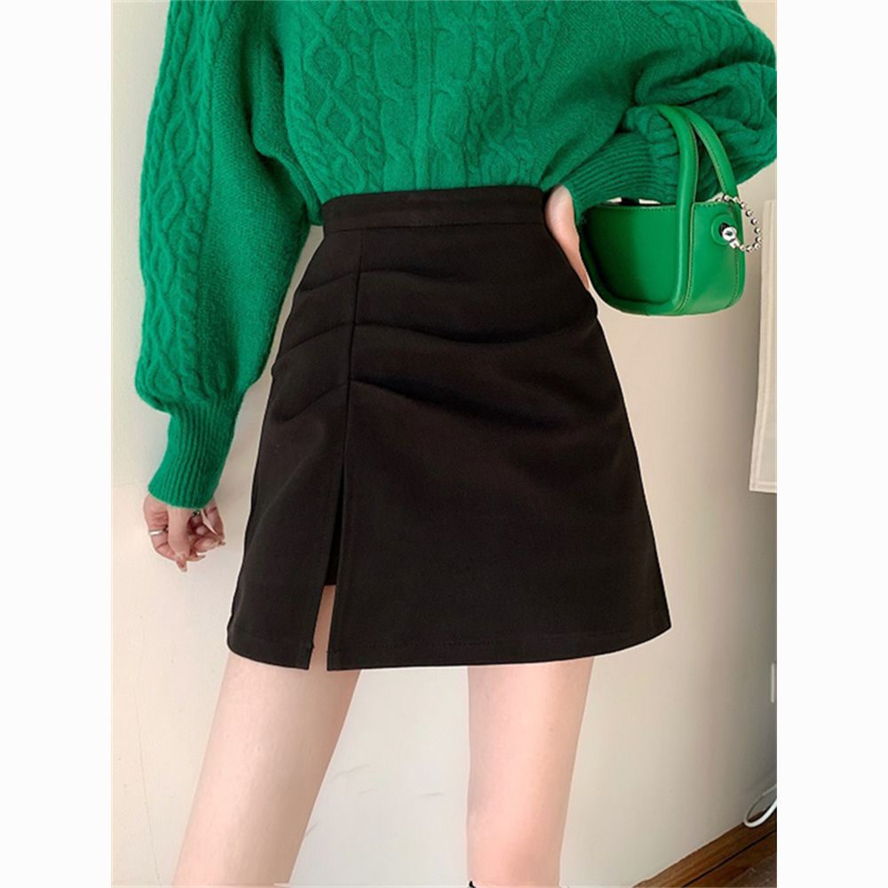SAULBASS设计感褶皱开叉半身裙女2025新款高腰显瘦外穿短裙女ins