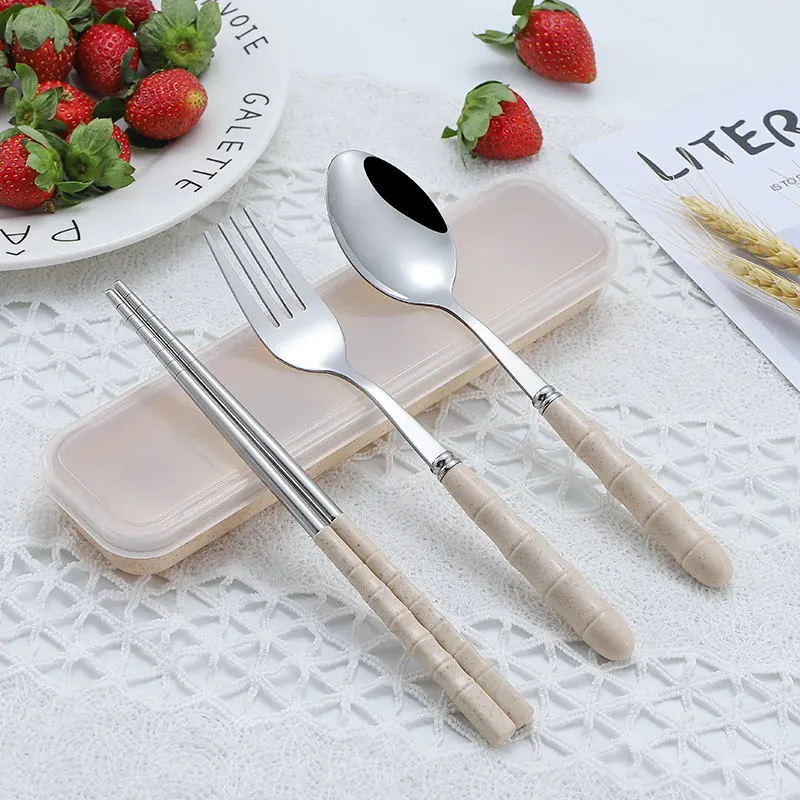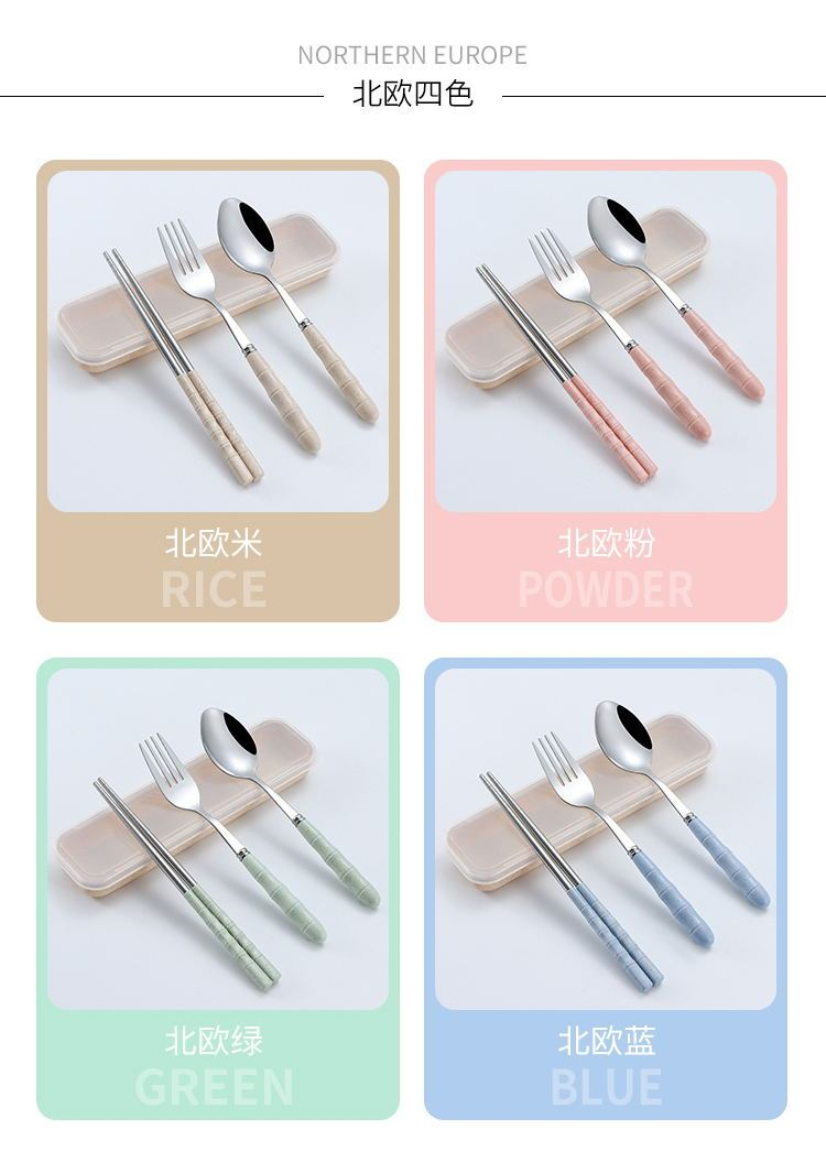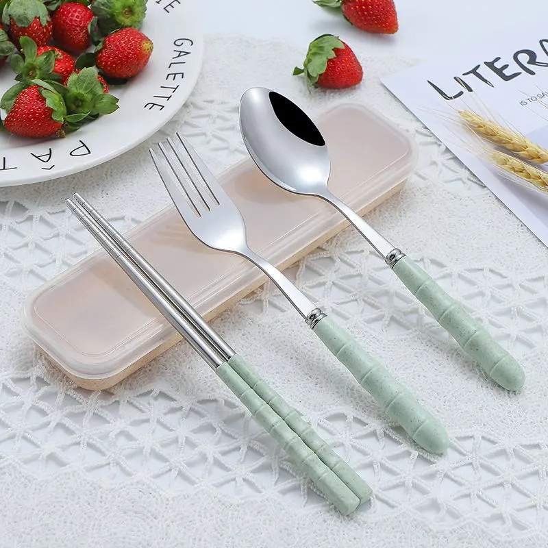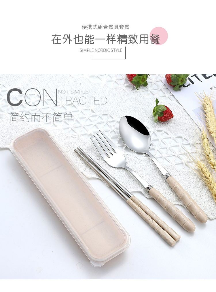 三件套不锈钢便携小麦秸秆筷子勺子学生成人旅行便携式套装餐具