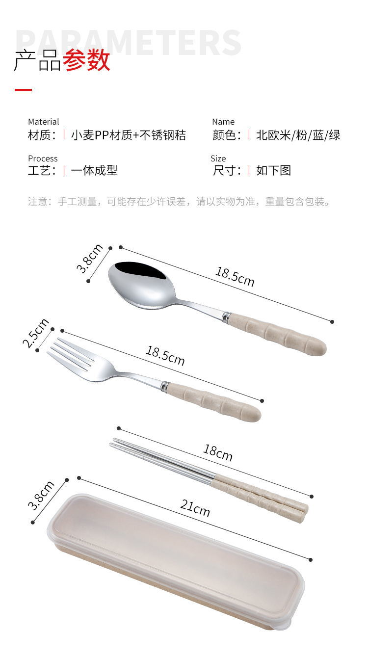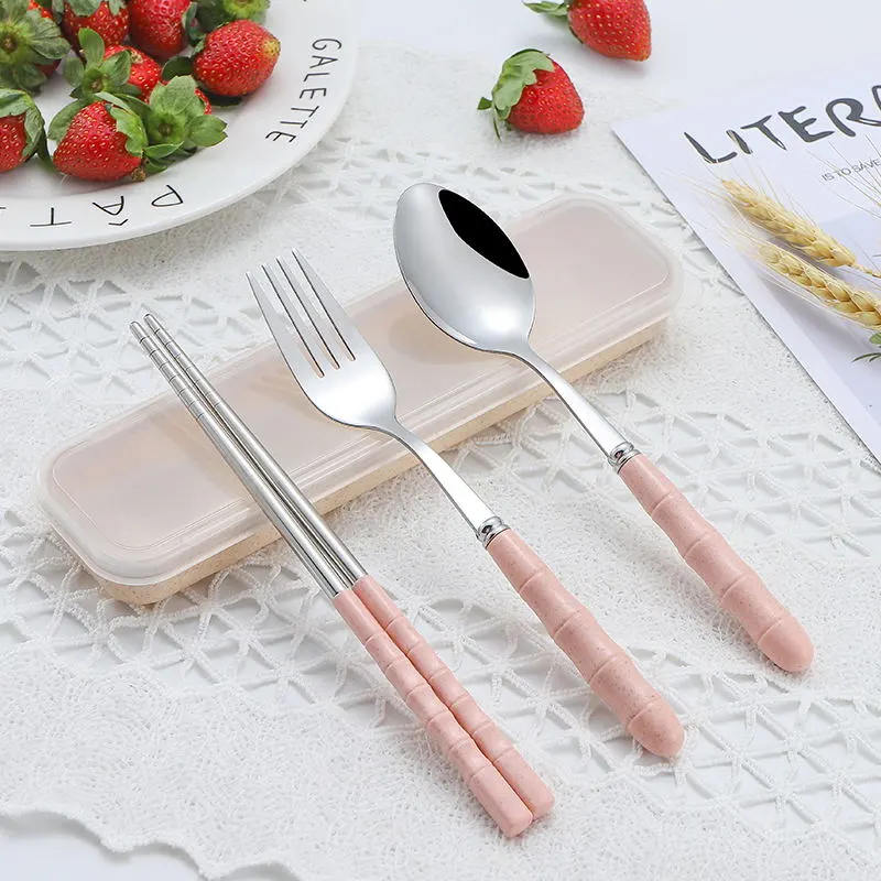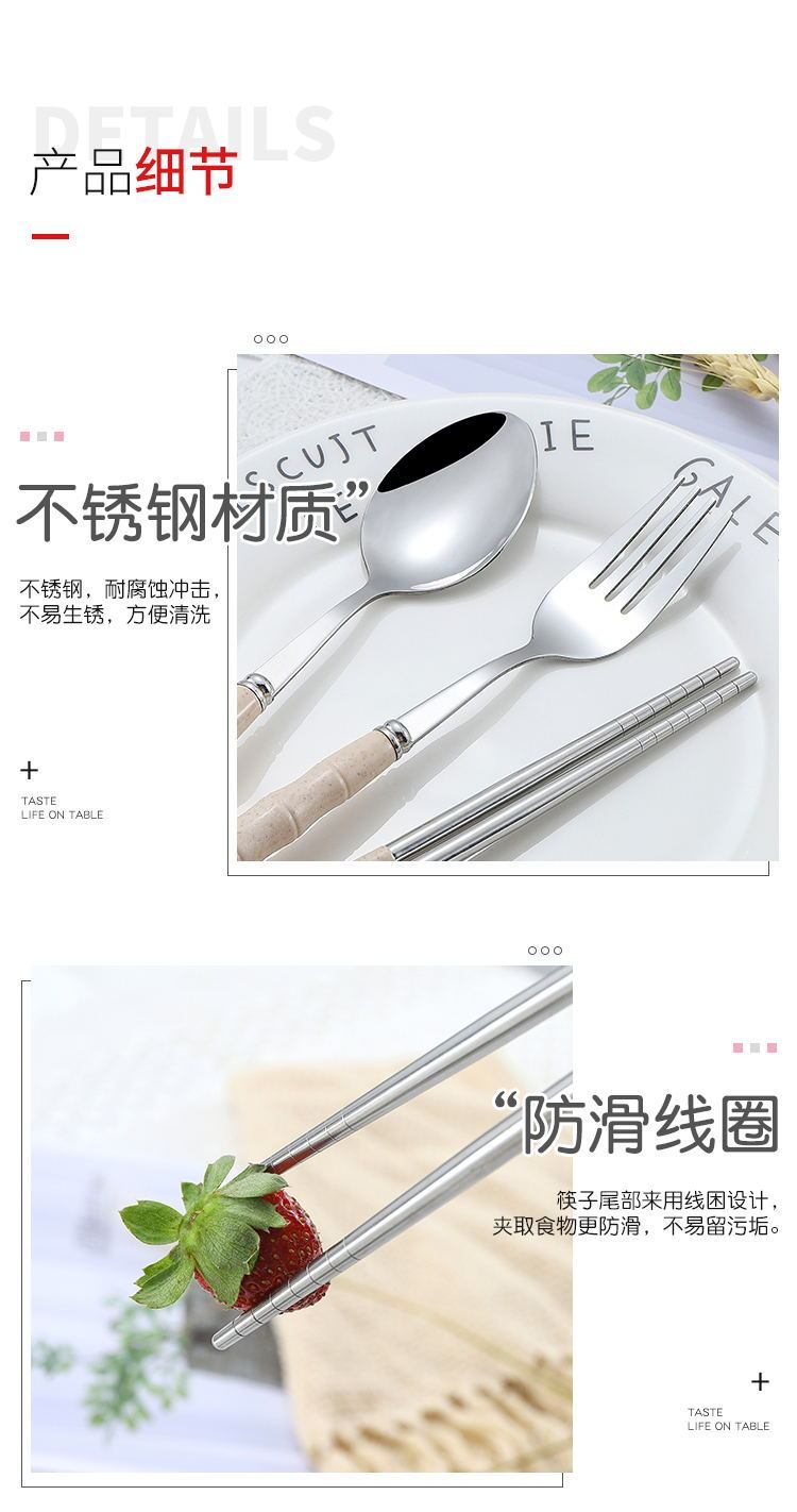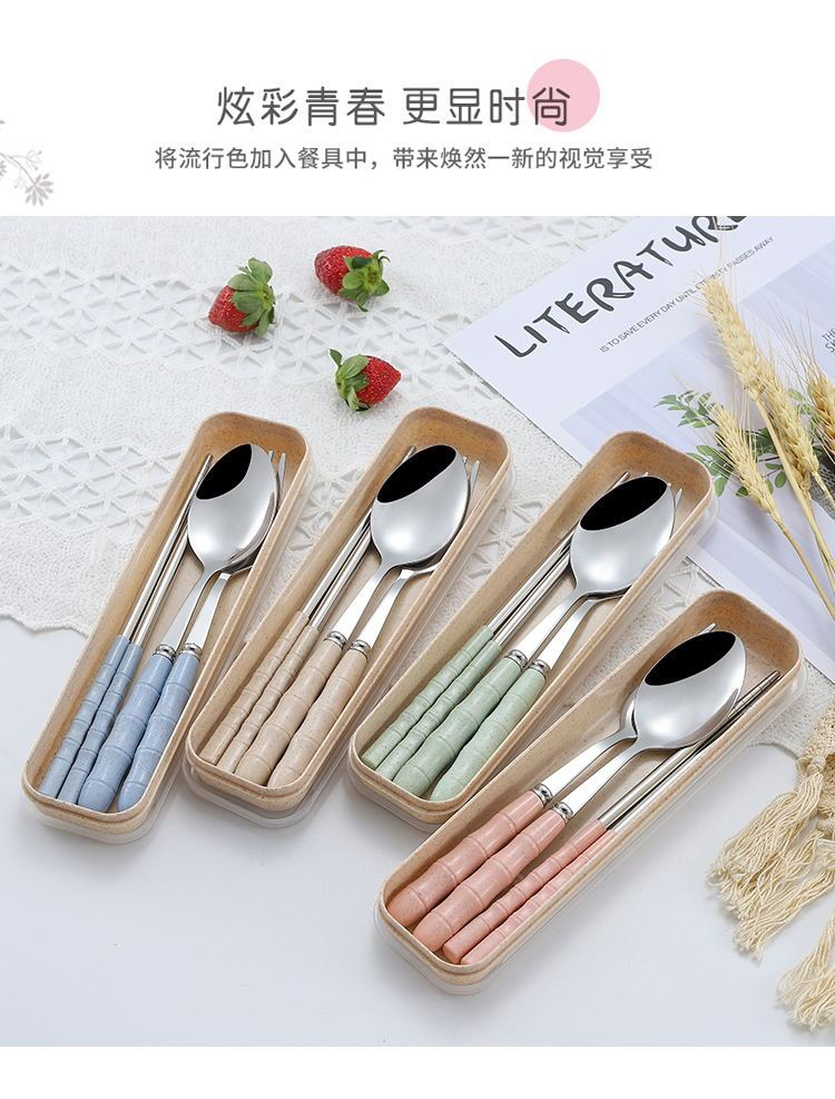 三件套不锈钢便携小麦秸秆筷子勺子学生成人旅行便携式套装餐具