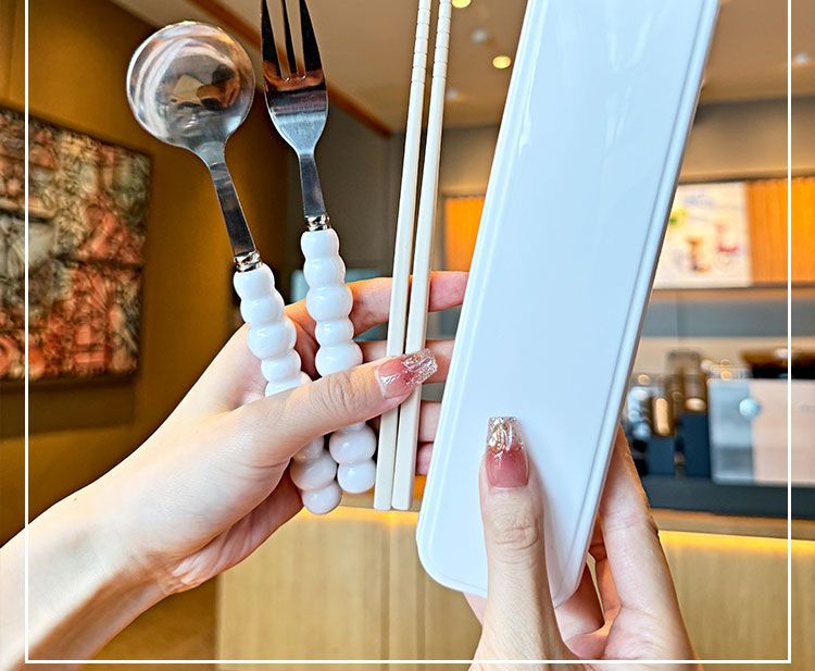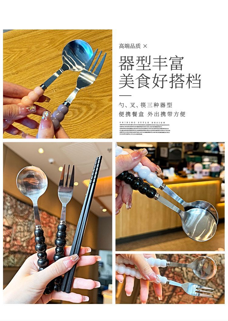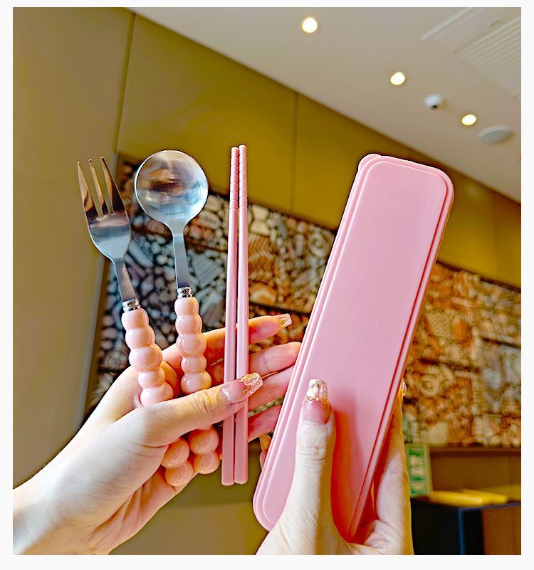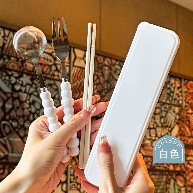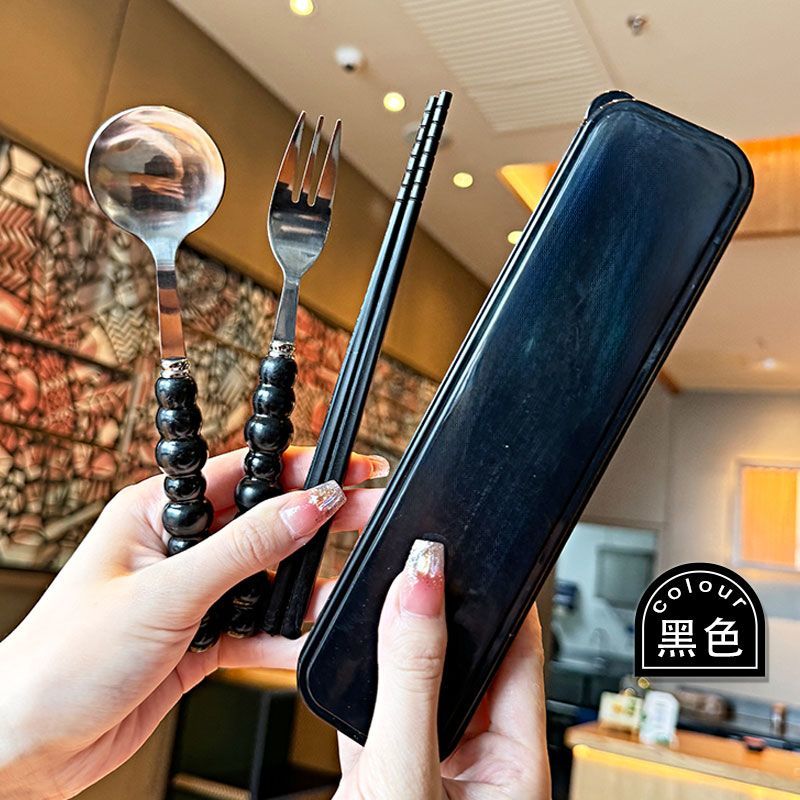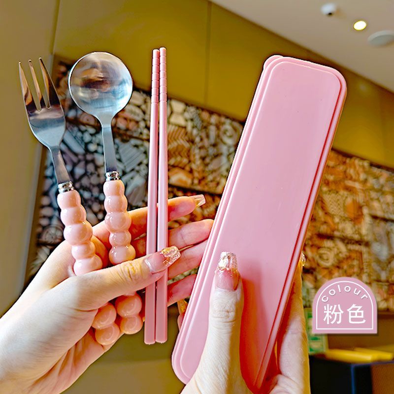 餐具不锈钢筷子勺子叉子学生套装收纳盒便携三件套可爱ins高颜值