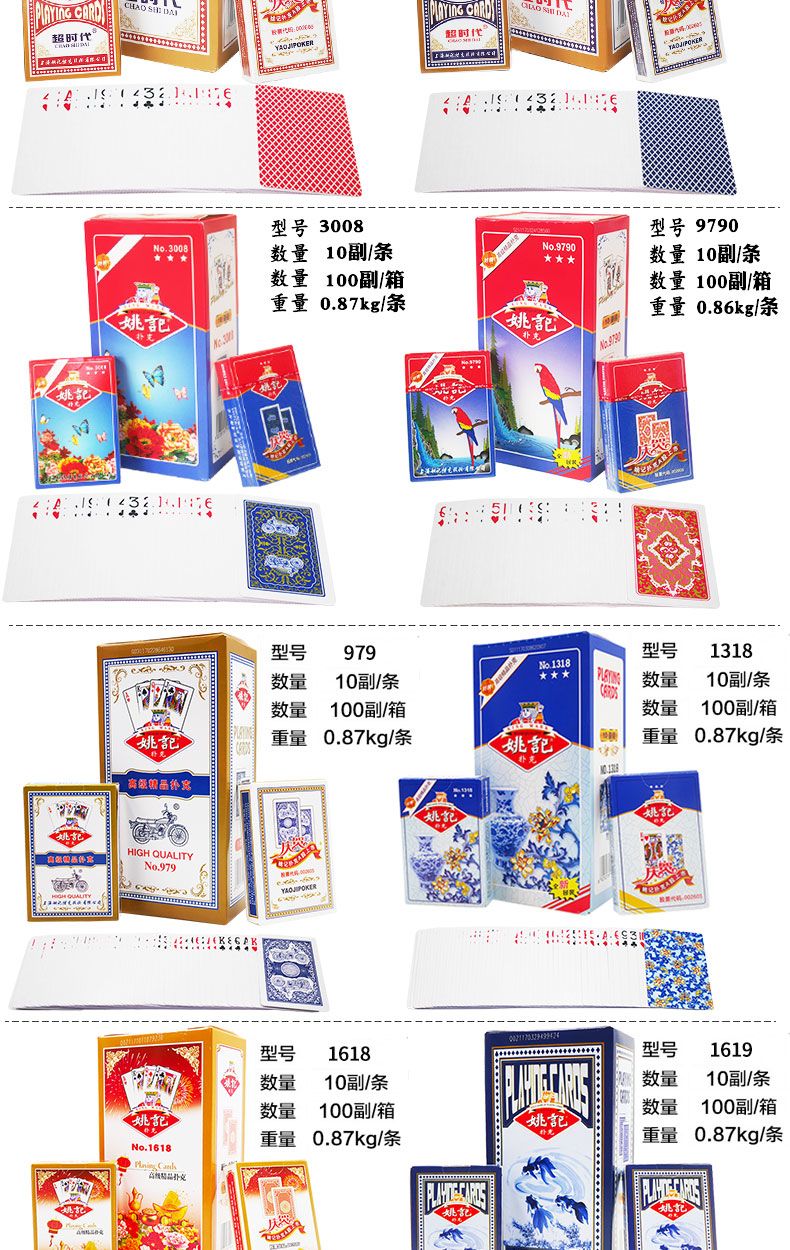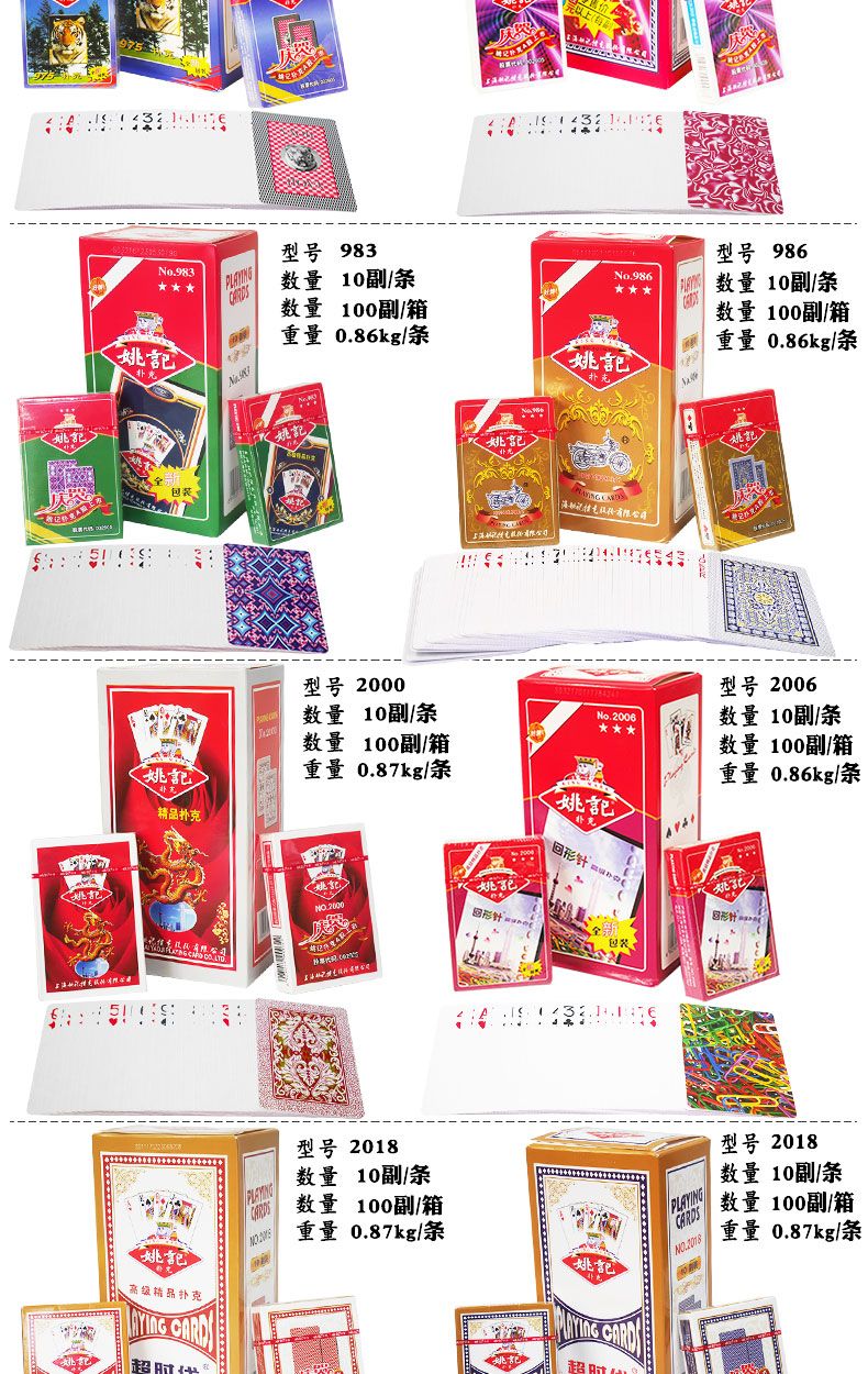 正品姚记扑克牌正宗加厚20副厂家批发成人斗地主炸金花纸牌棋牌室