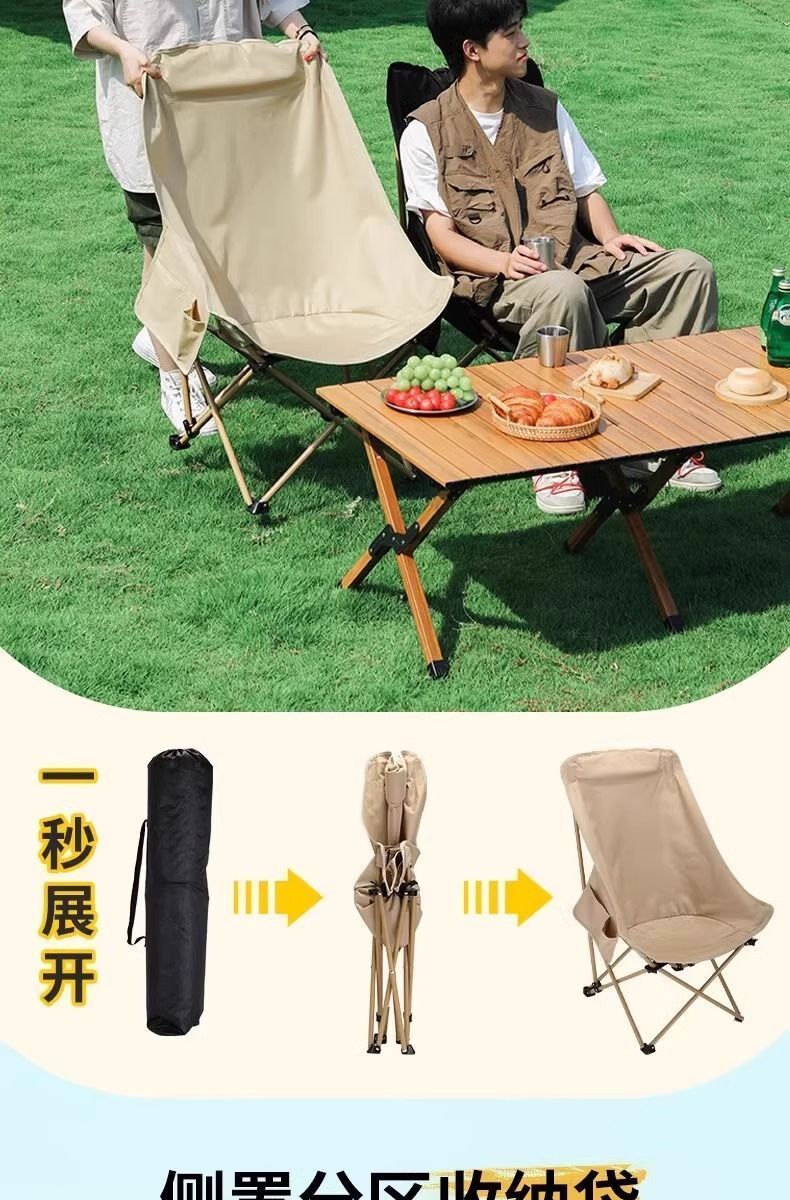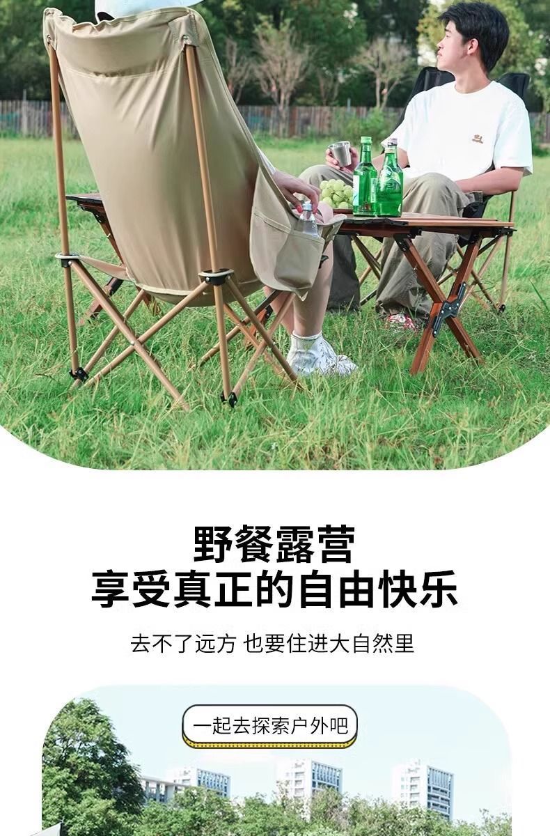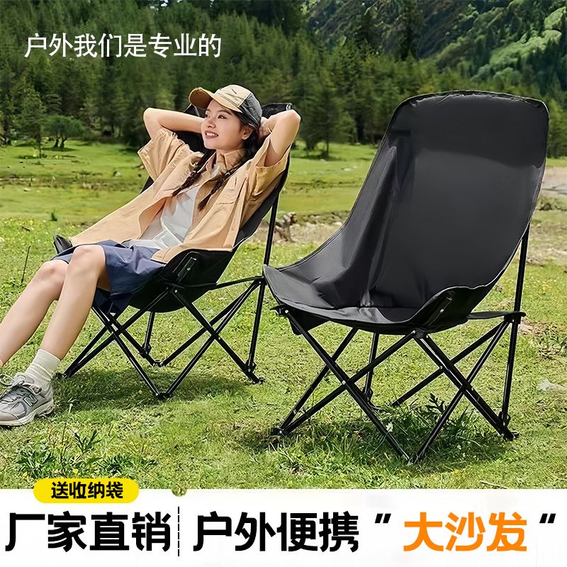 清系户外便携加高靠背月亮椅露营野餐折叠椅子家用午休折叠椅凳子