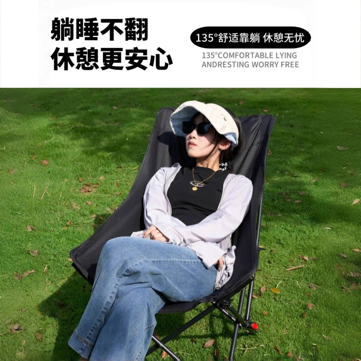 户外便携加高月亮露营折叠椅子野餐沙滩躺椅钓鱼装备潮流新品热卖