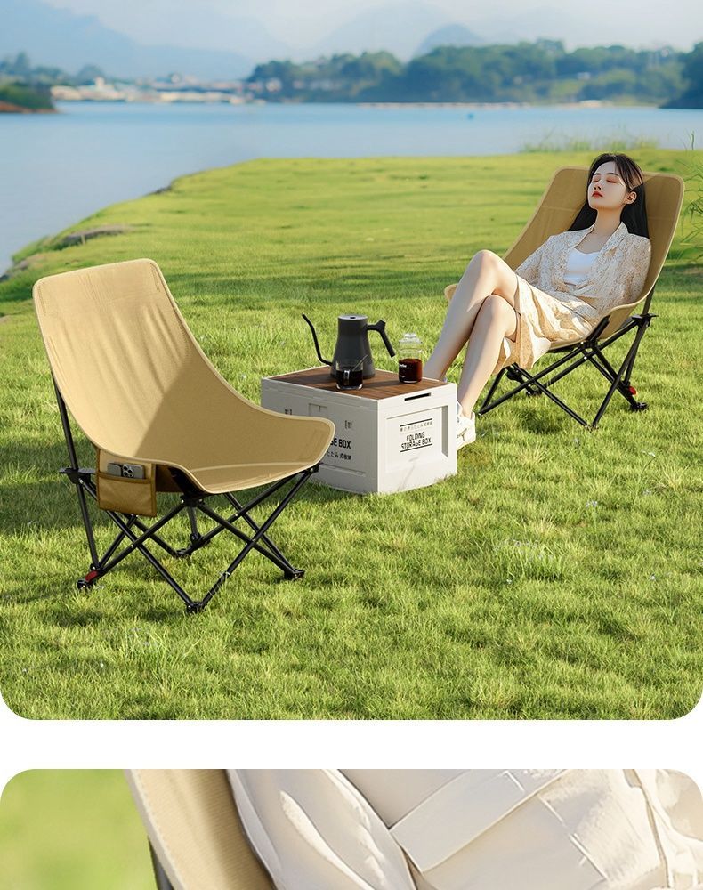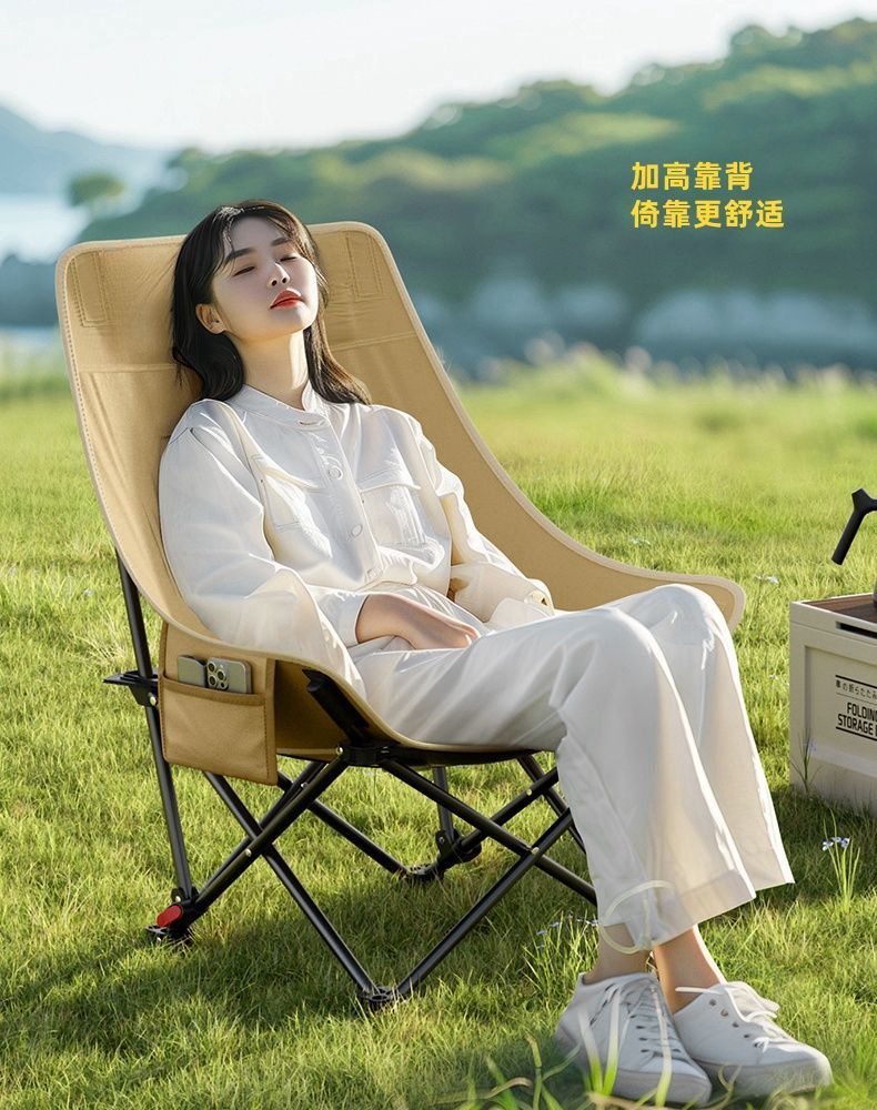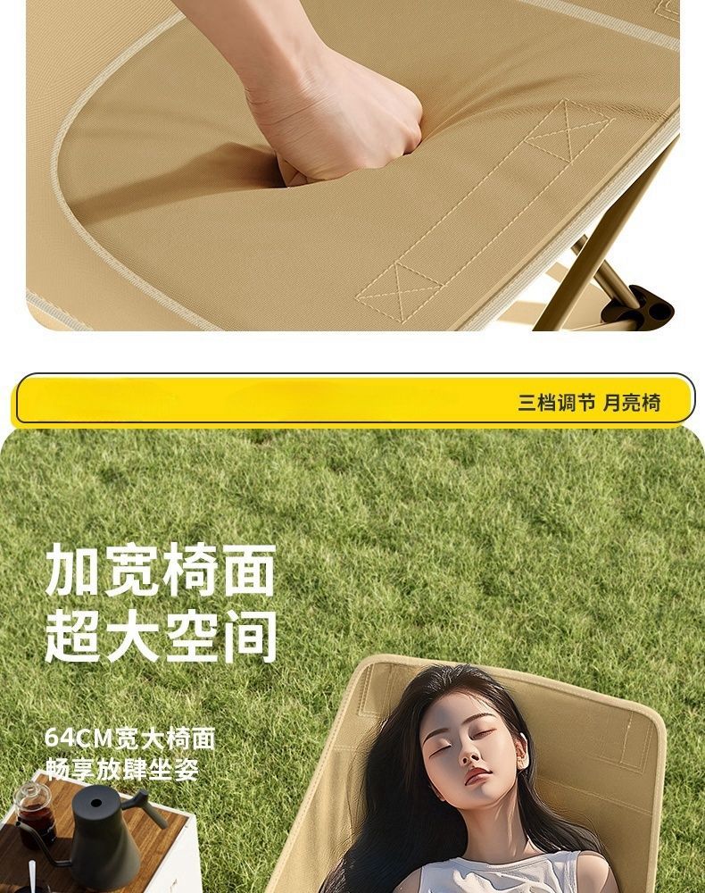 三挡调节月亮椅户折叠椅露营椅子便携式钓鱼休闲高背躺椅沙滩椅