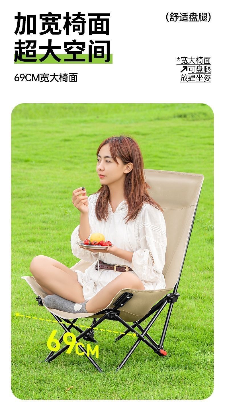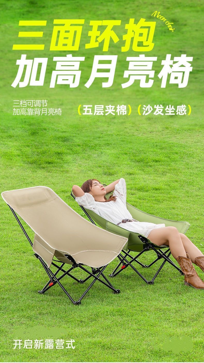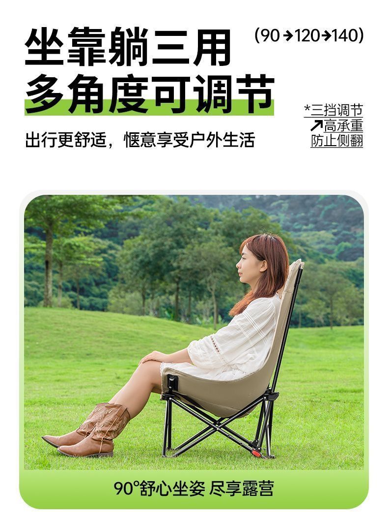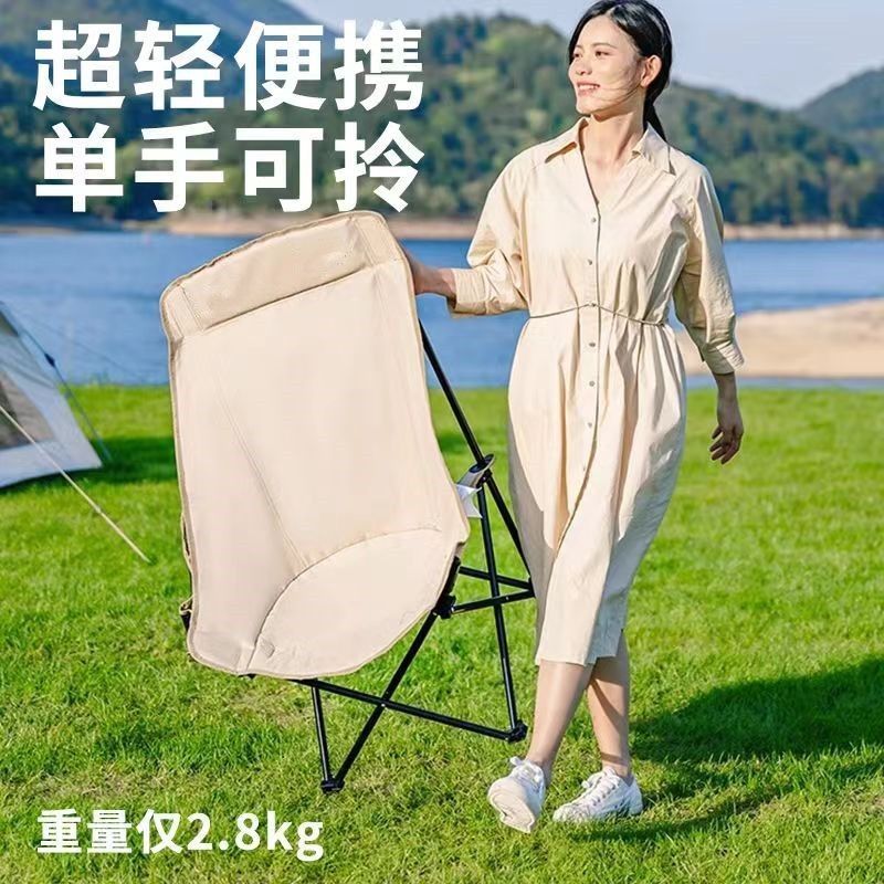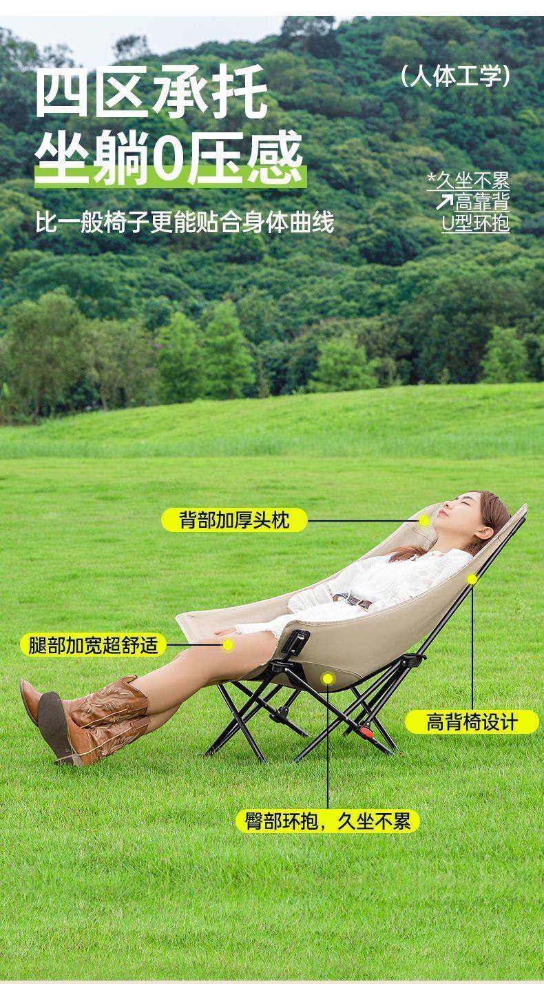户外折叠椅月亮椅加固加高舒适超轻野餐椅便携露营椅钓鱼写生椅